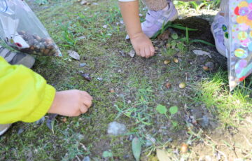 園庭遊びをして、おなかペコペコ。さあ、おいしいご飯を食べようね