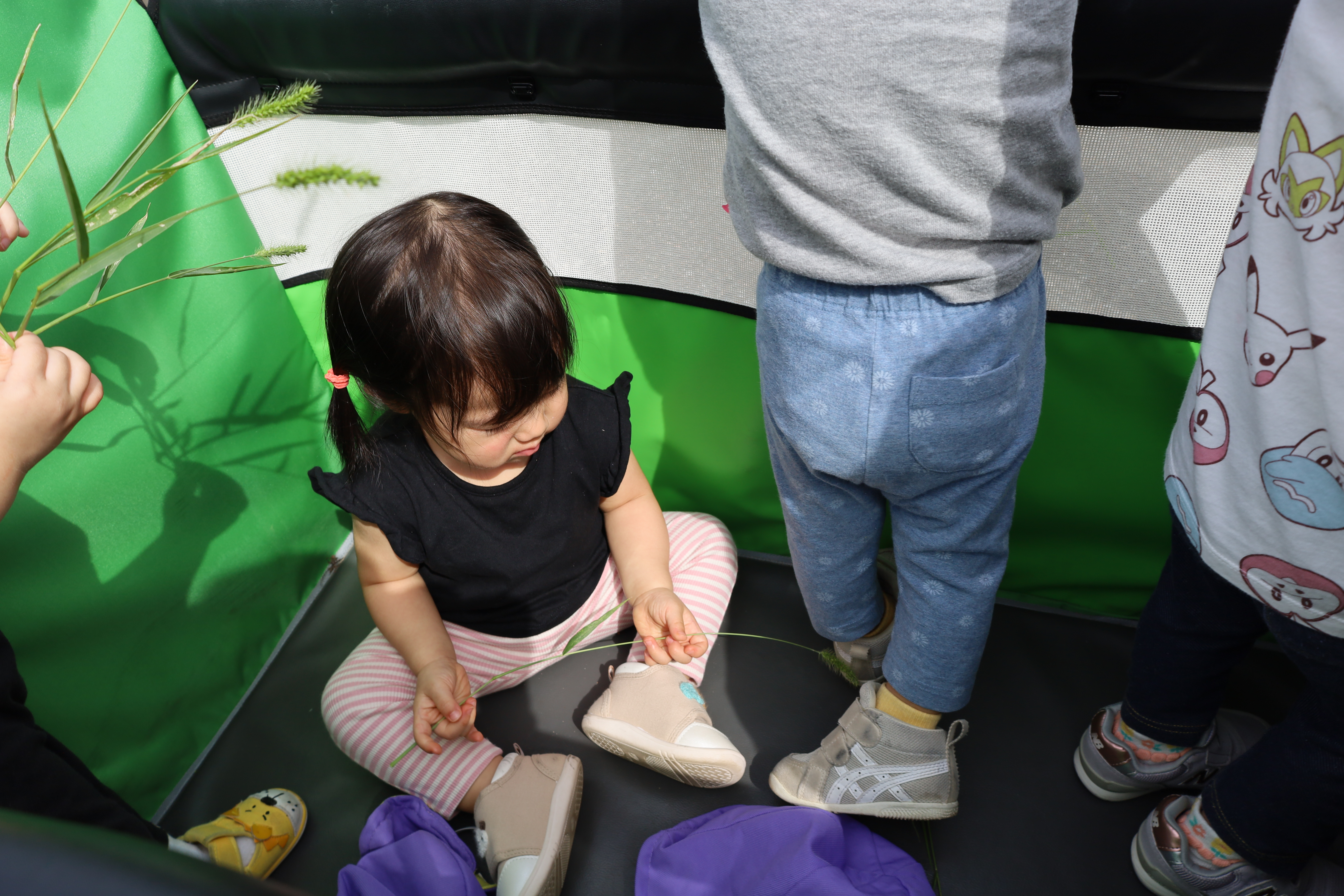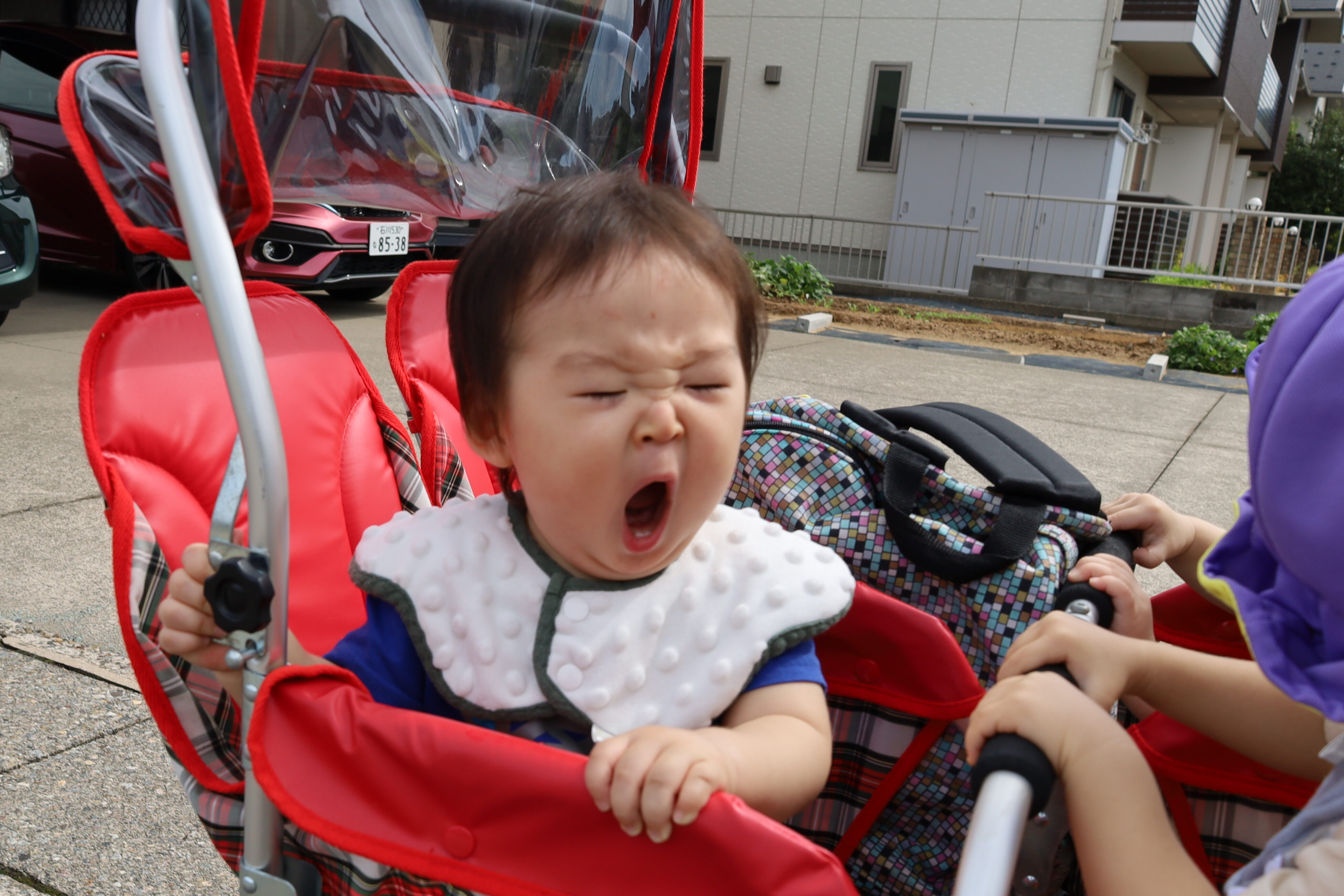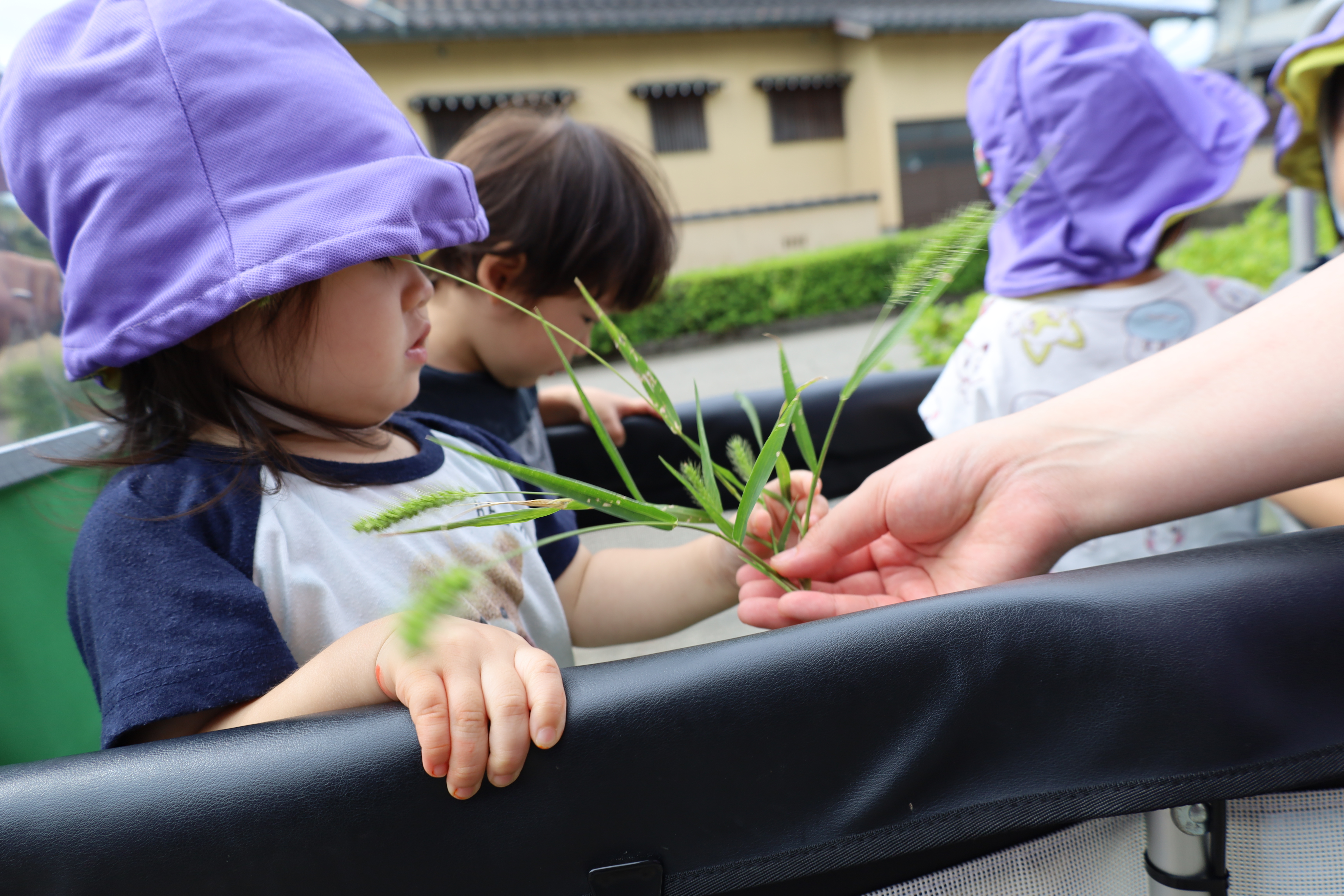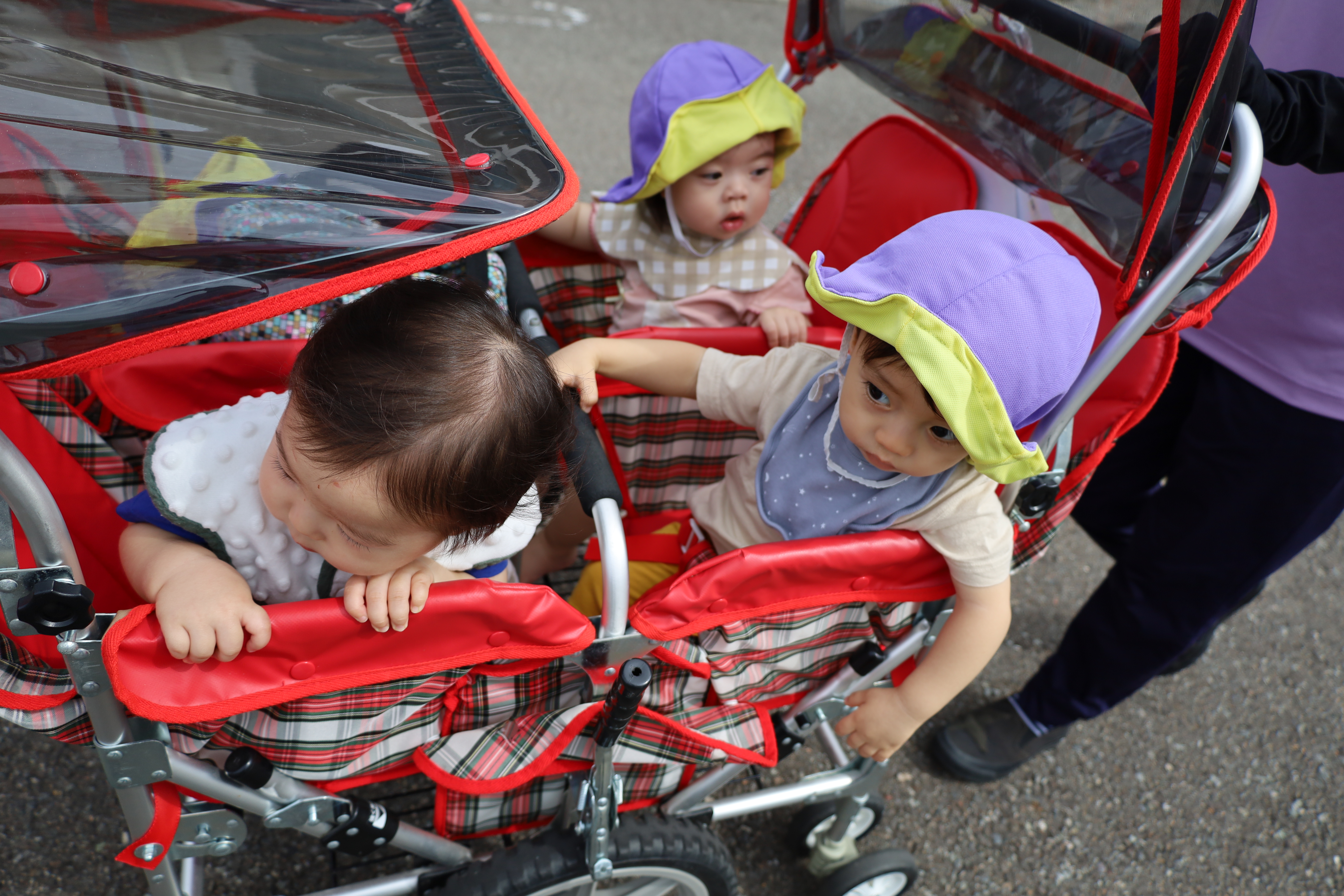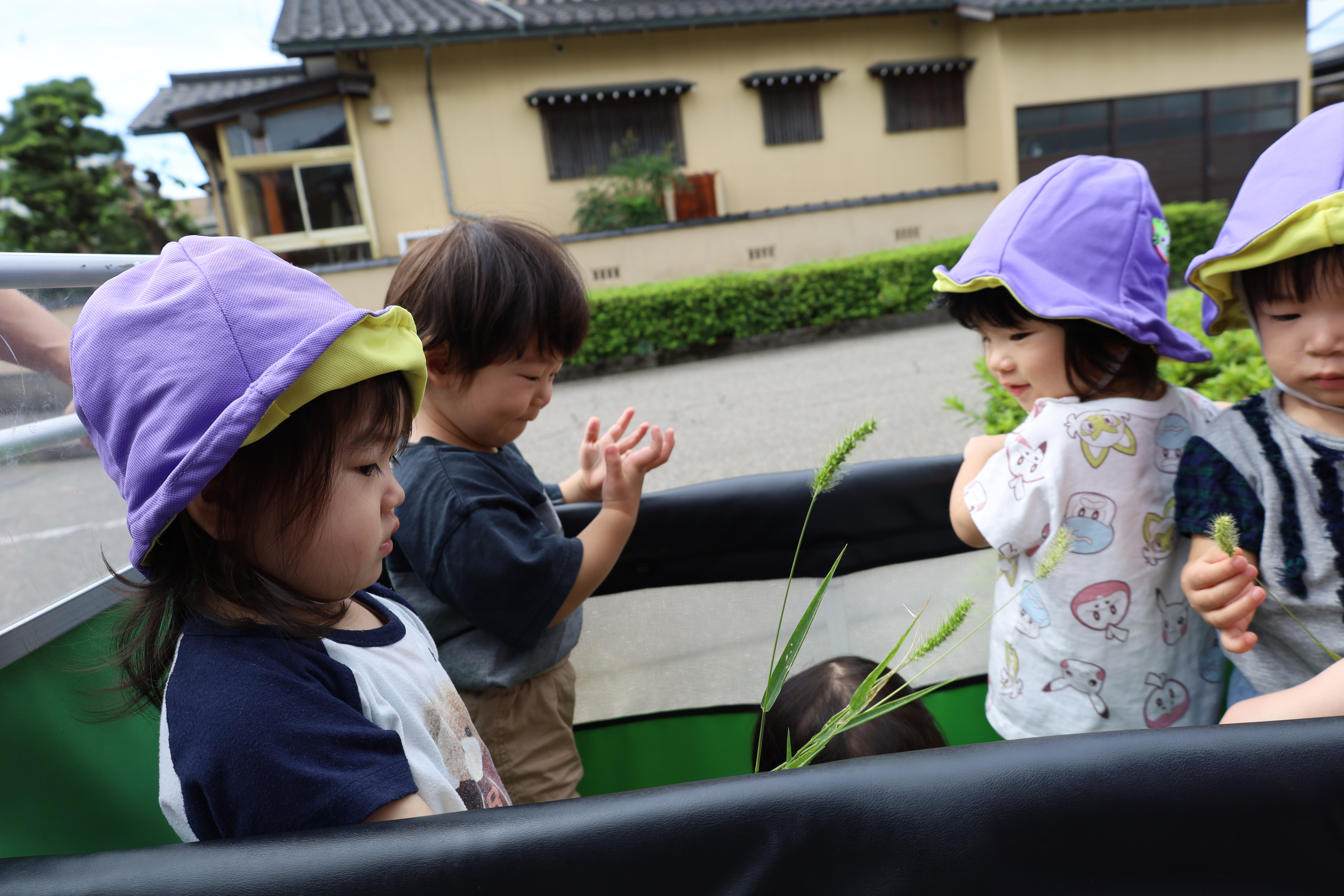 涼しい風を感じながら、カートに乗って一緒にお散歩に出かけました。