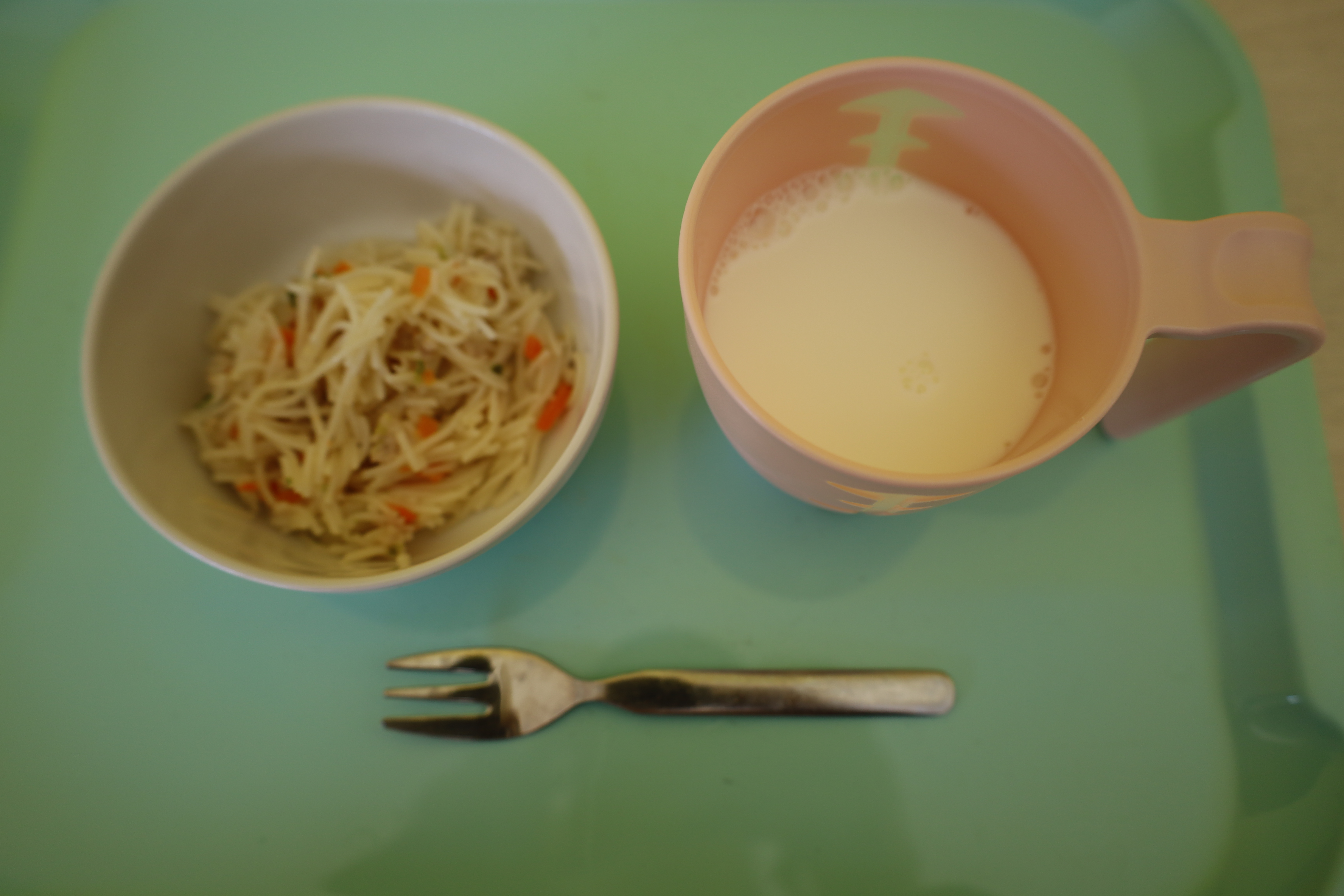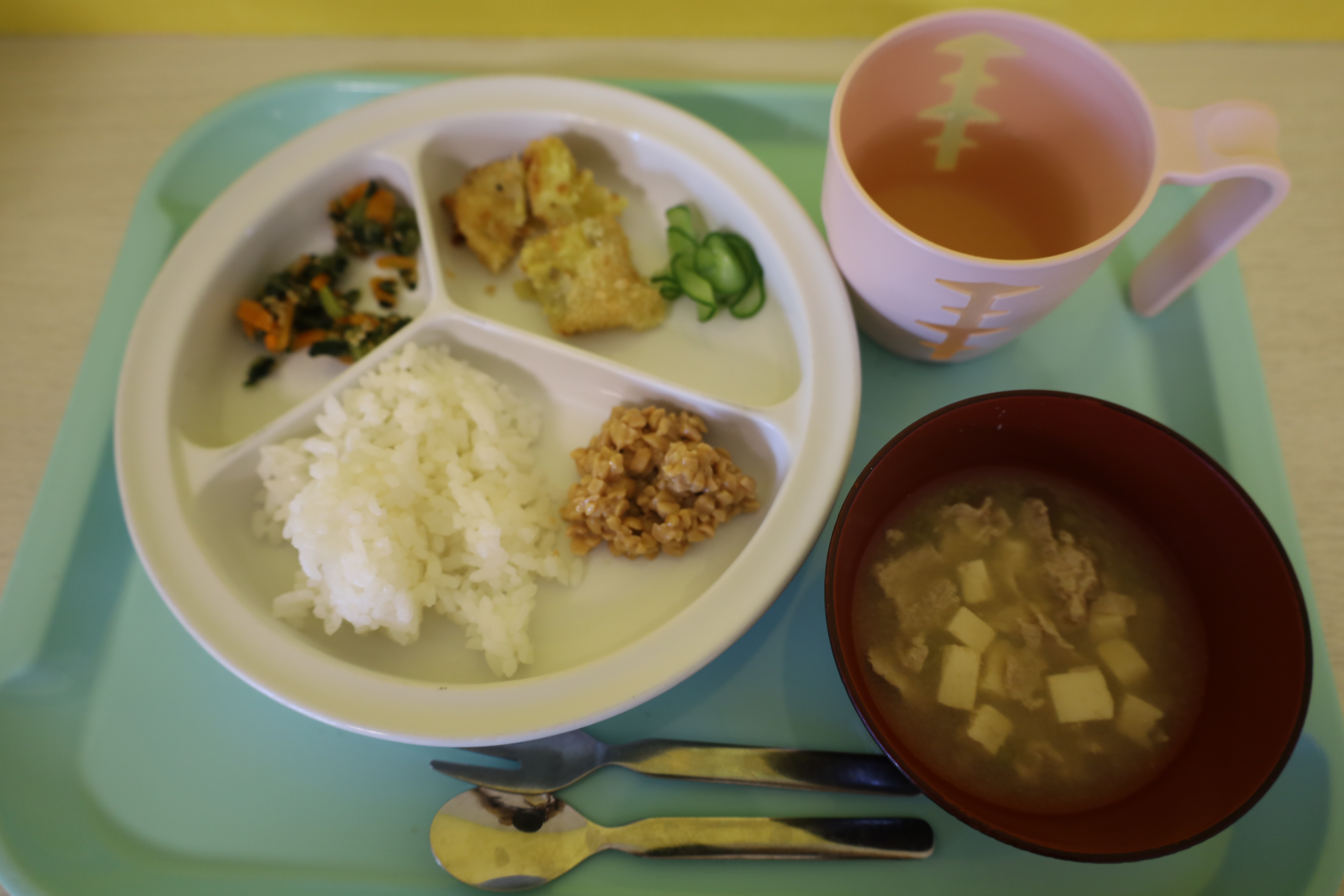 ご飯・さつま芋コロッケ・小松菜と人参の胡麻和え・豚汁(豚肉・豆腐・インゲン)