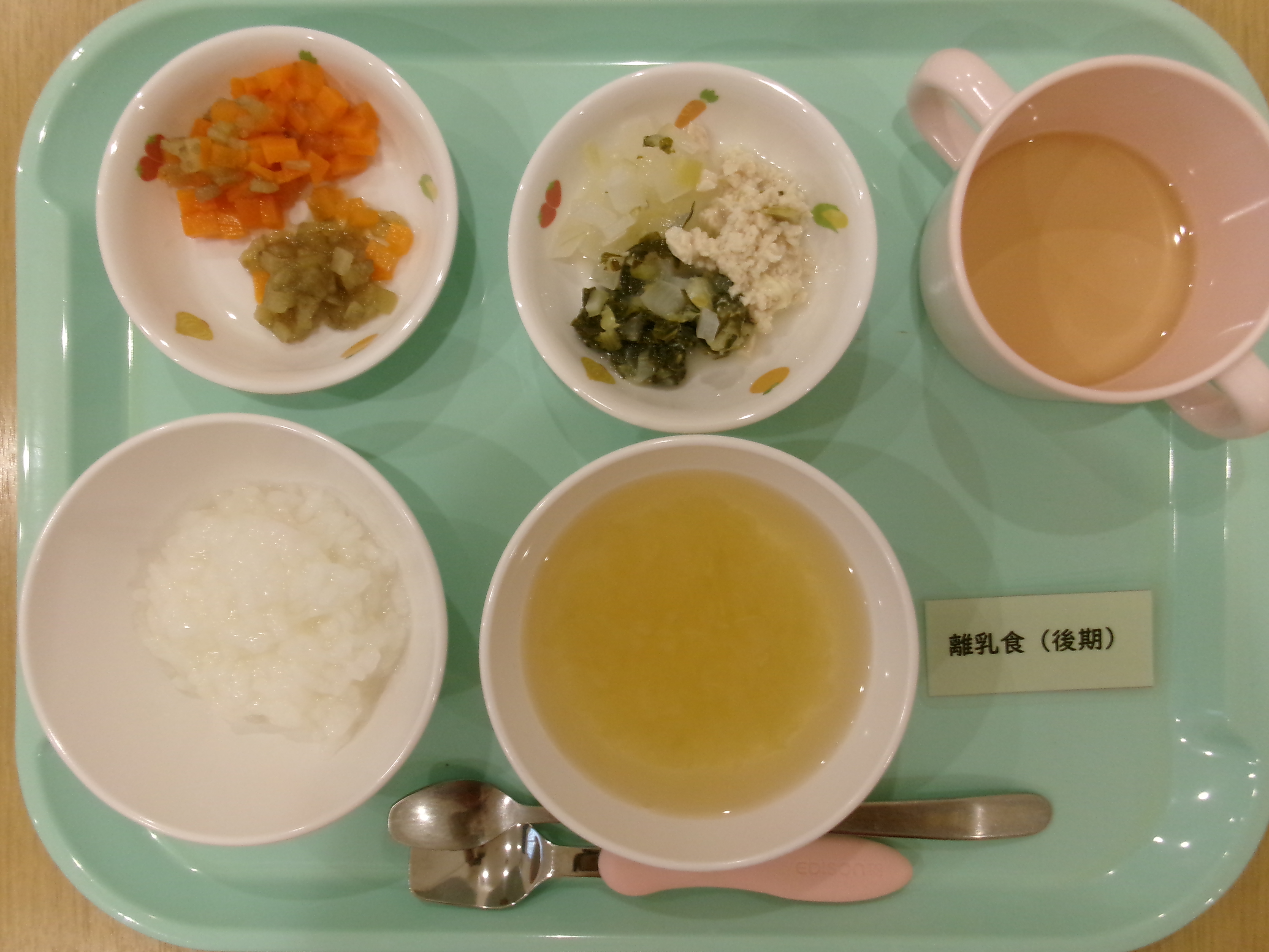 かゆ・鶏肉と野菜の豆乳煮・なすと人参のやわらか煮・スープ