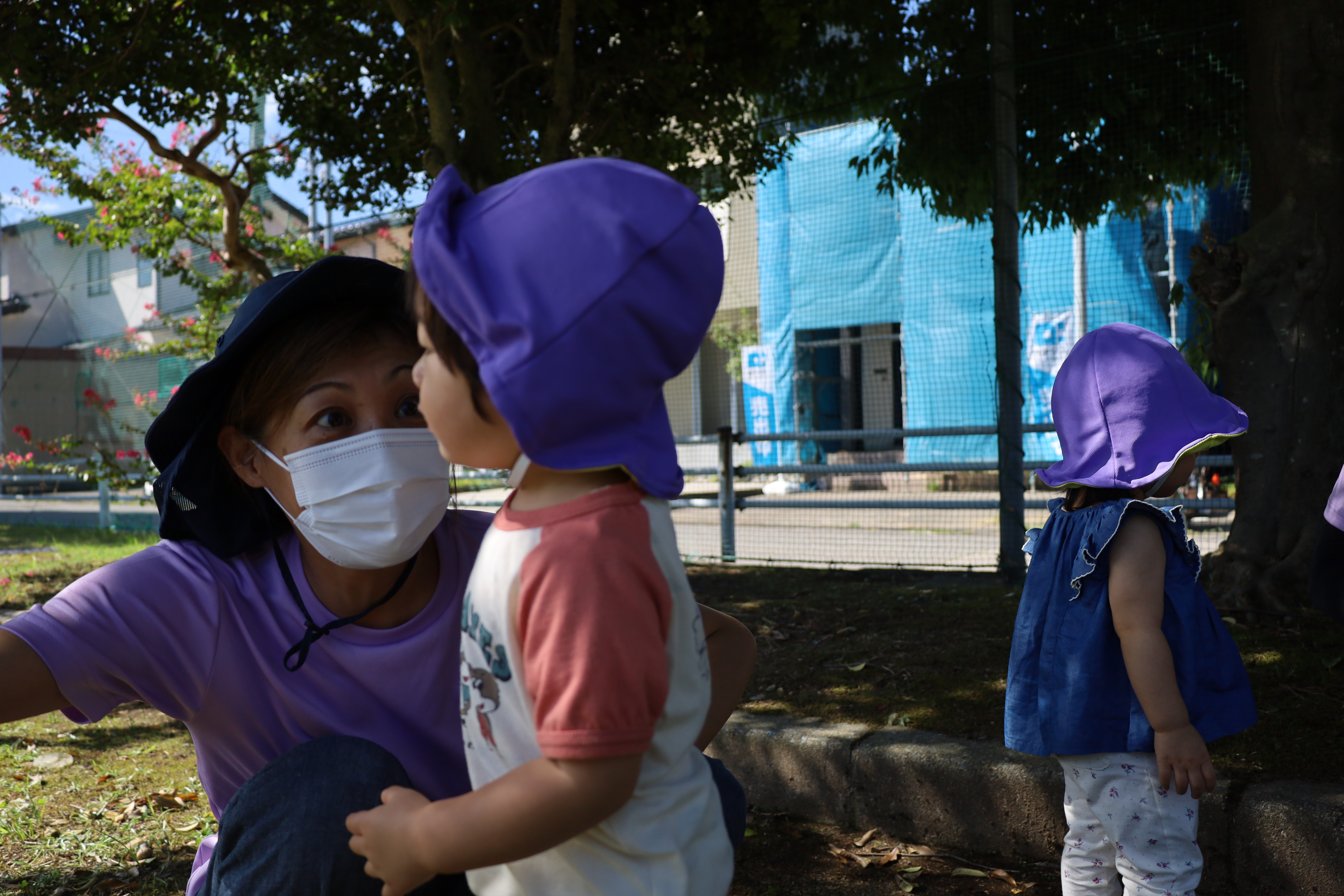 公園の大きな木の下に、