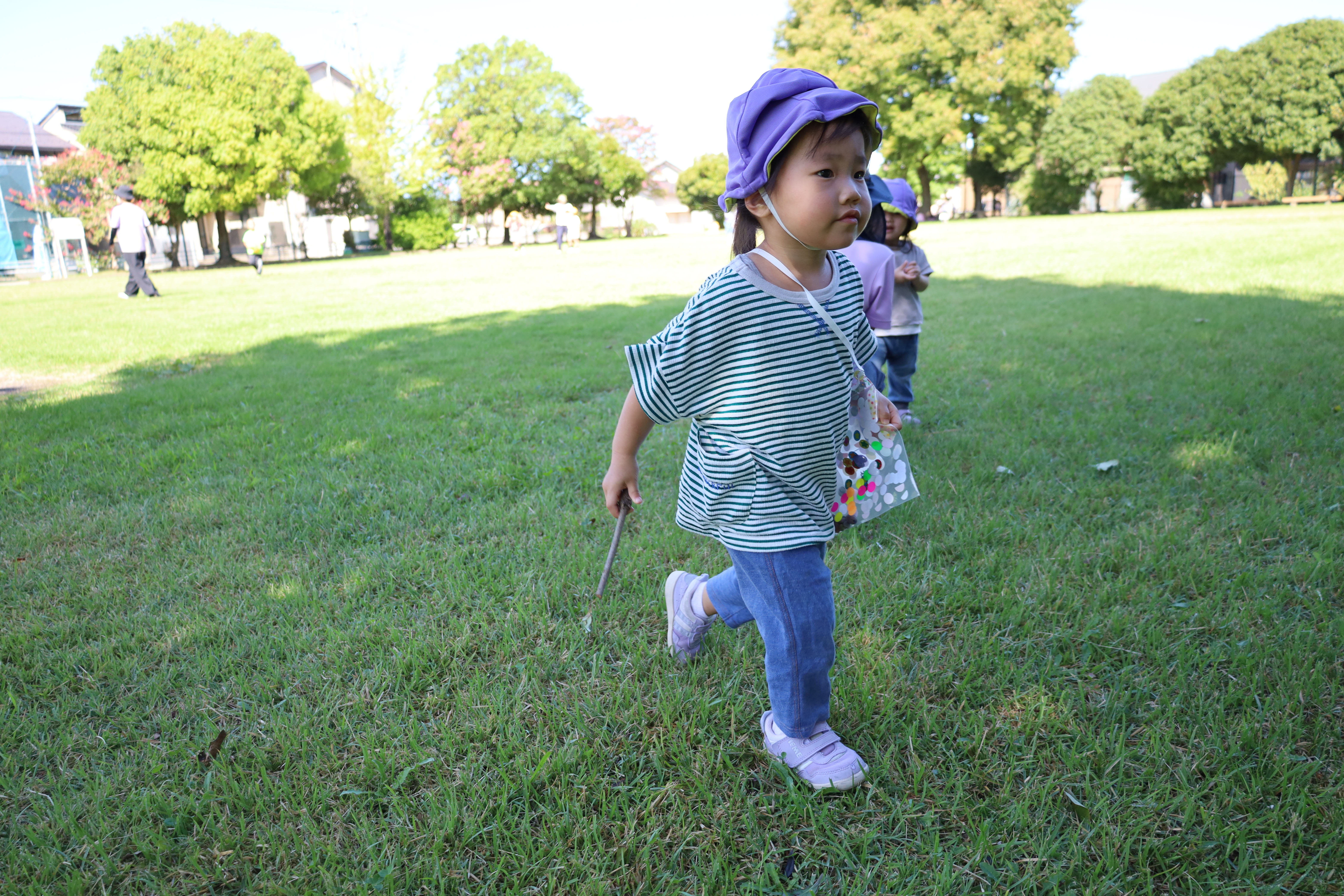 秋晴れの気持ち良い日。みのり・はなたねさんたちは公園に散歩に出かけました。