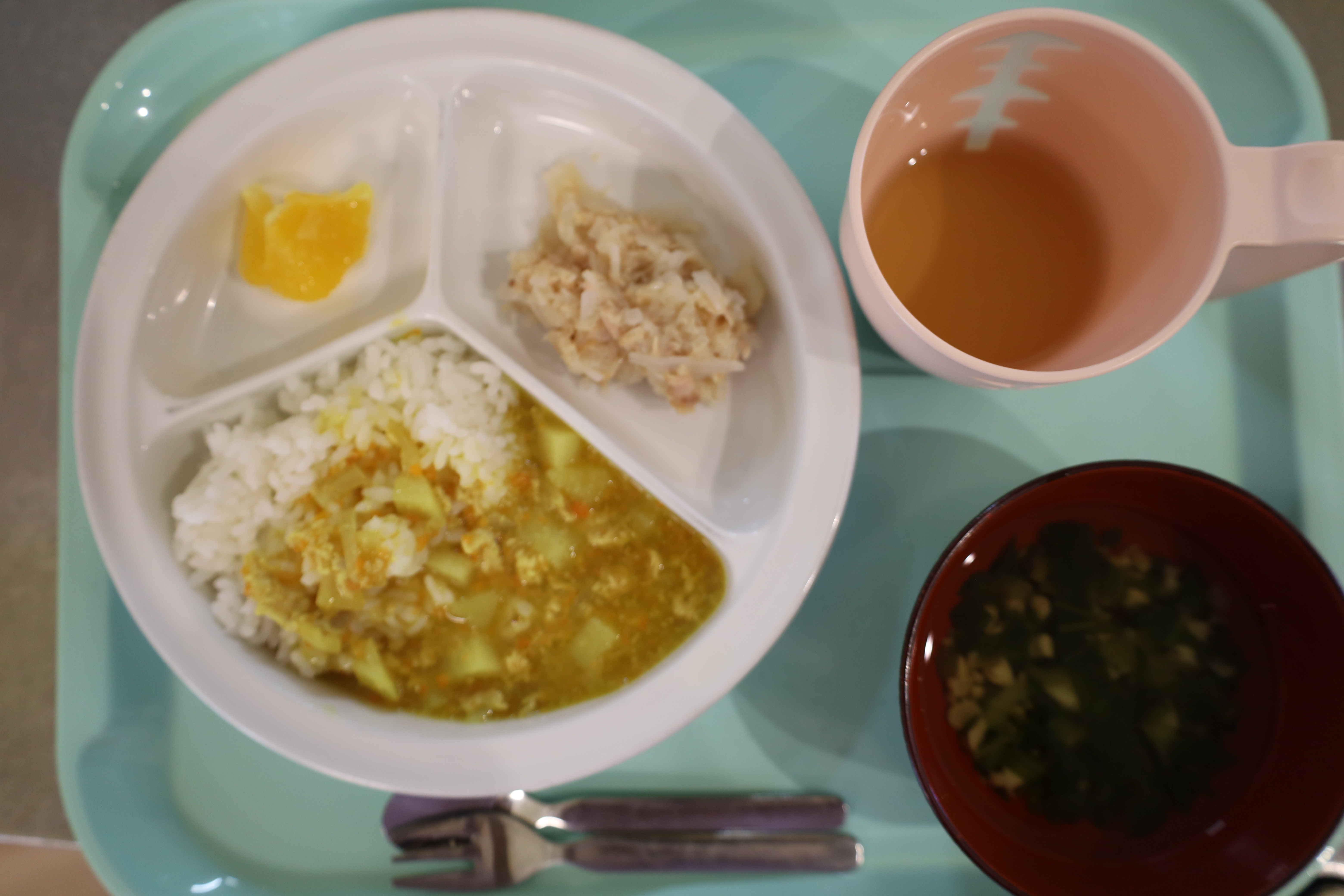 カレーライス・大根のツナサラダ・スープ・フルーツ(オレンジ)