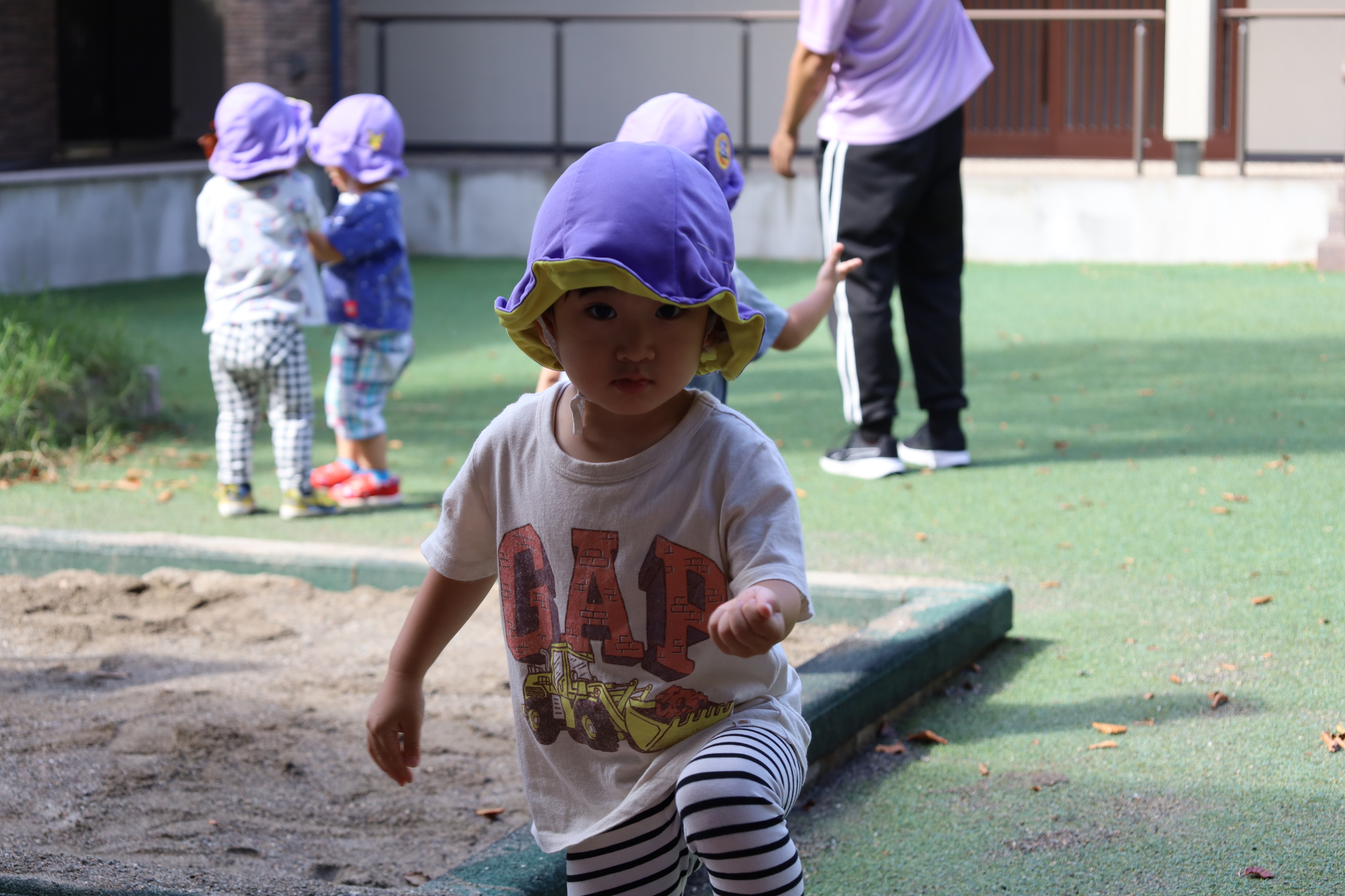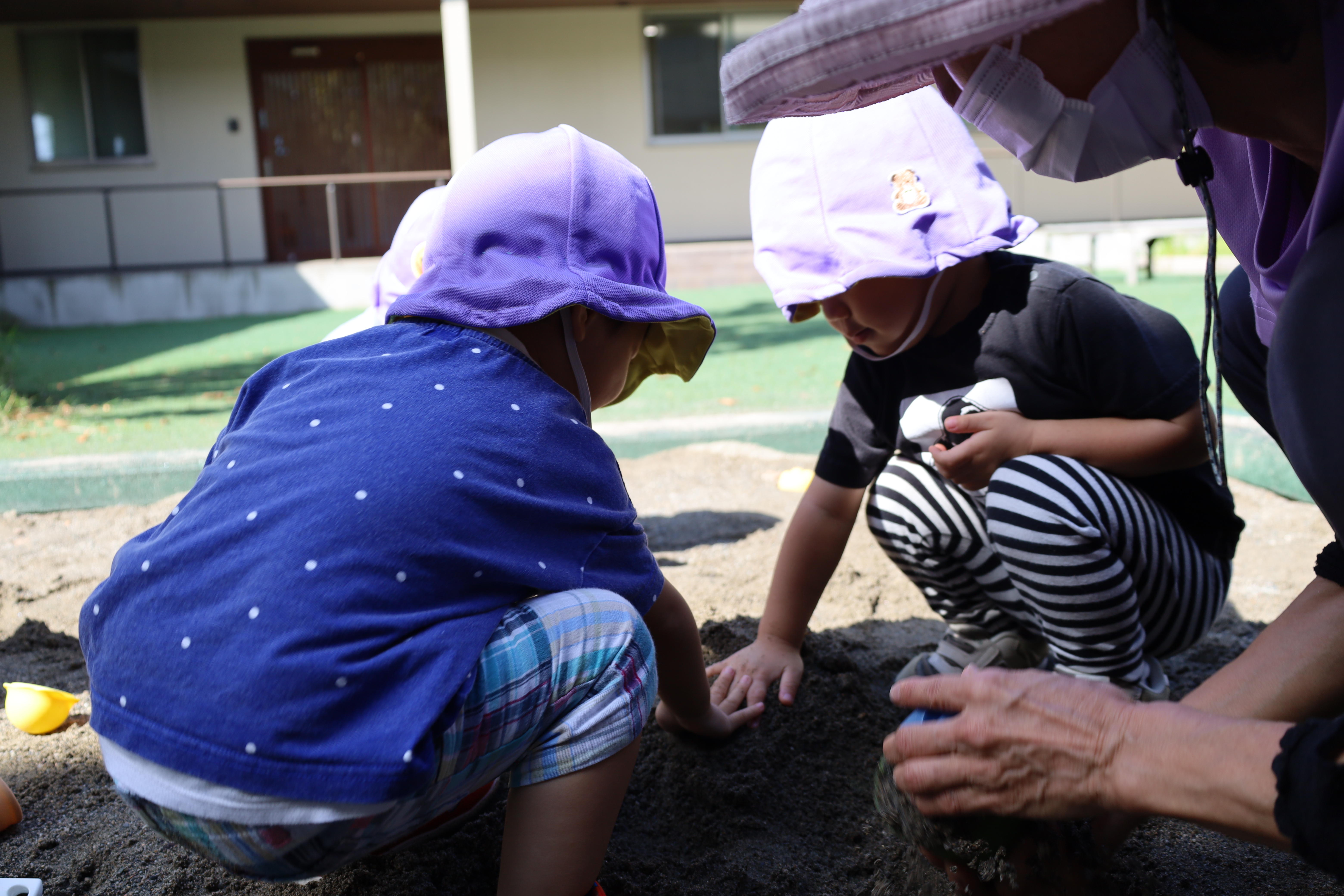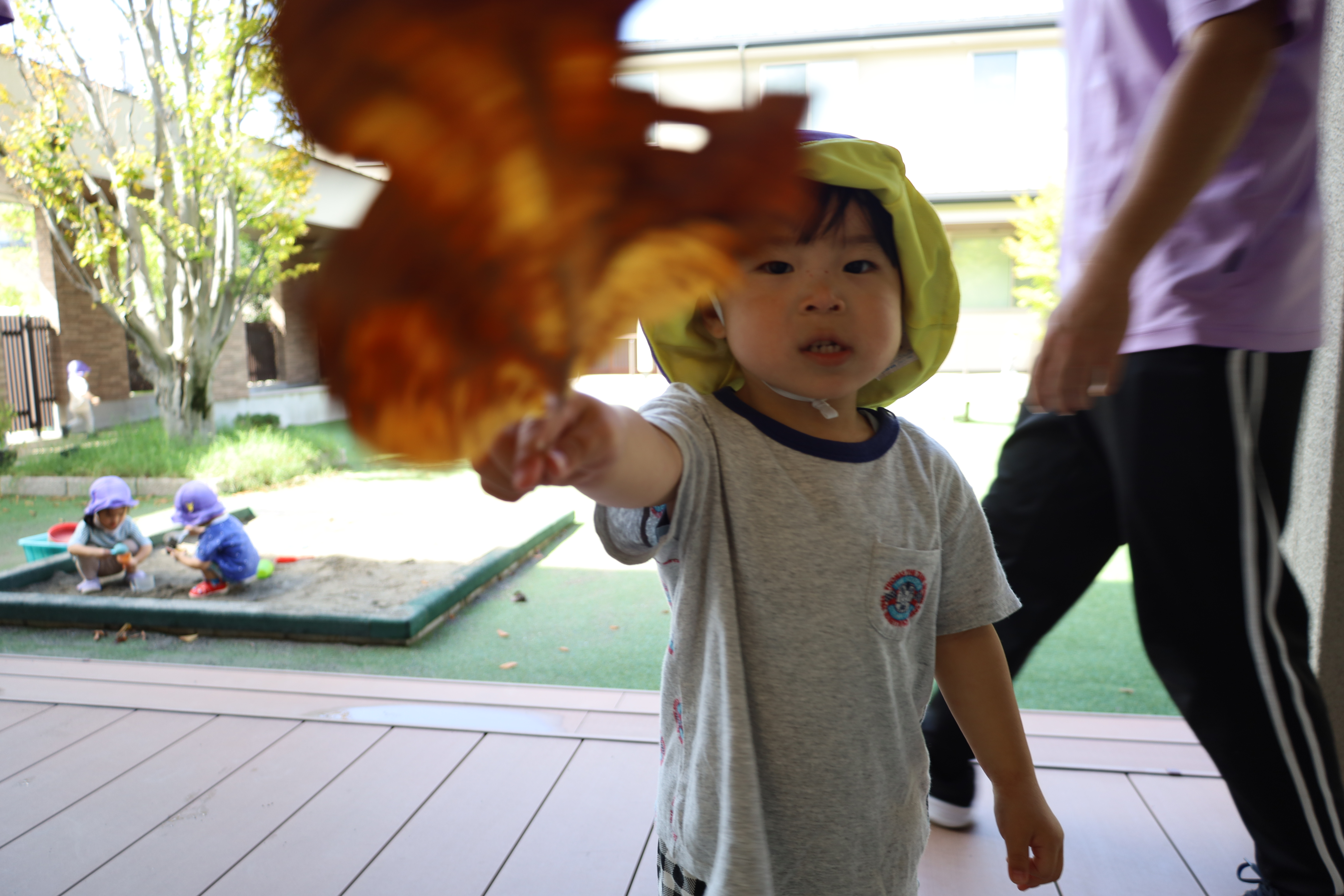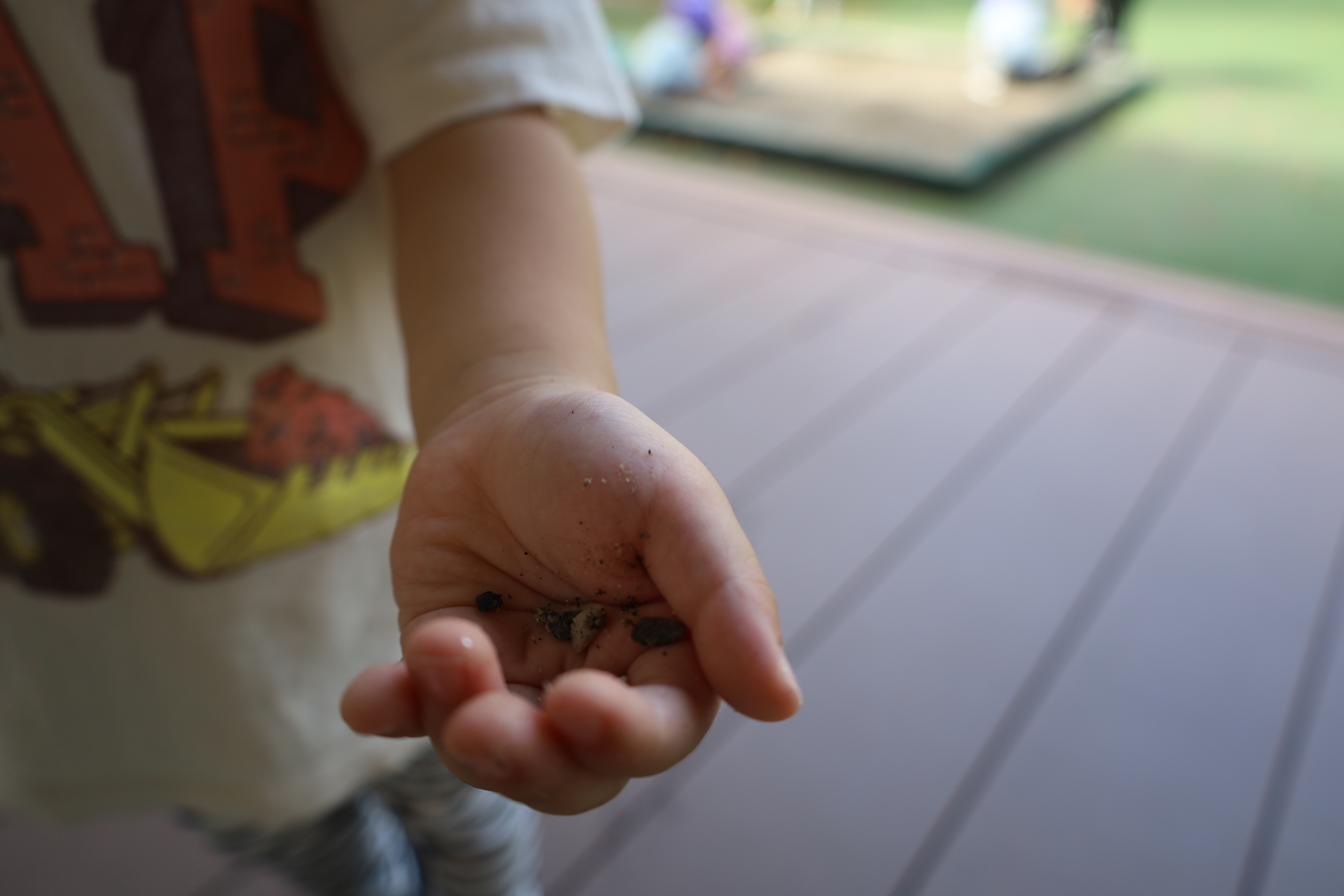 残念ながら、あんまりはたらく車はいなかったみたい。帰ってきてから、お庭であそびました。