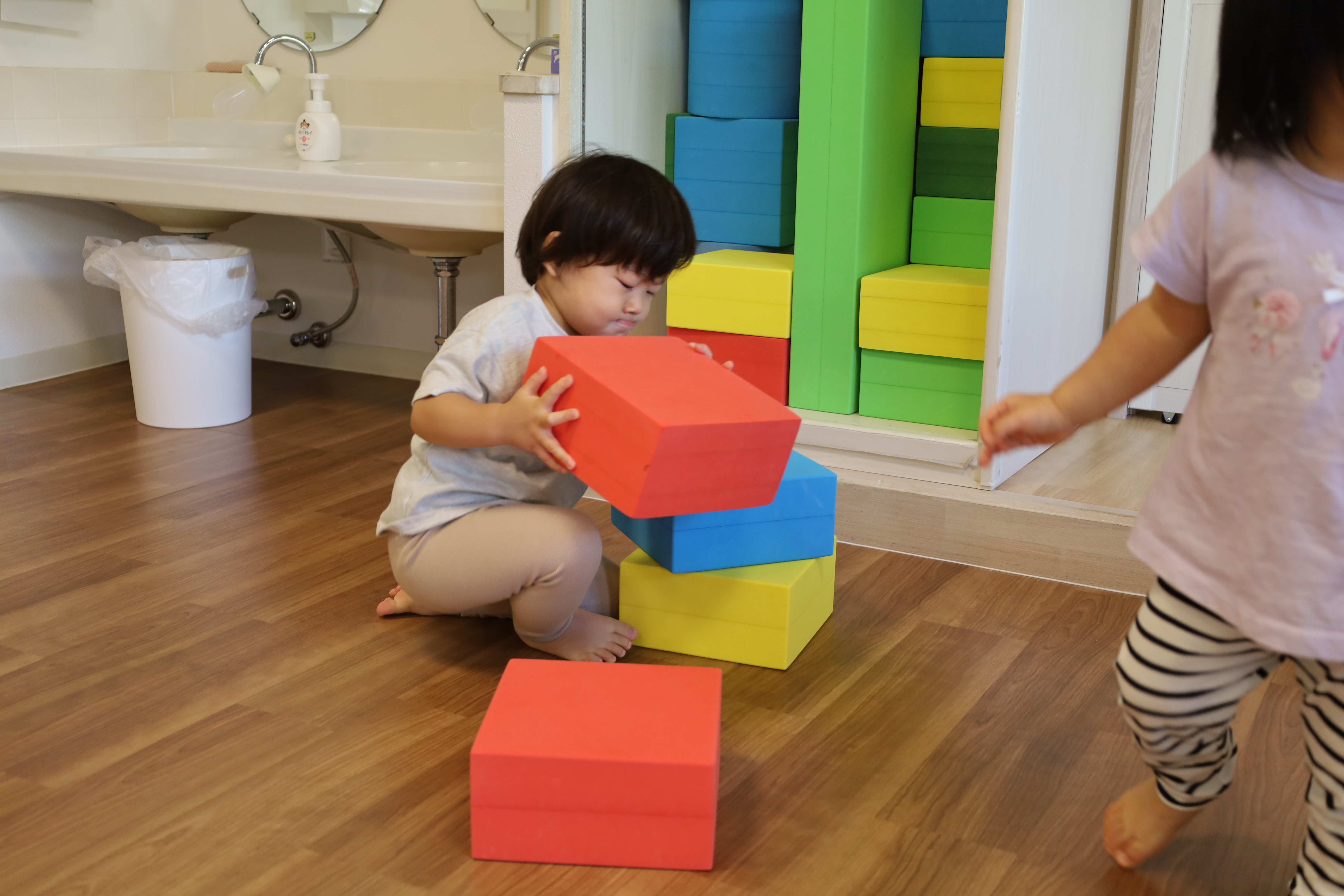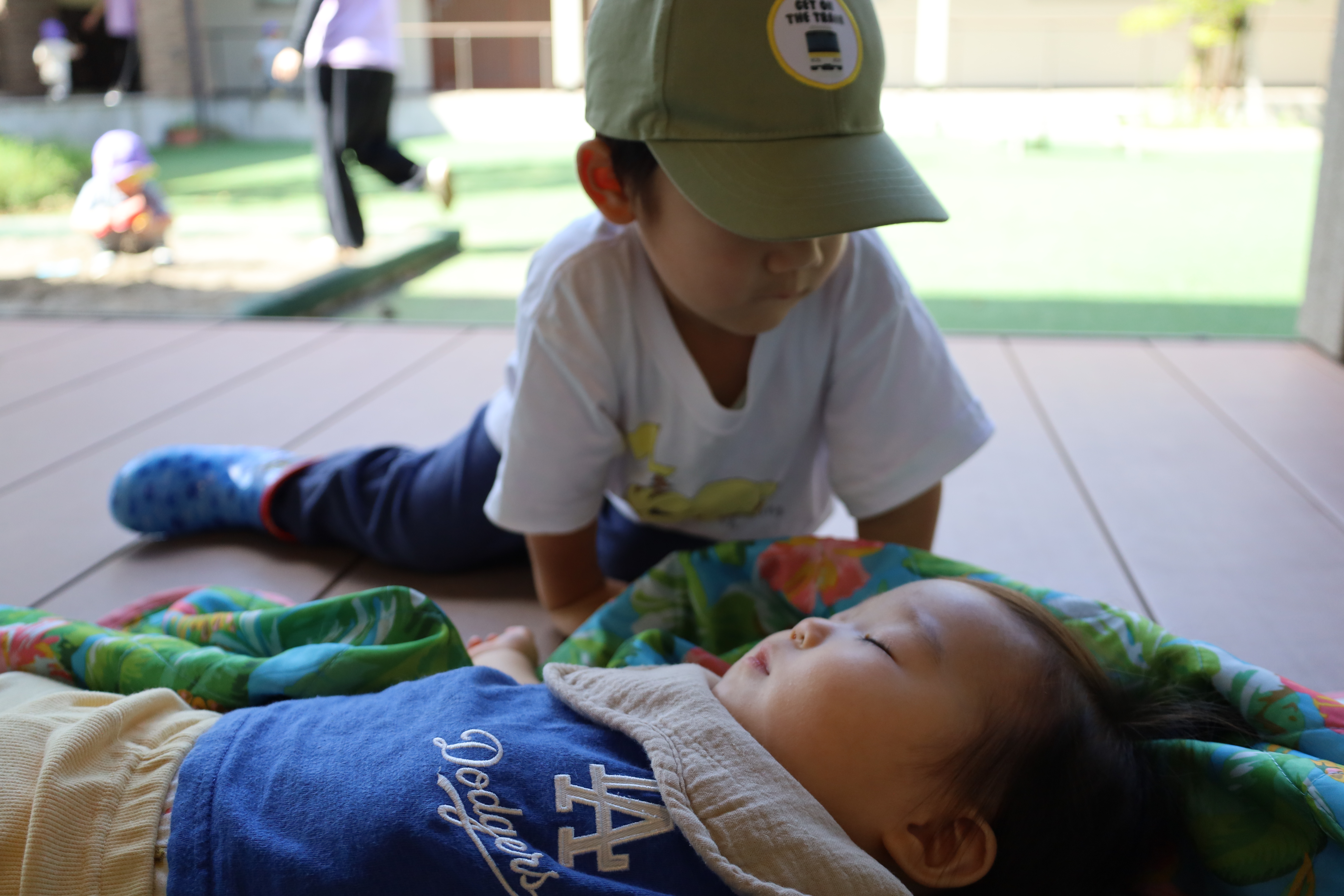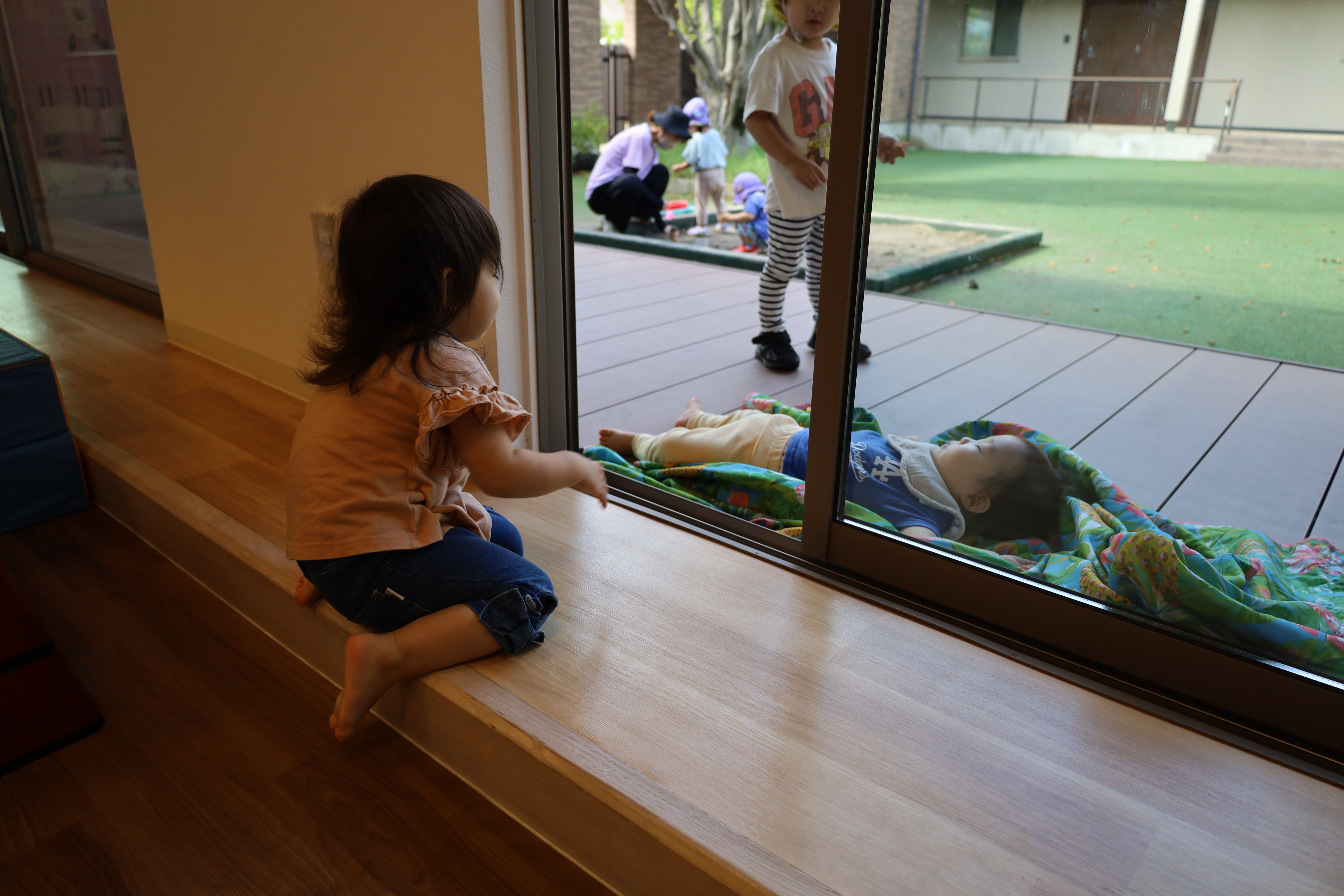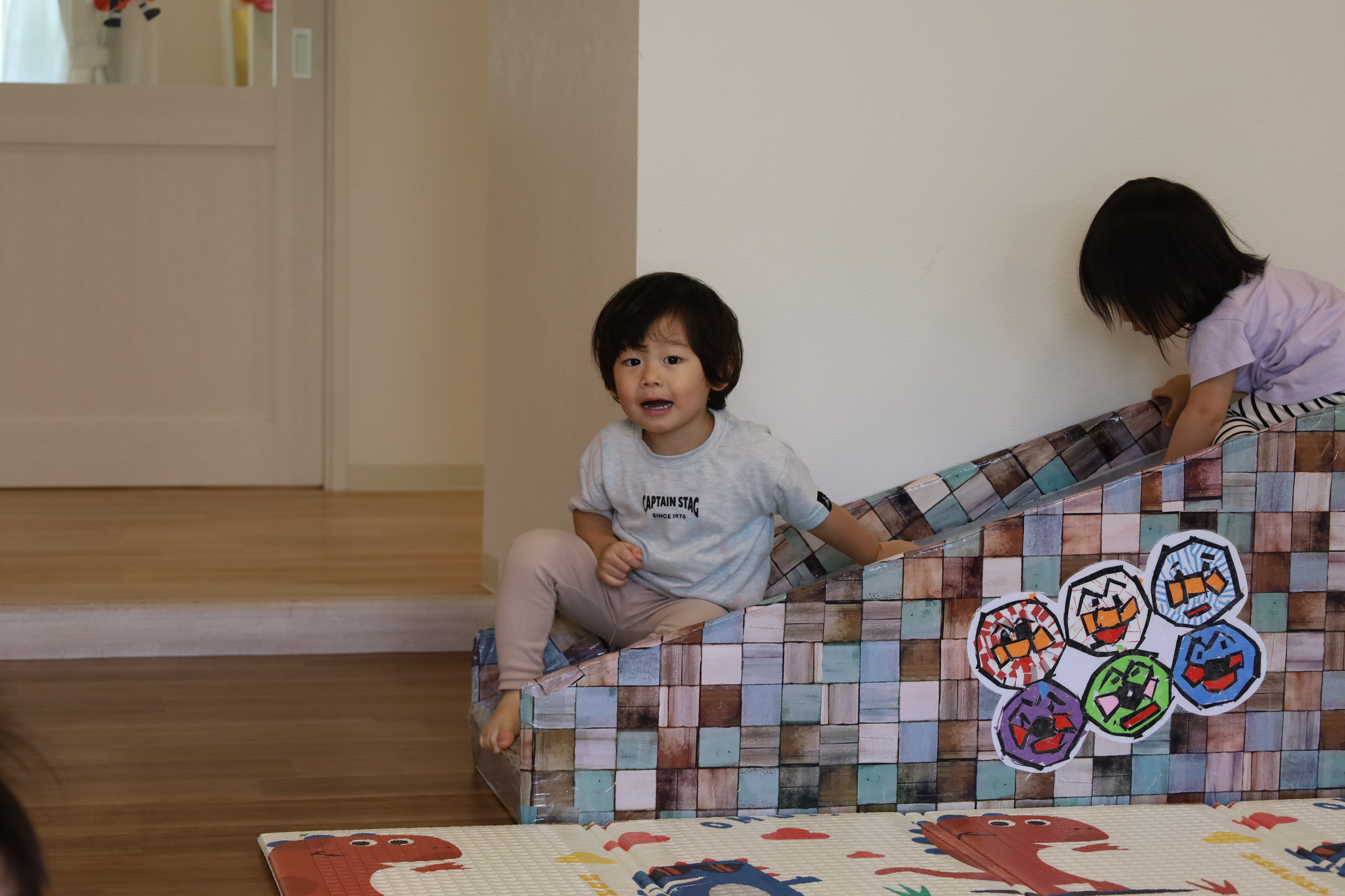 残念ながら、あんまりはたらく車はいなかったみたい。帰ってきてから、お庭であそびました。
