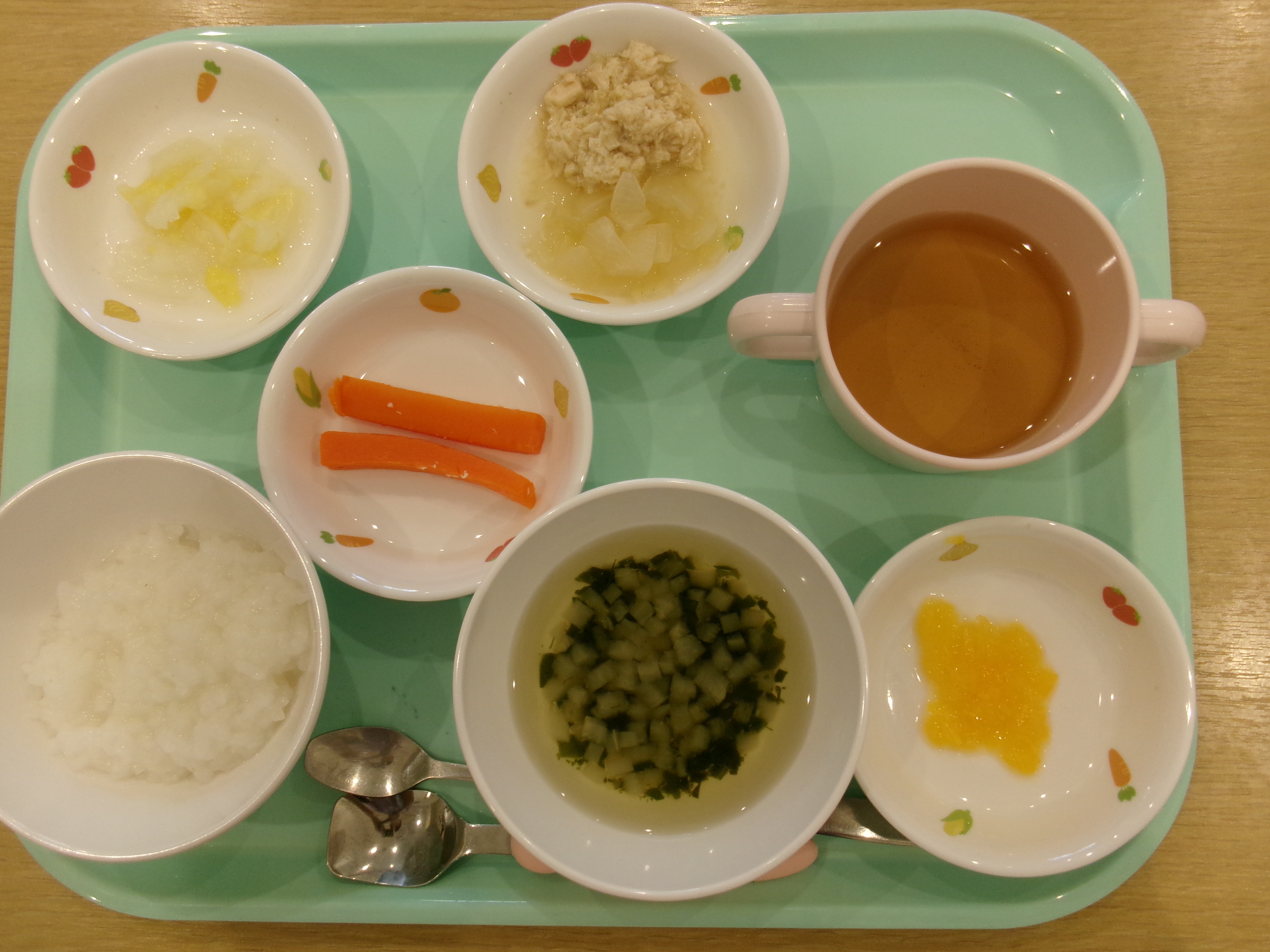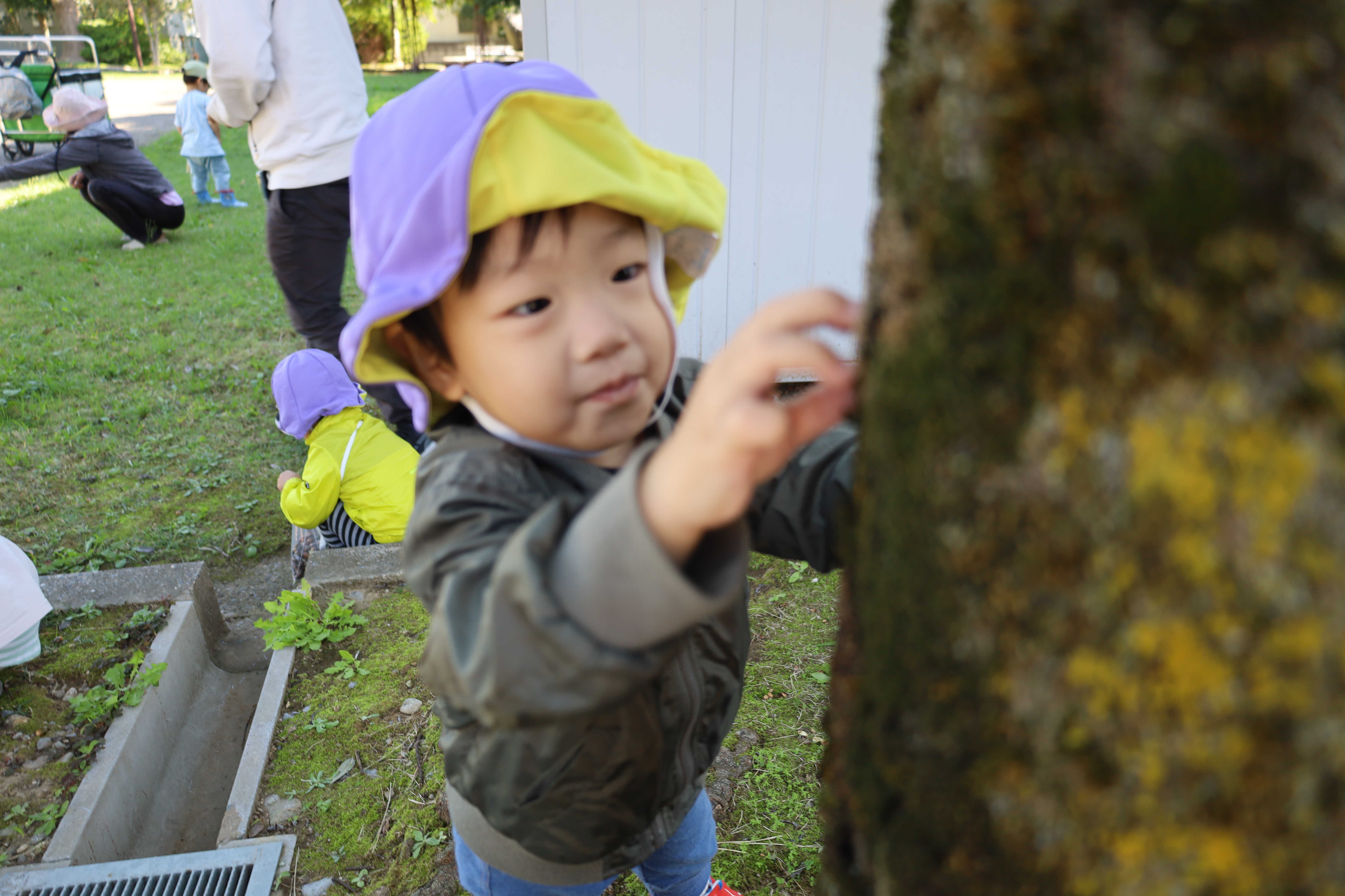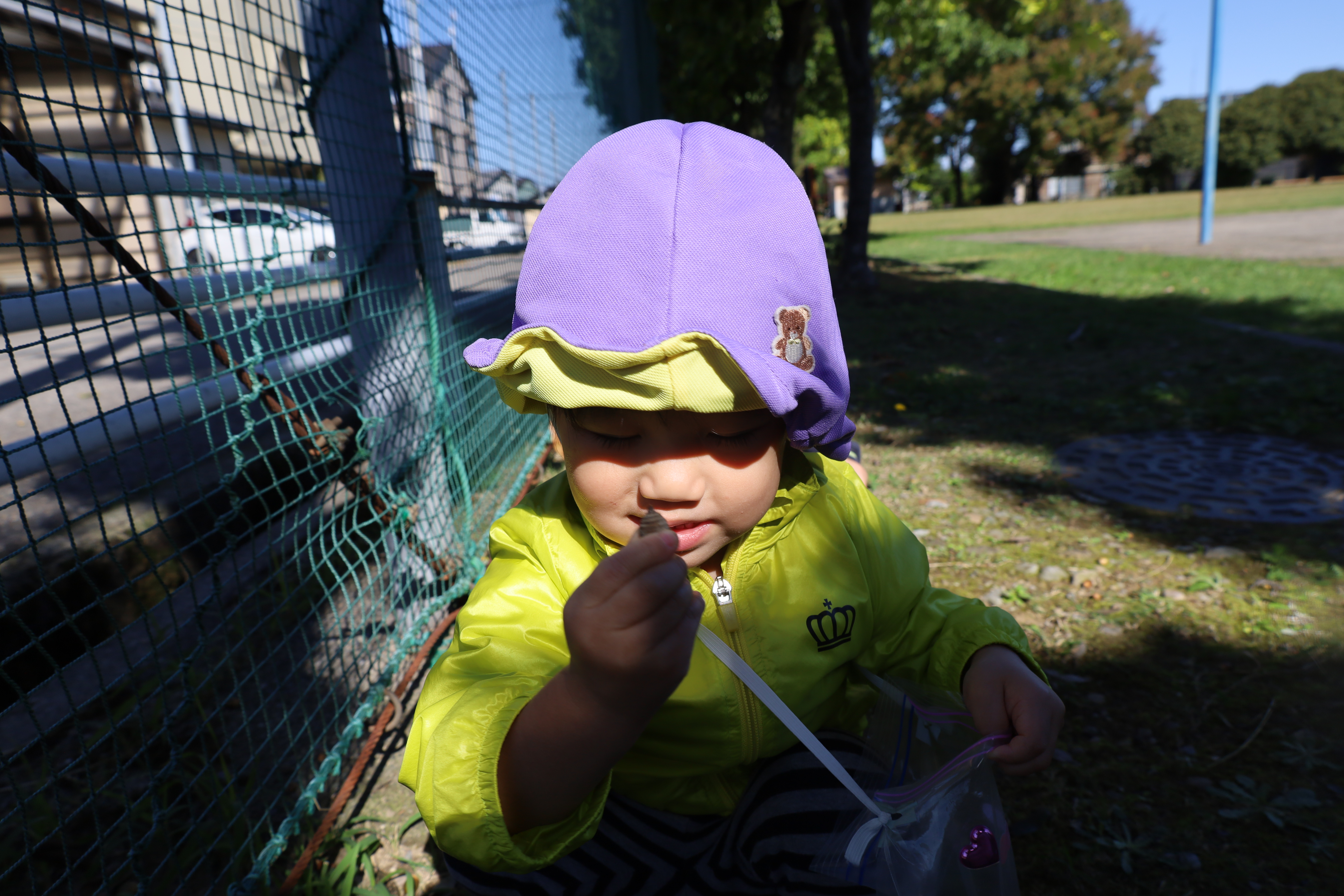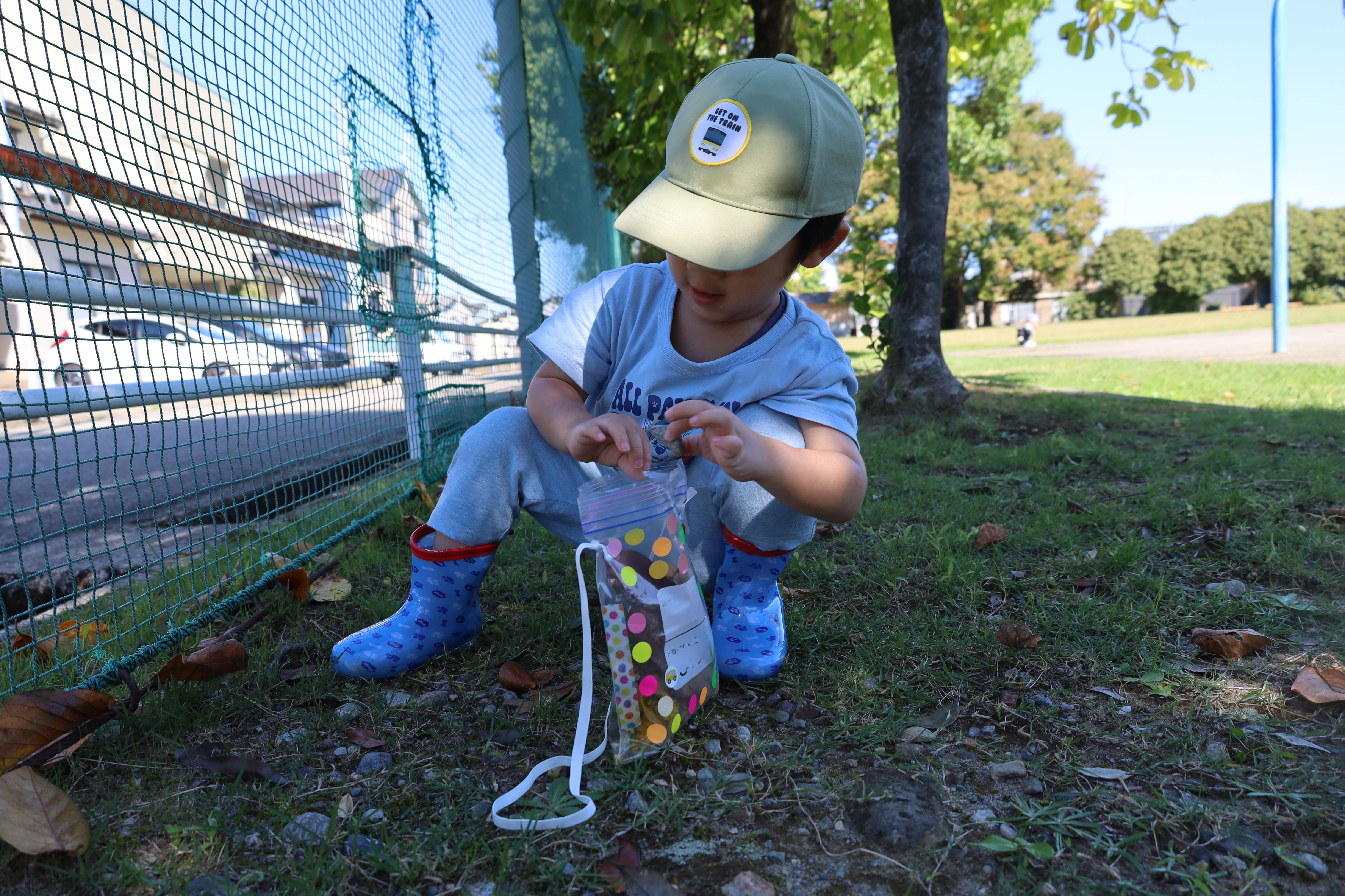 2025.10.23 はなえみhoujikai 2025/10/23 ドングリ集め ツイート シェア はてブ 送る Pocket みのりぐみ とってもいいお天気。大好きな公園にやってきました。 今日は何を見つけるのかな? キレイなお花!! どんぐりみいつけた! みいつけた。 かわいいね。 広い公園のあちらこちらにたくさんドングリが落ちています。みんな早速集め始めました。 こんなトコにもあったよ。 忘れず拾おう。 木の幹についているコレはなんだろう・・・? ここにはたくさん落ちている。 やった!ゲットした! ここにもあったよ。 たくさん、拾おう! 真剣な眼差し。まるで、収穫作業をしている農家さんのようです。 うん、これはいいな~。 お散歩バックに大量のドングリ。 どんぐりいっぱい、大収穫!! 大好きな公園、また来るね。まっててね。 10月23日 今日の給食 離乳食・後期 かゆ・鶏肉と野菜のやわらか煮(人参スティック)・白菜サラダ・スープ・フルーツ(オレンジ) 幼児食 ハヤシライス・白菜のコーン和え・スープ(大根・ワカメ)フルーツ(オレンジ) 幼児食・午後おやつ 牛乳・しらすのハッシュポテト・スティック野菜