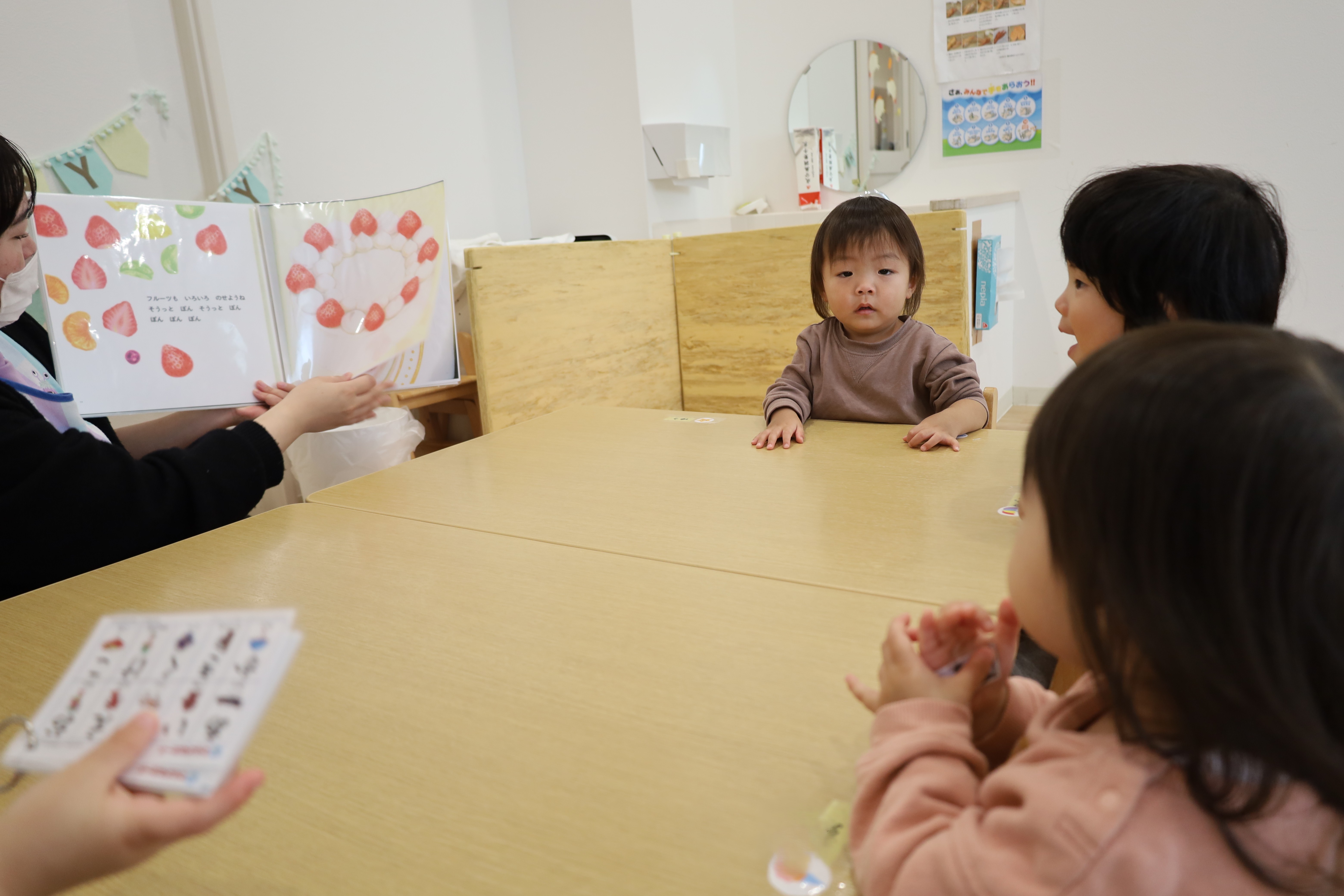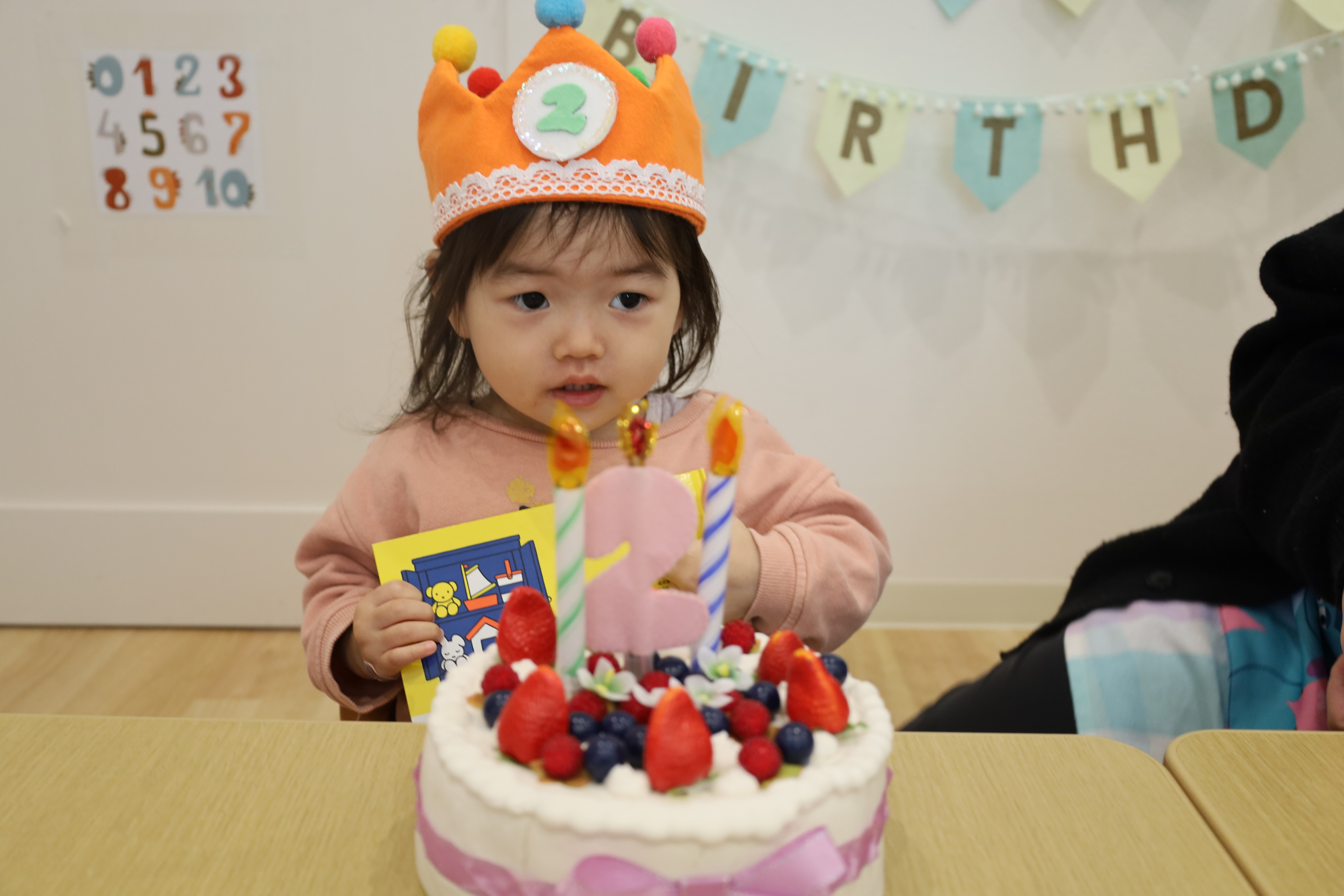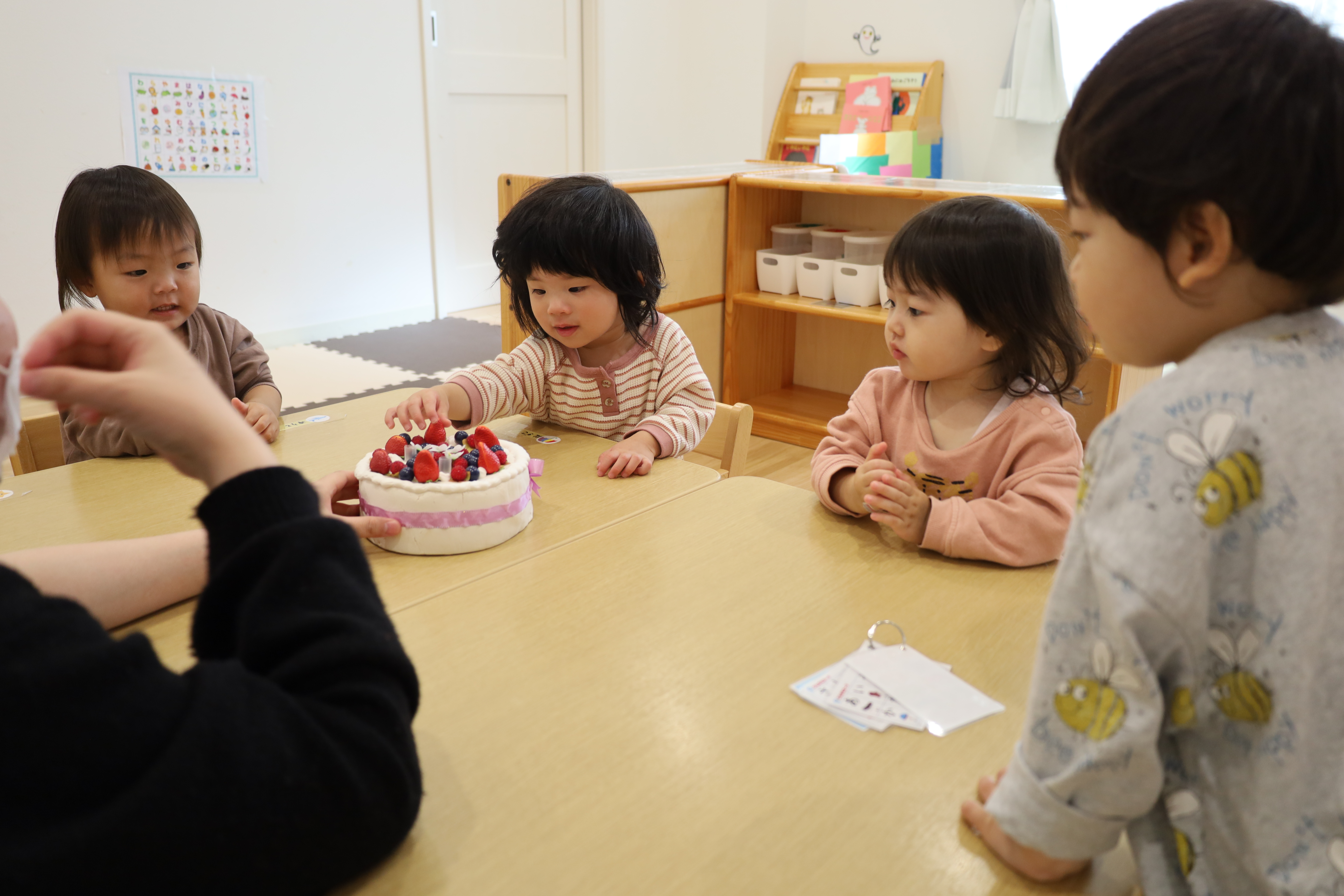 2025.11.14 はなえみhoujikai 2025/11/14 お誕生日おめでとう!! ツイート シェア はてブ 送る Pocket 日曜日にお誕生日を迎えるおともだち。保育園では今日お祝いしました。 おいしい絵本。 食べたいな・・・。 おいしいケーキ。 みんなでつくろう! 2さいになるおともだち。みんなでお祝い! ろうそくたてて、 ♬ハッピーバースデー♬ ふ~・・・・。 カードをもらったね。お誕生日おめでとう!!これからもたくさん、遊ぼうね!!