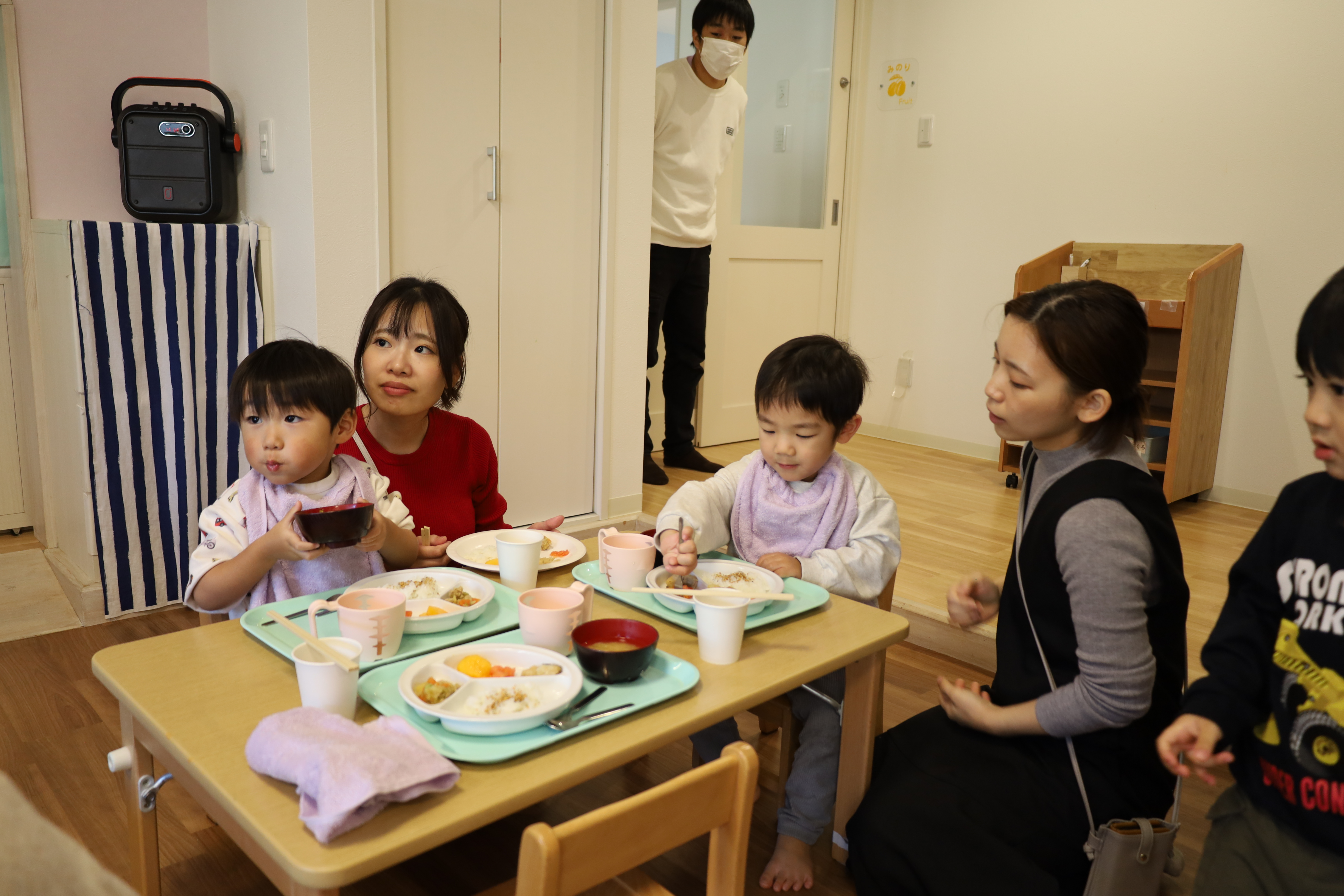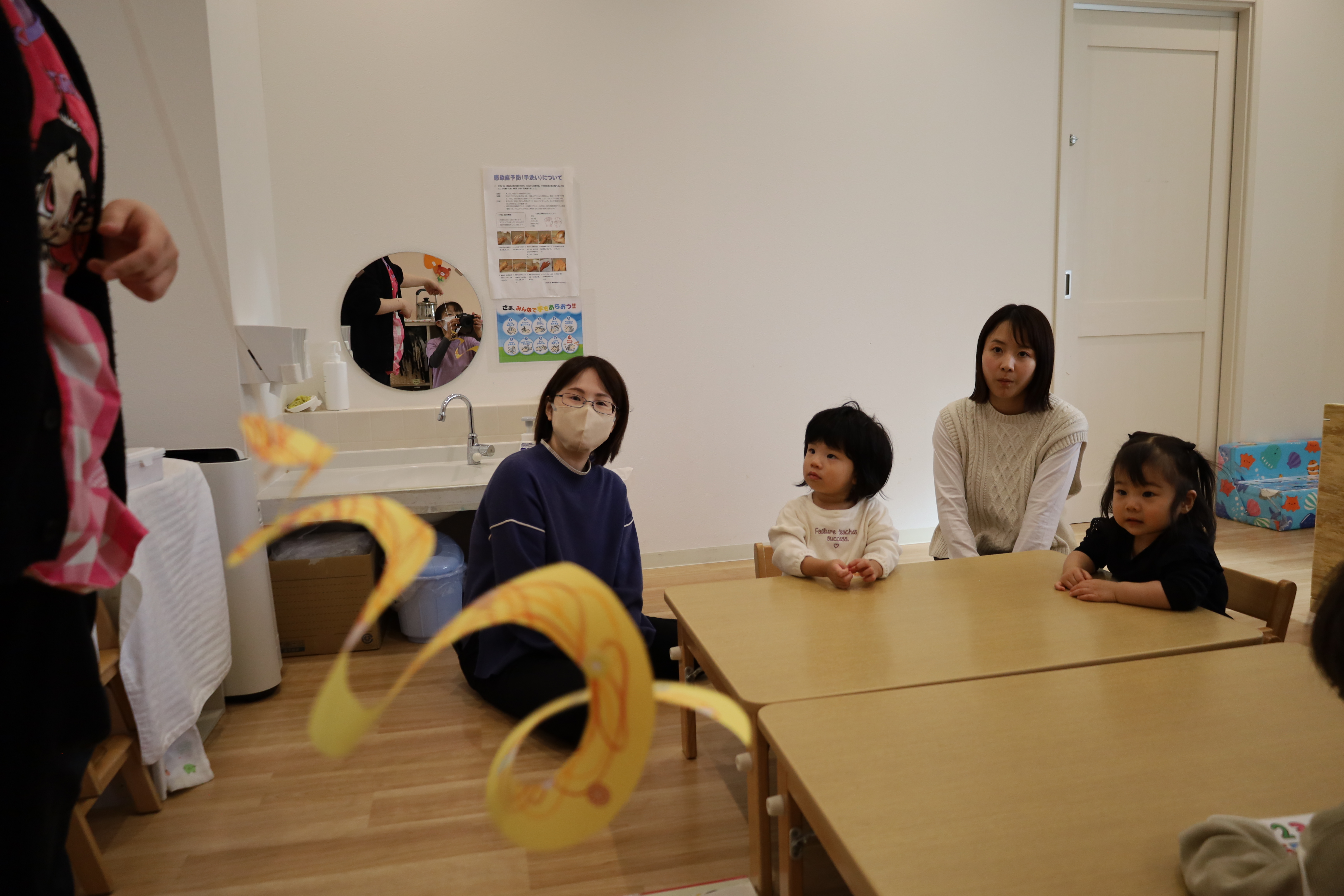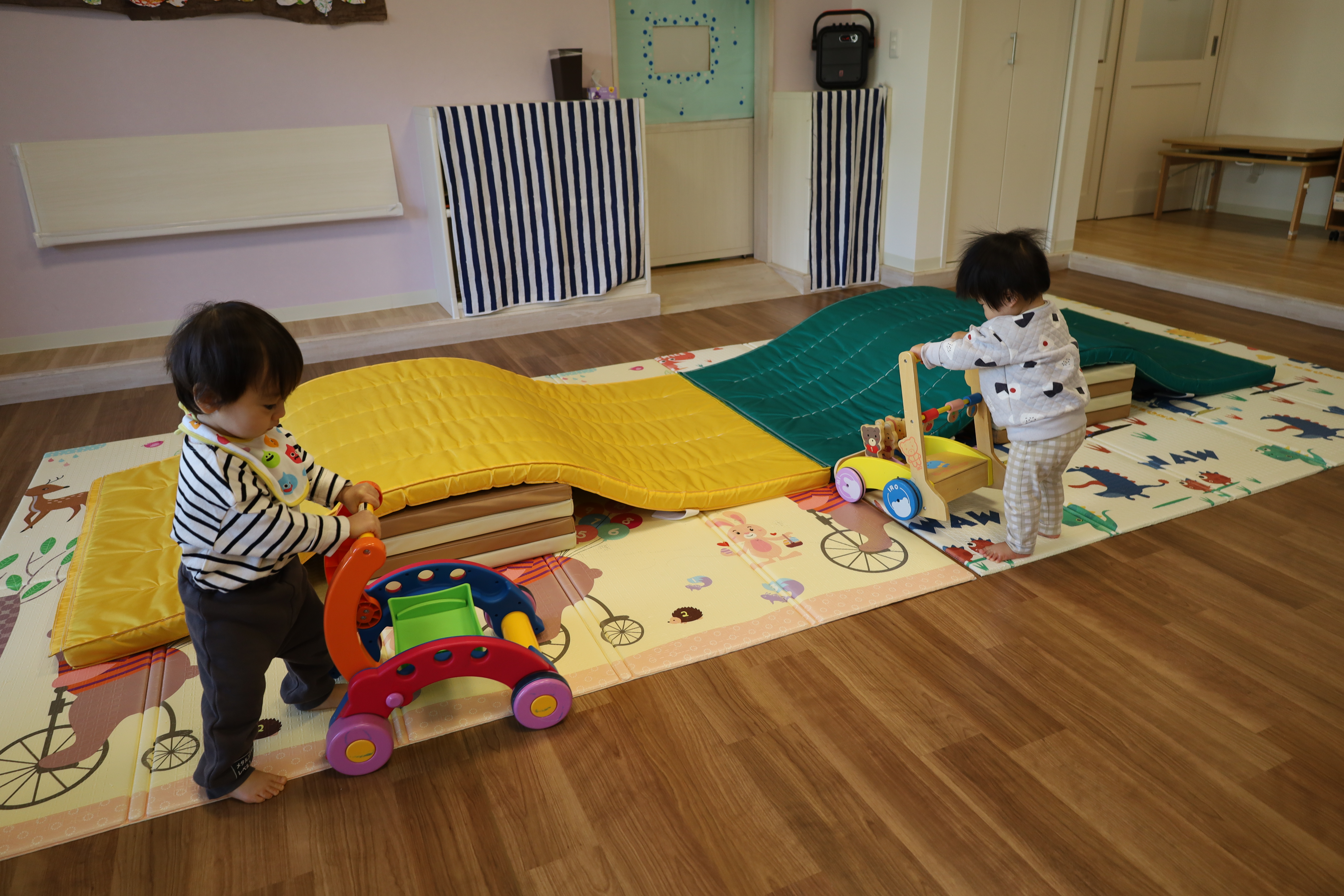 子どもたちと一緒にお部屋に入って過ごしていただきました。