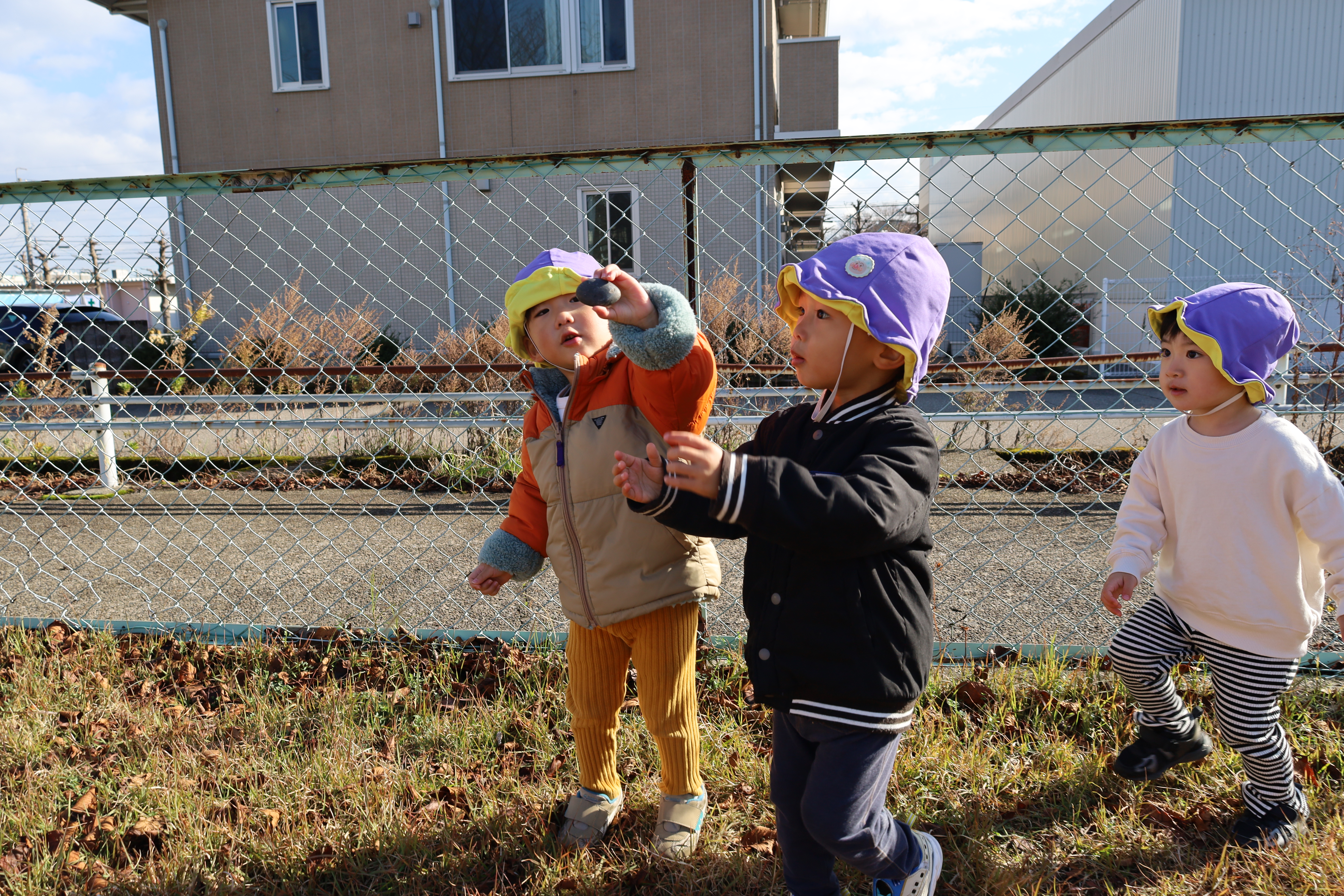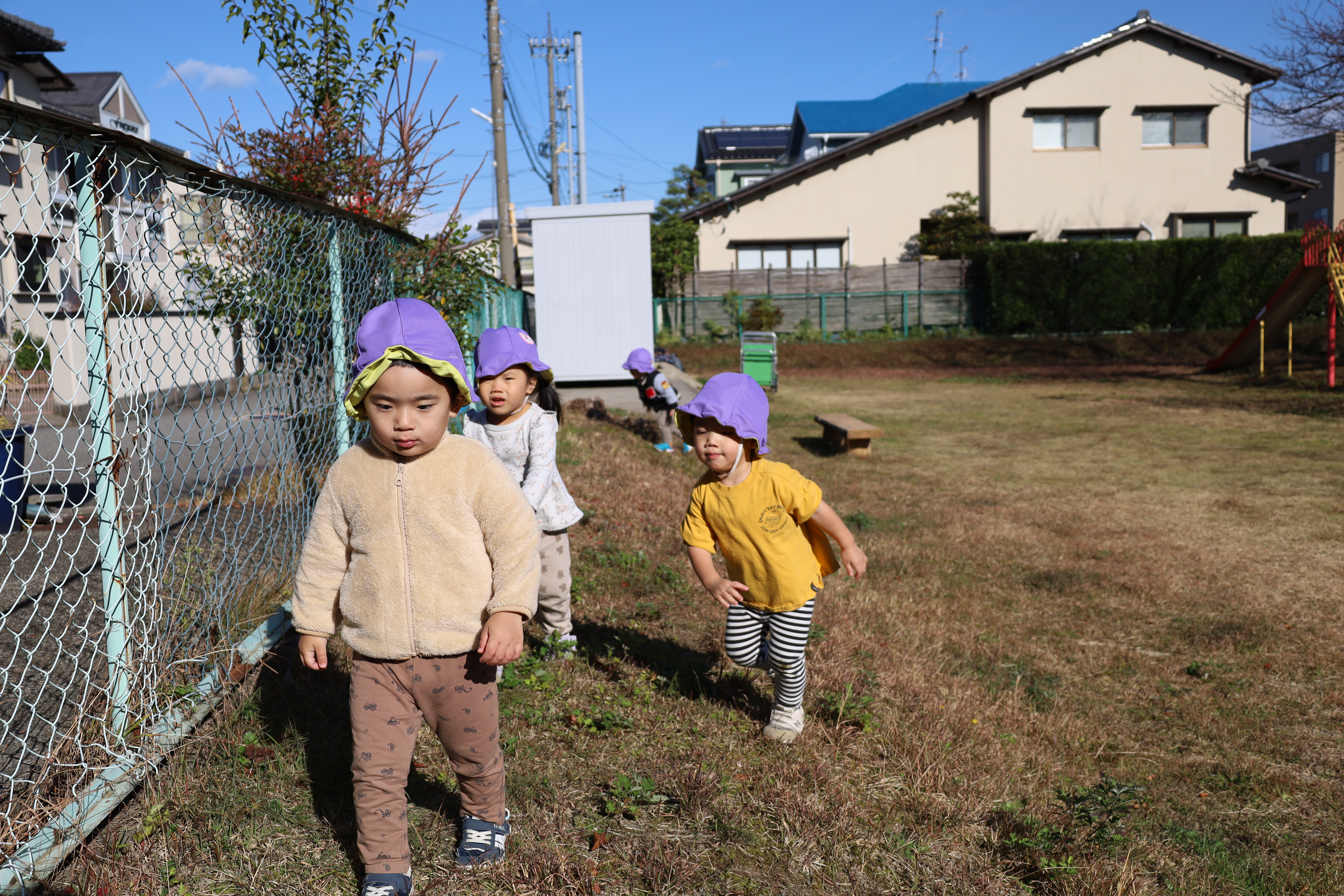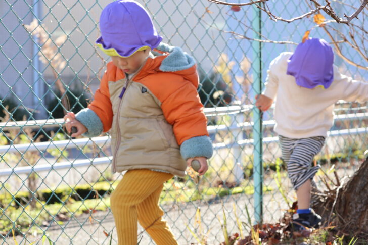 少しずつ、冬本番が近づいていますが戸外あそびを楽しんでいます。
