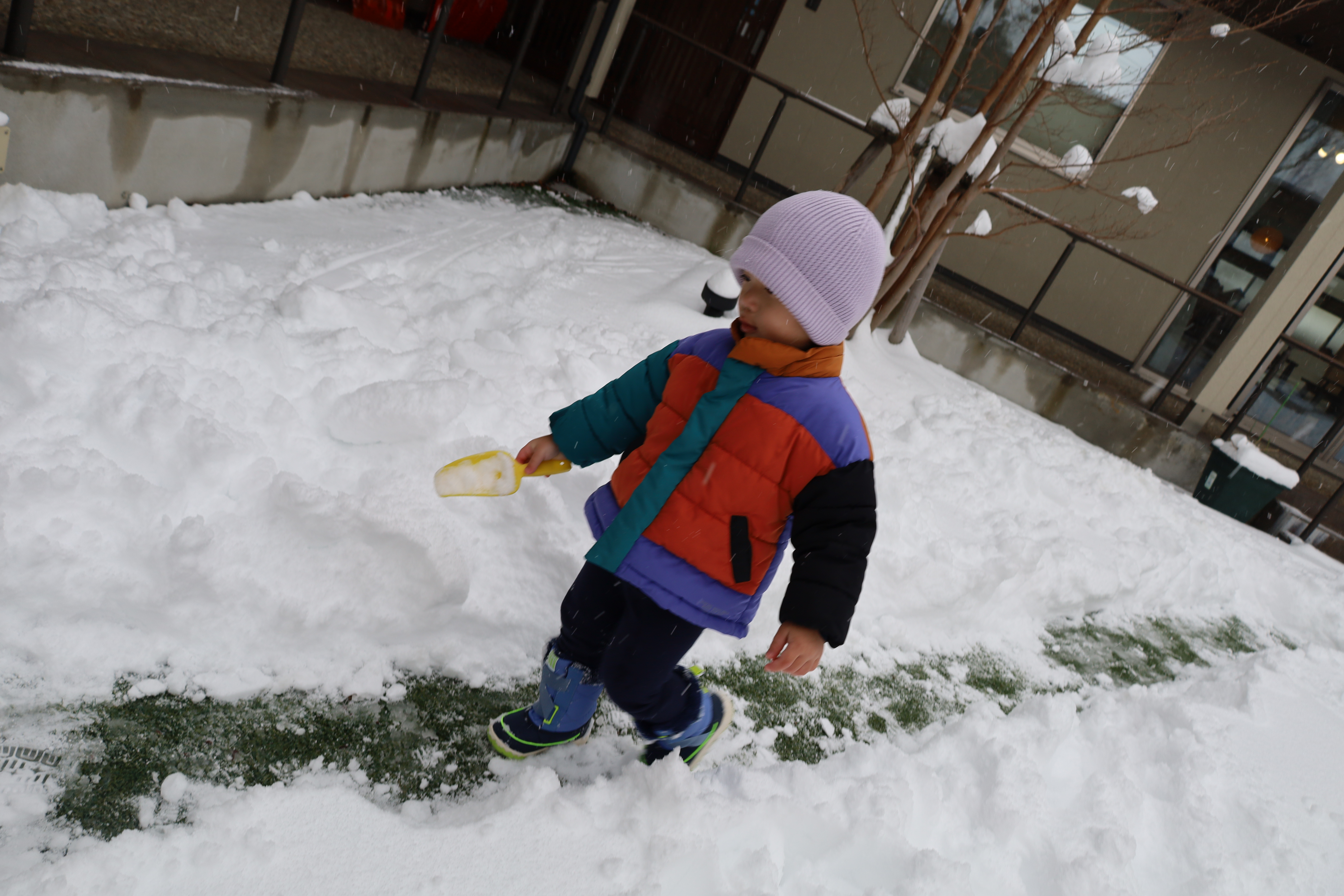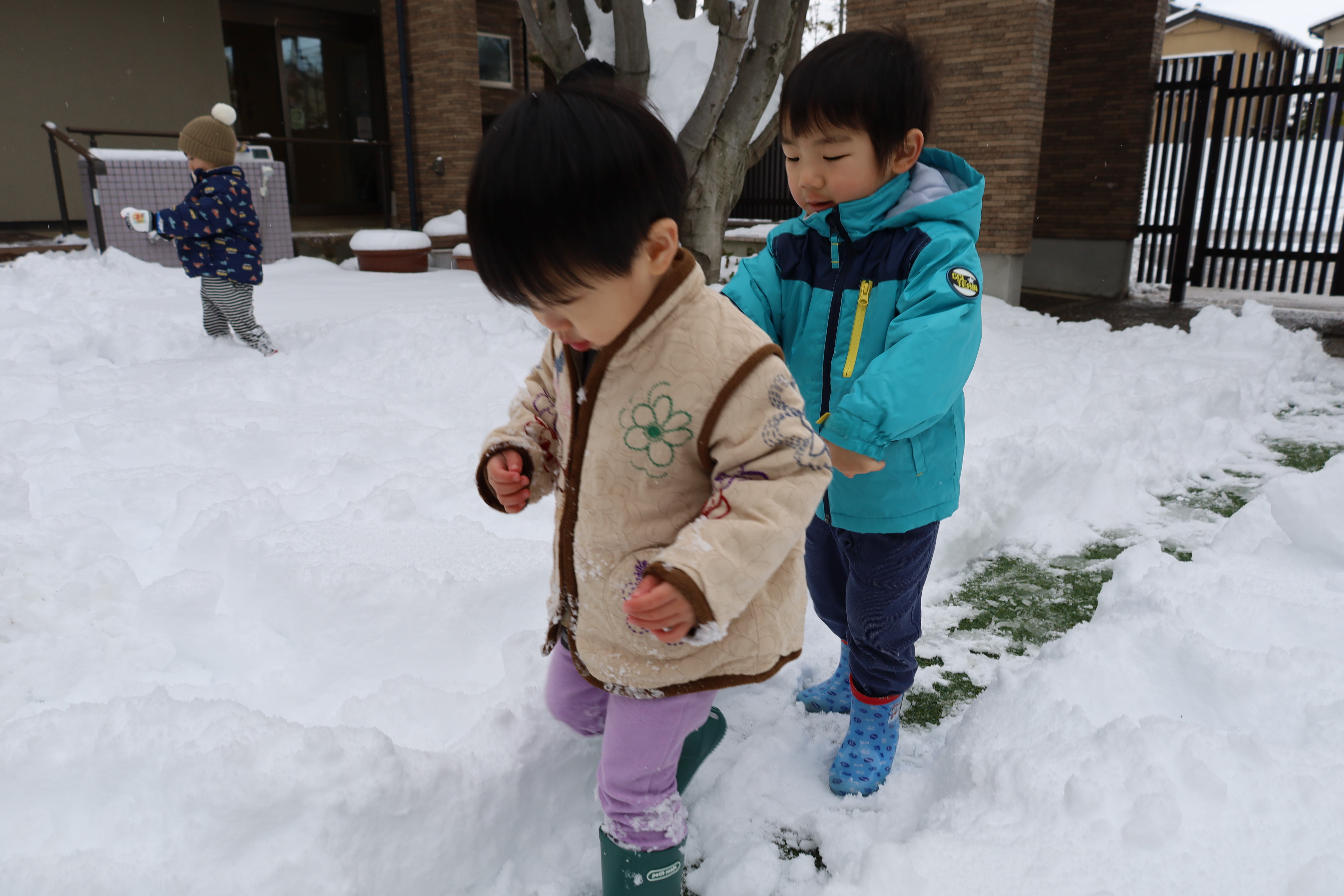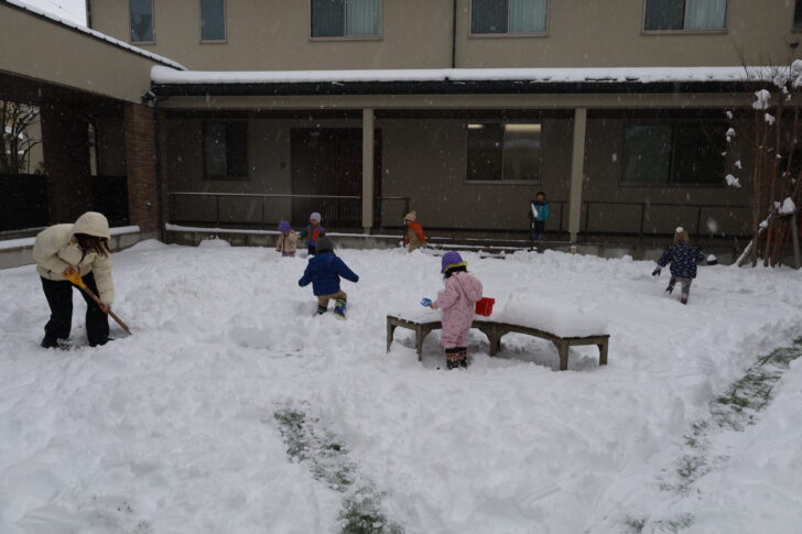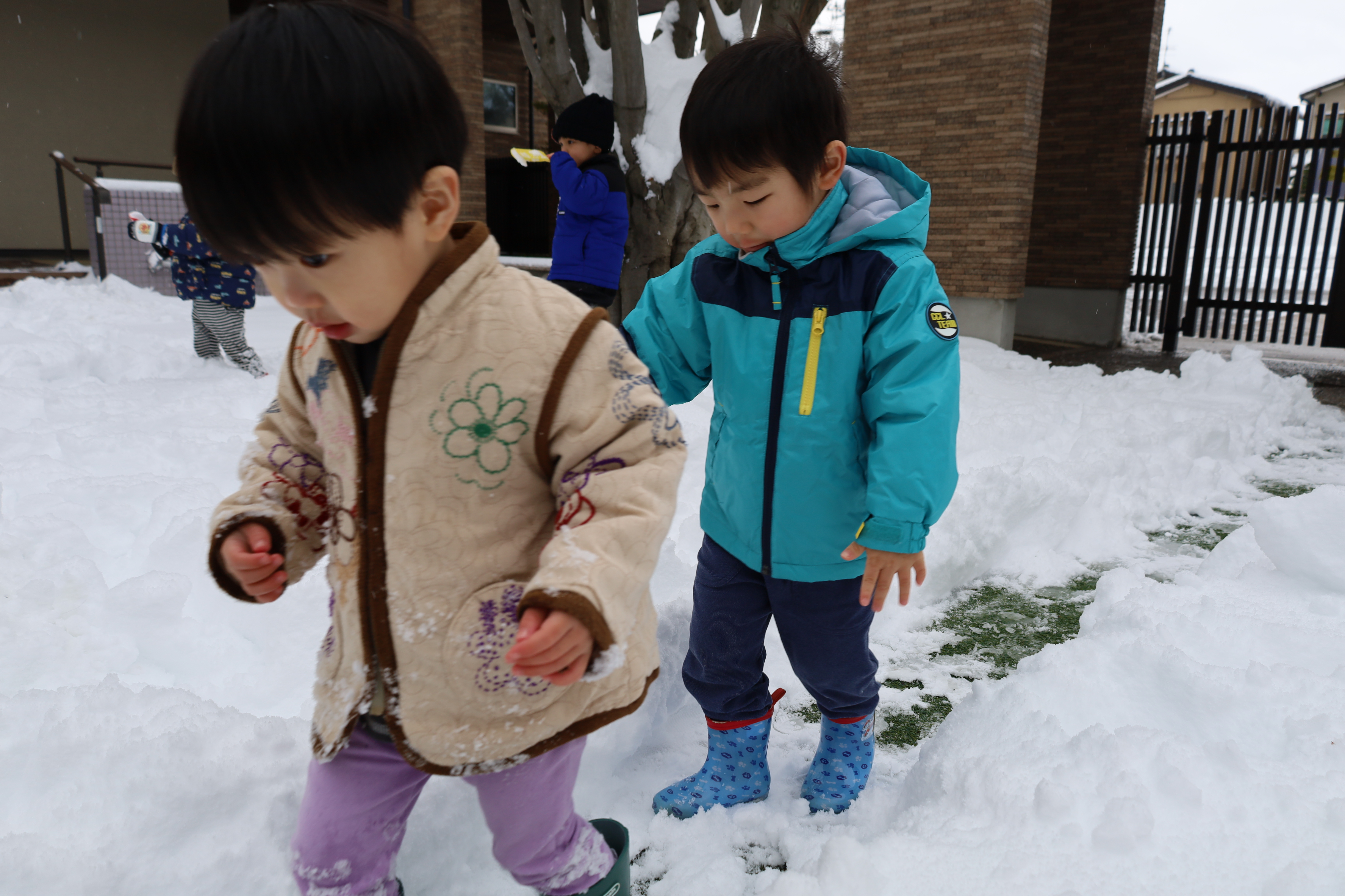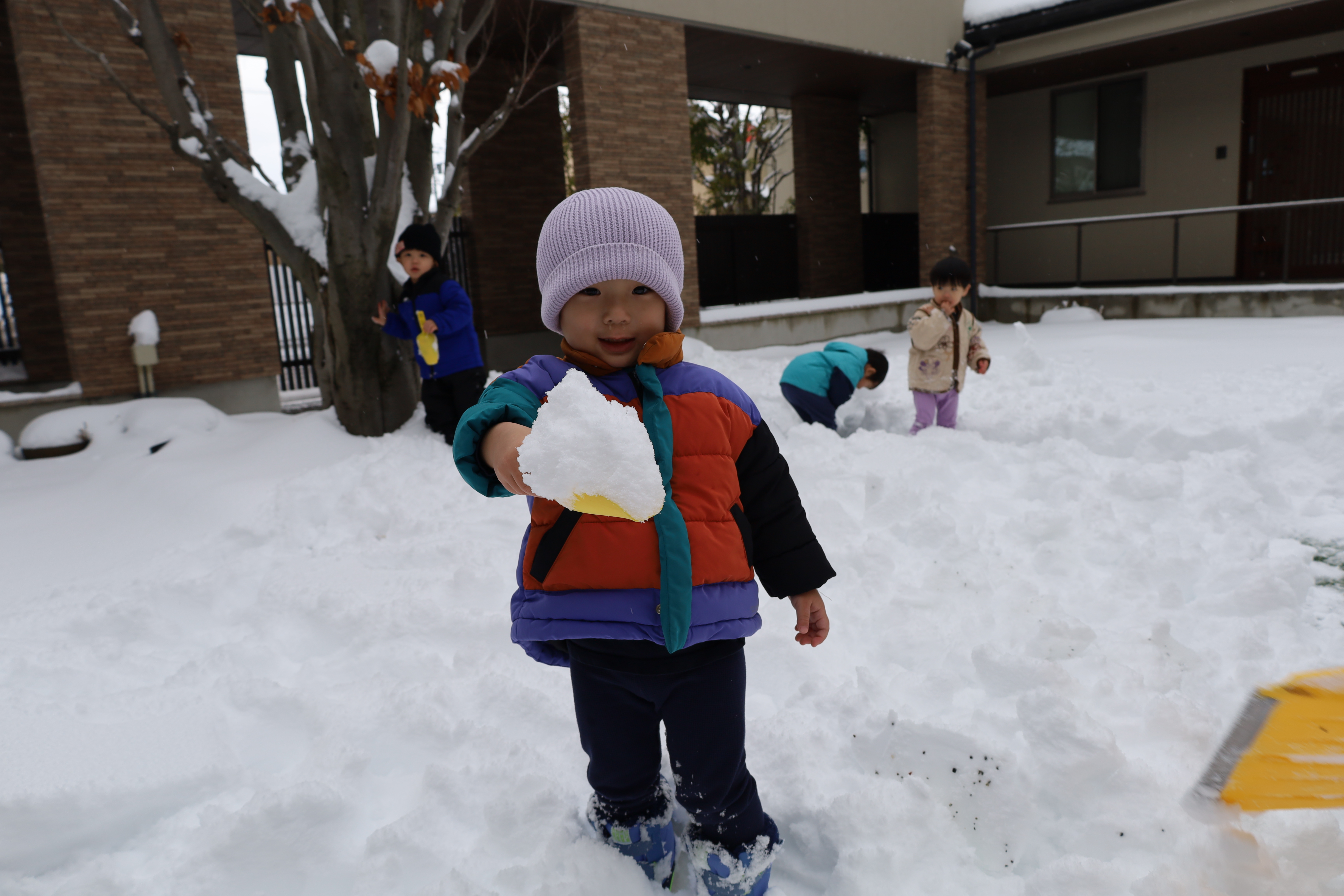 朝からの積雪にワクワクして登園してきたみのりぐみさんたち。