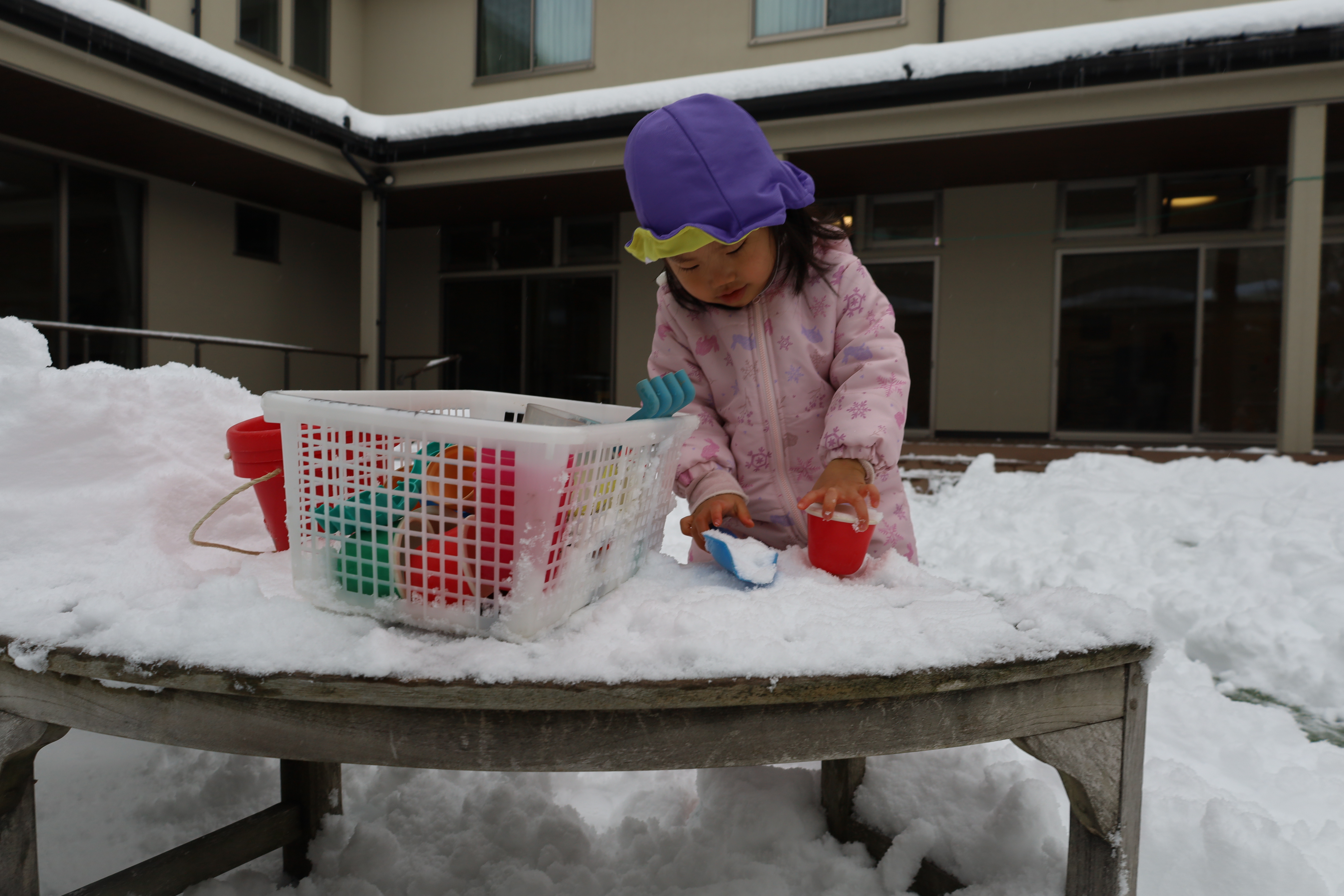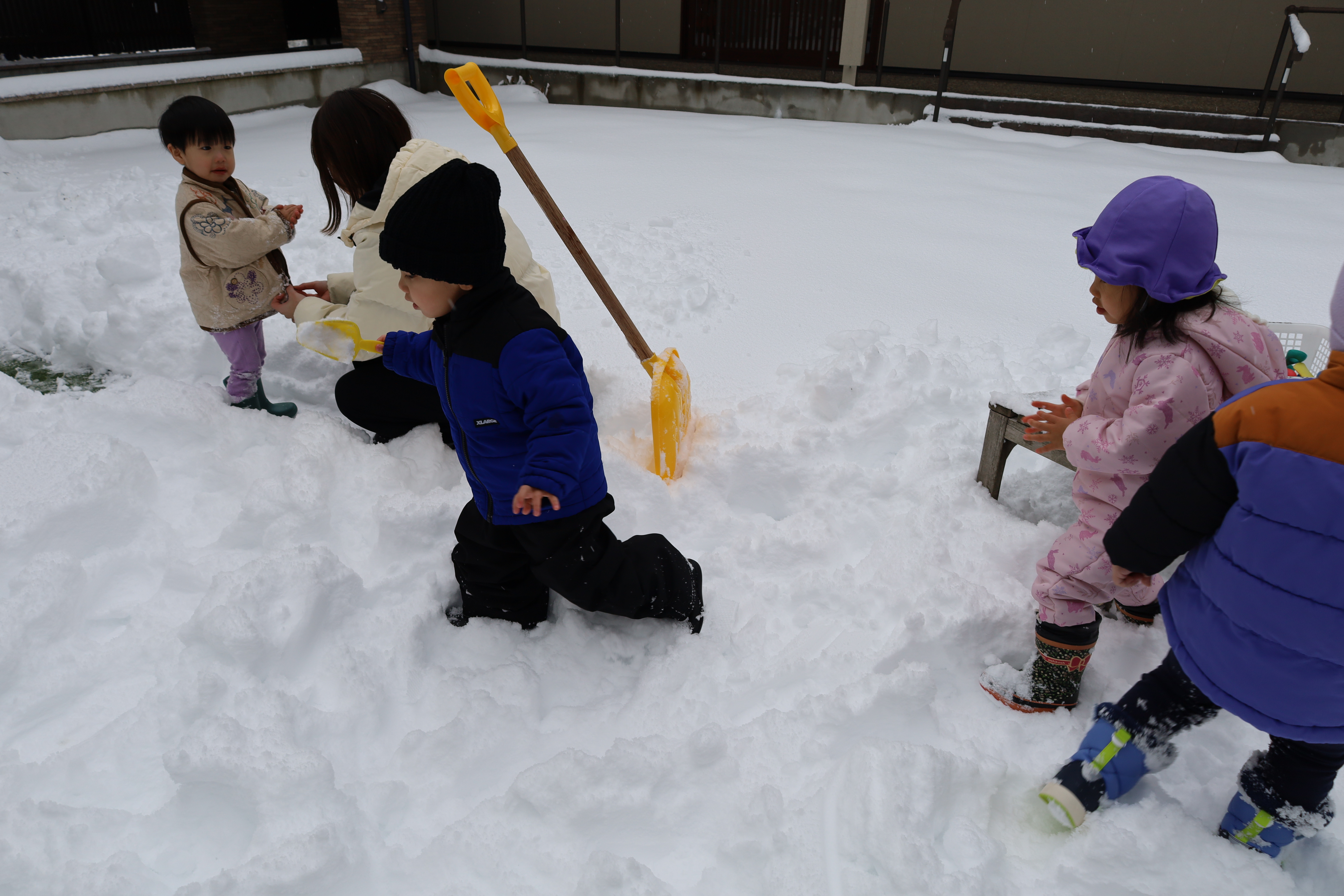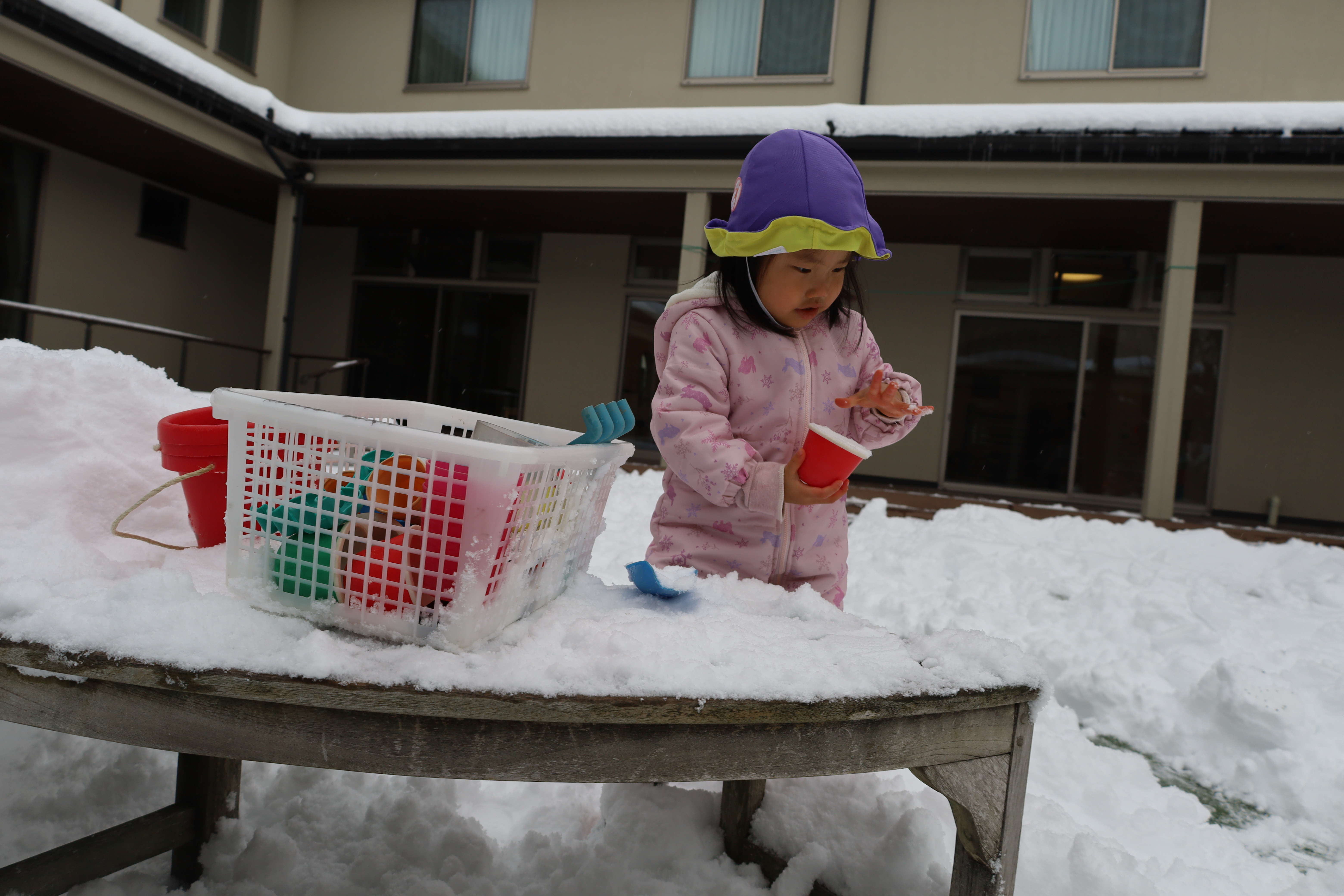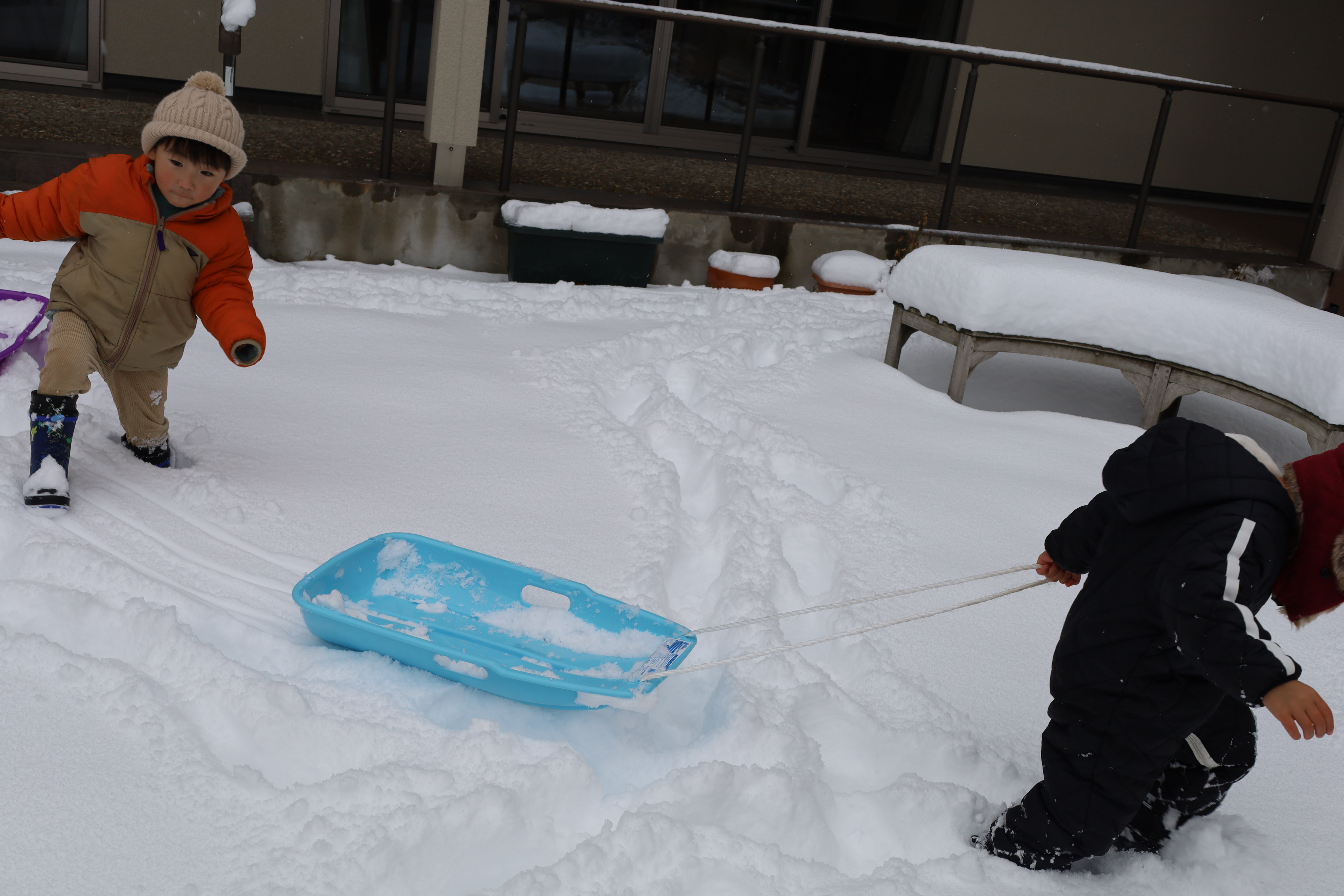 朝からの積雪にワクワクして登園してきたみのりぐみさんたち。