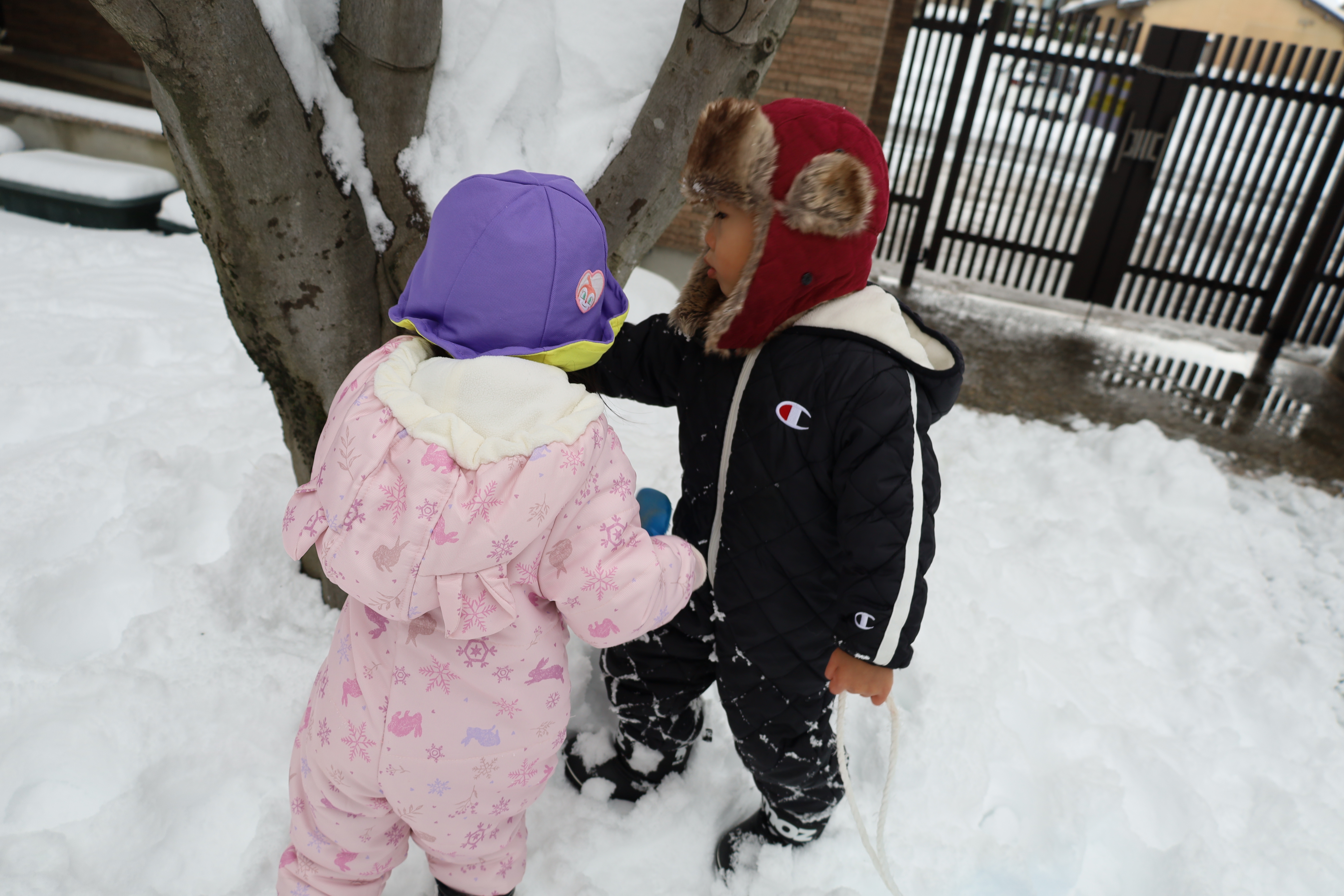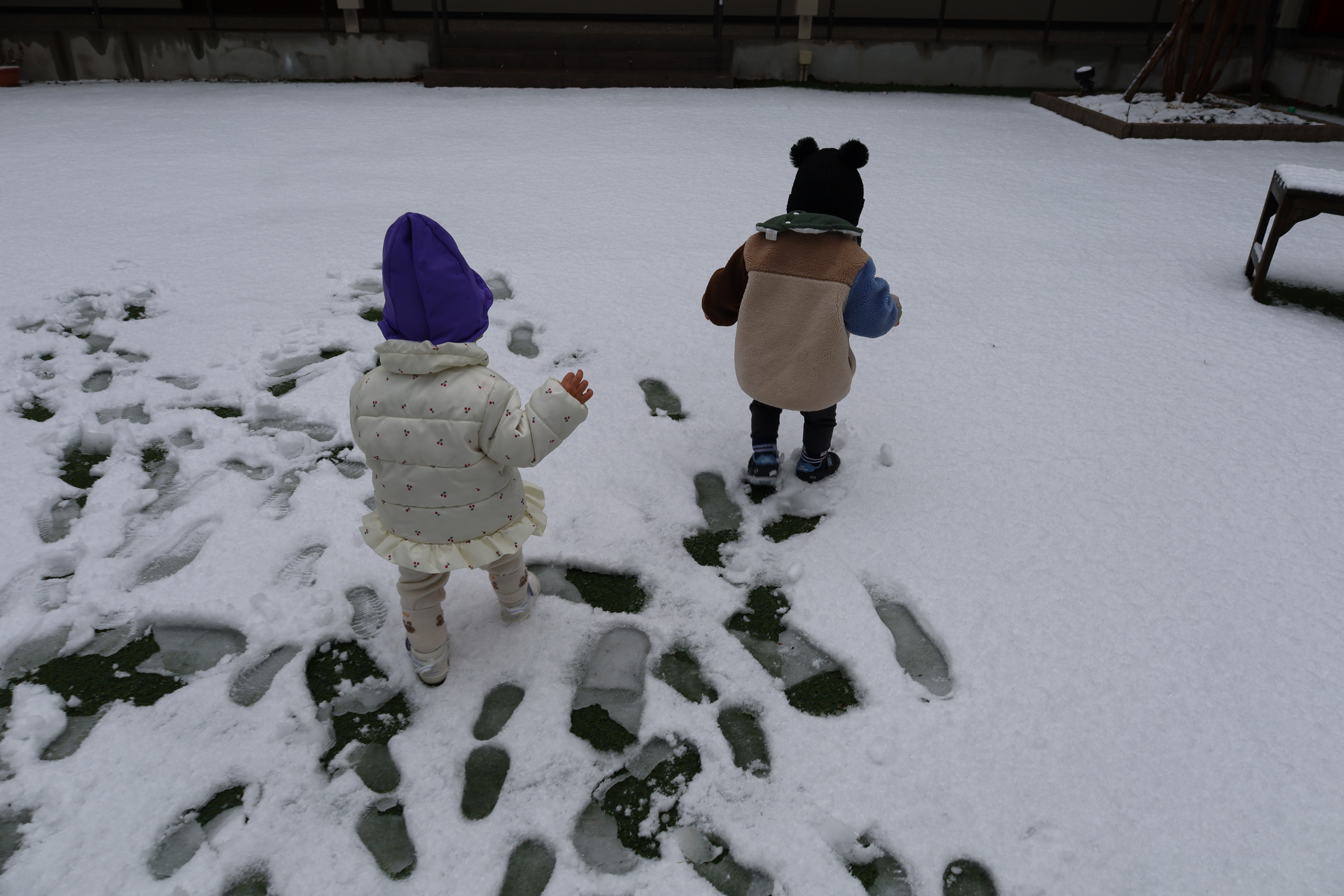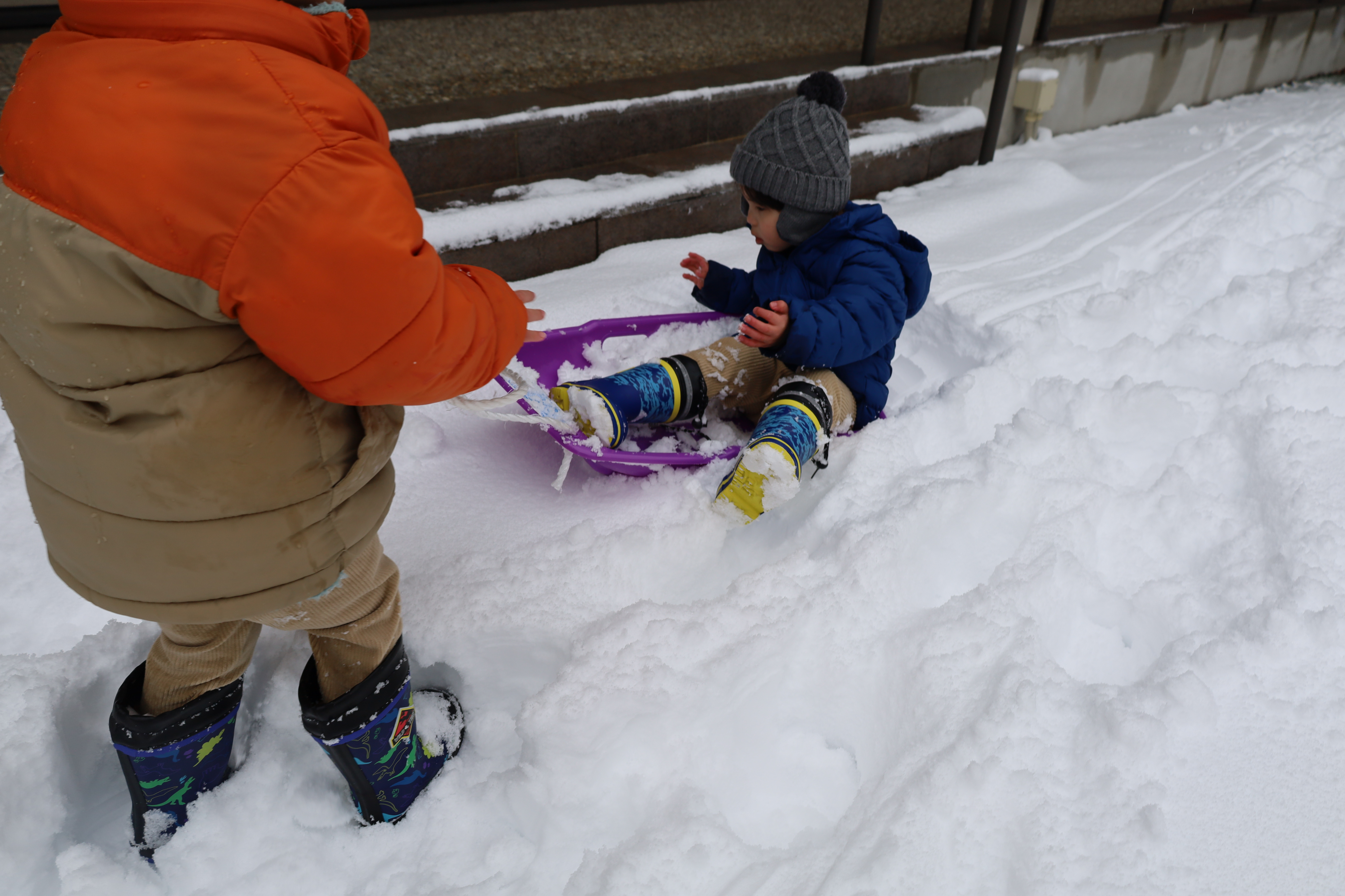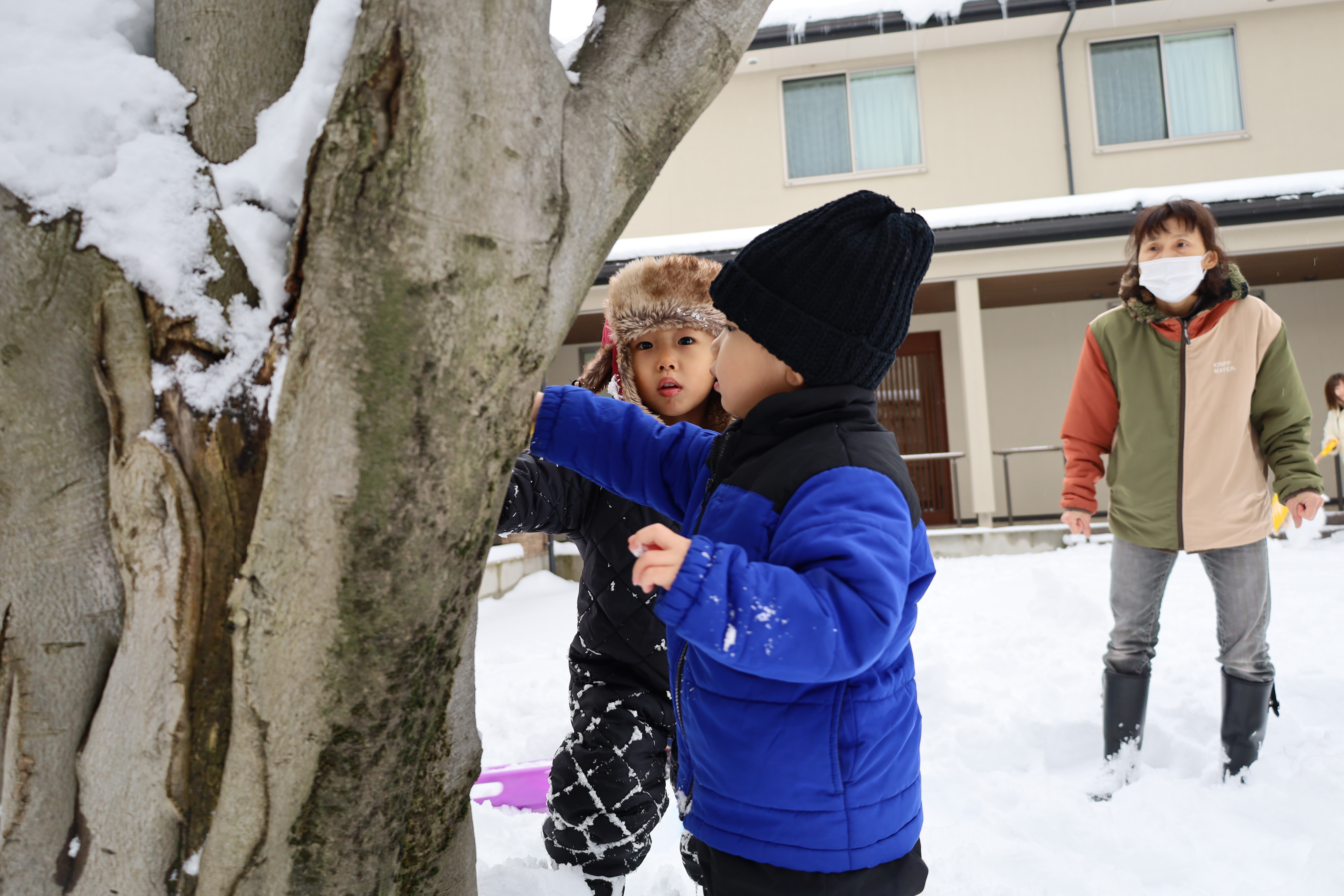 朝からの積雪にワクワクして登園してきたみのりぐみさんたち。
