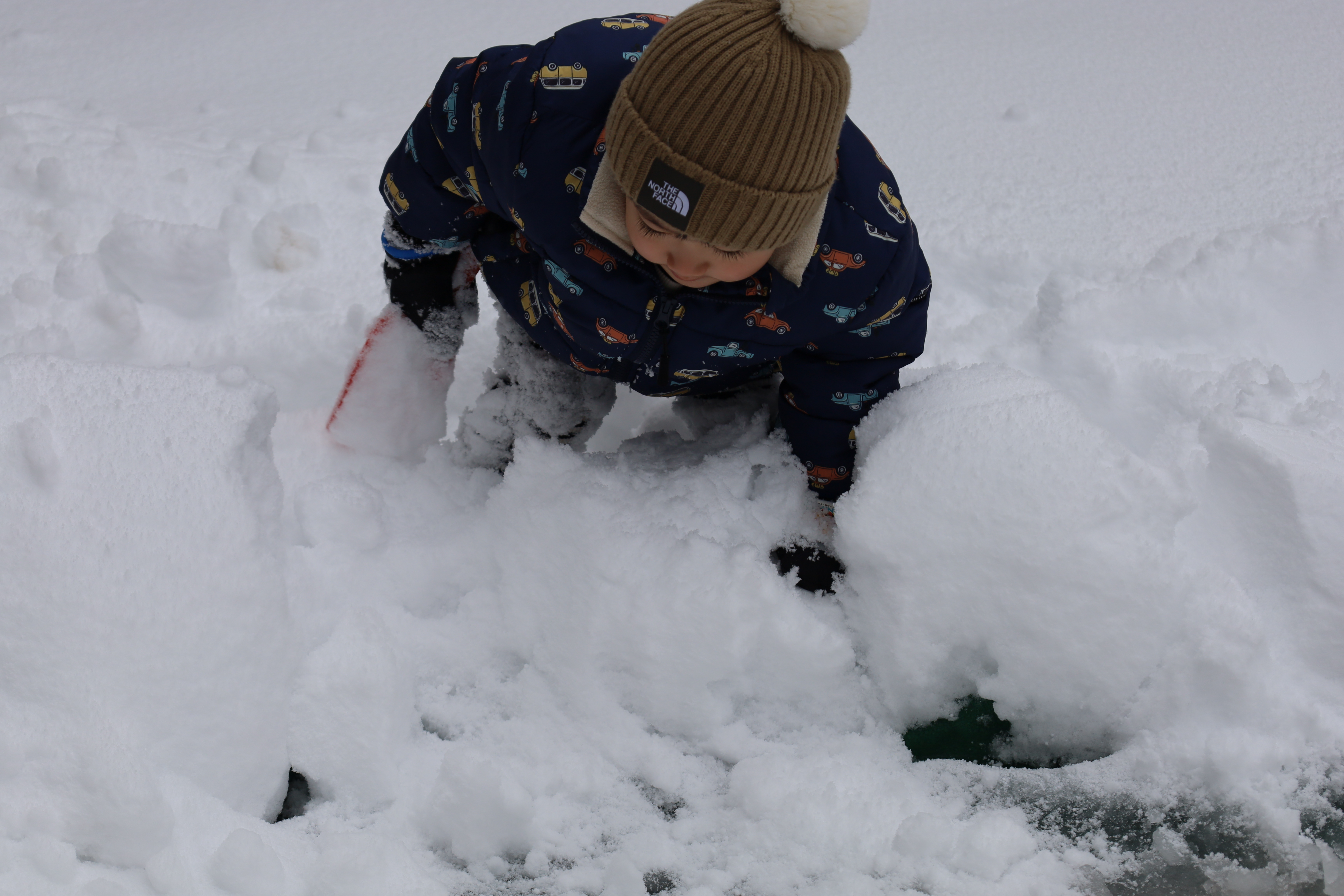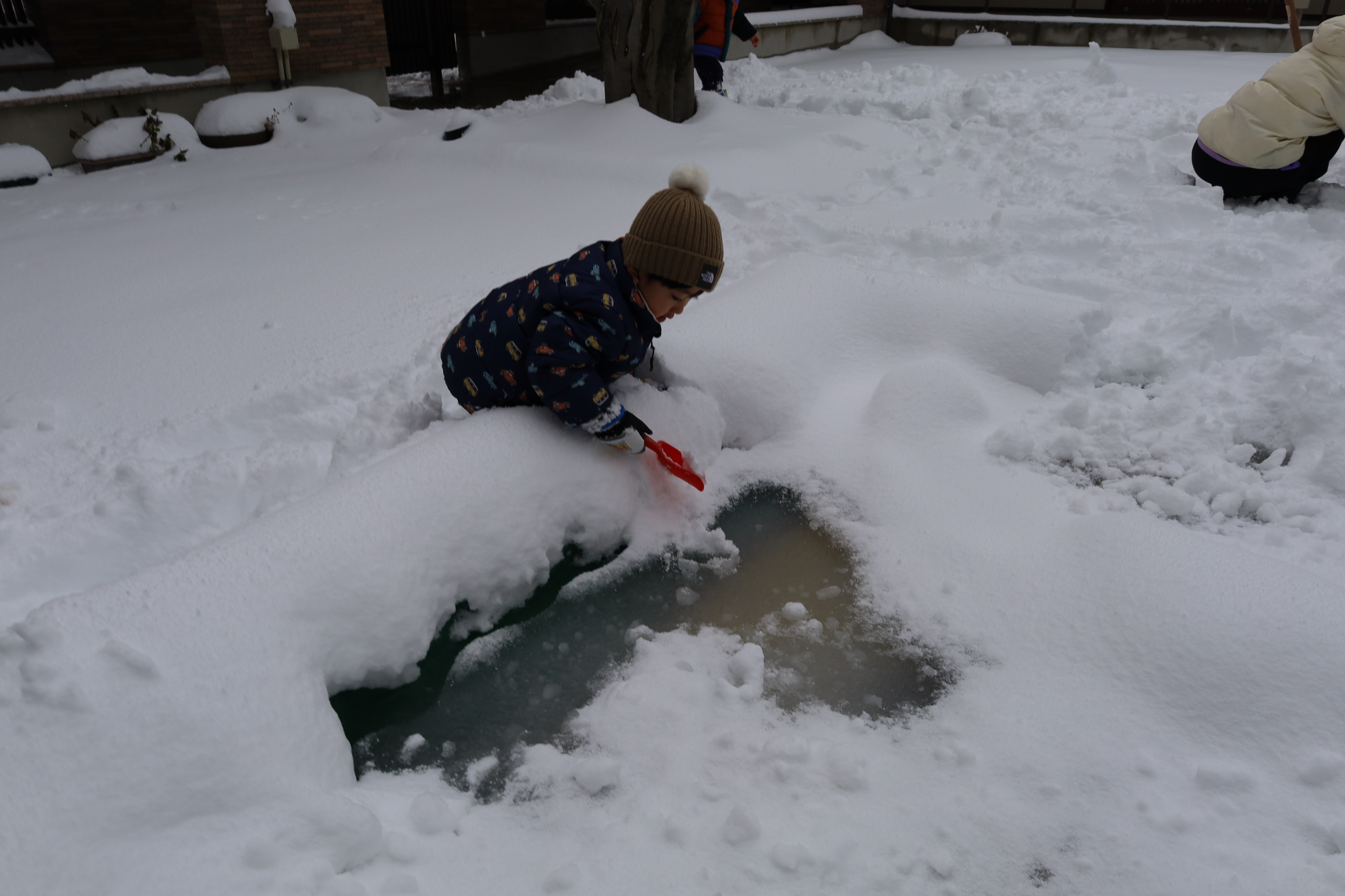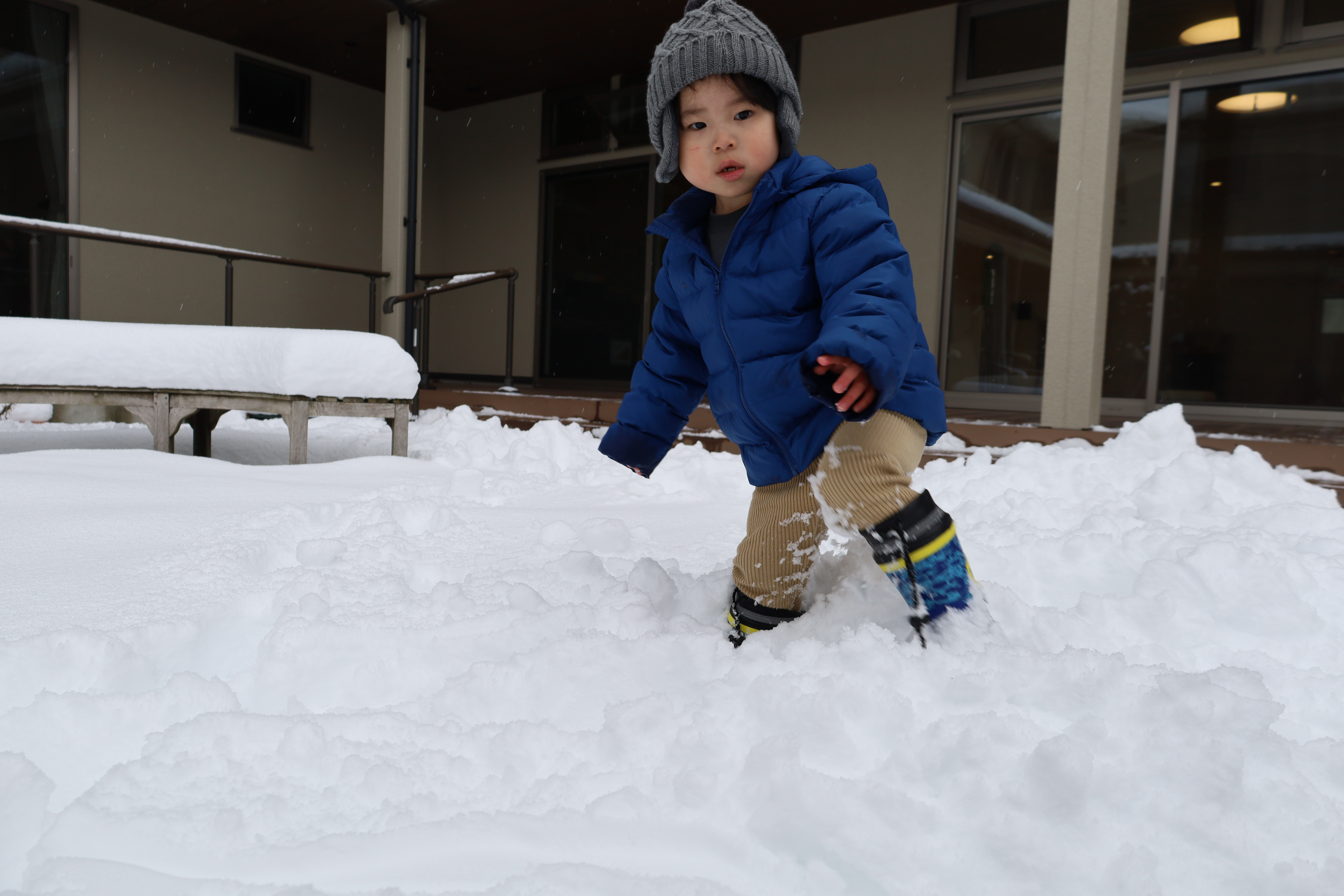 子どもの長靴が埋まるほどに(20㎝ほど)ふかふかの雪!