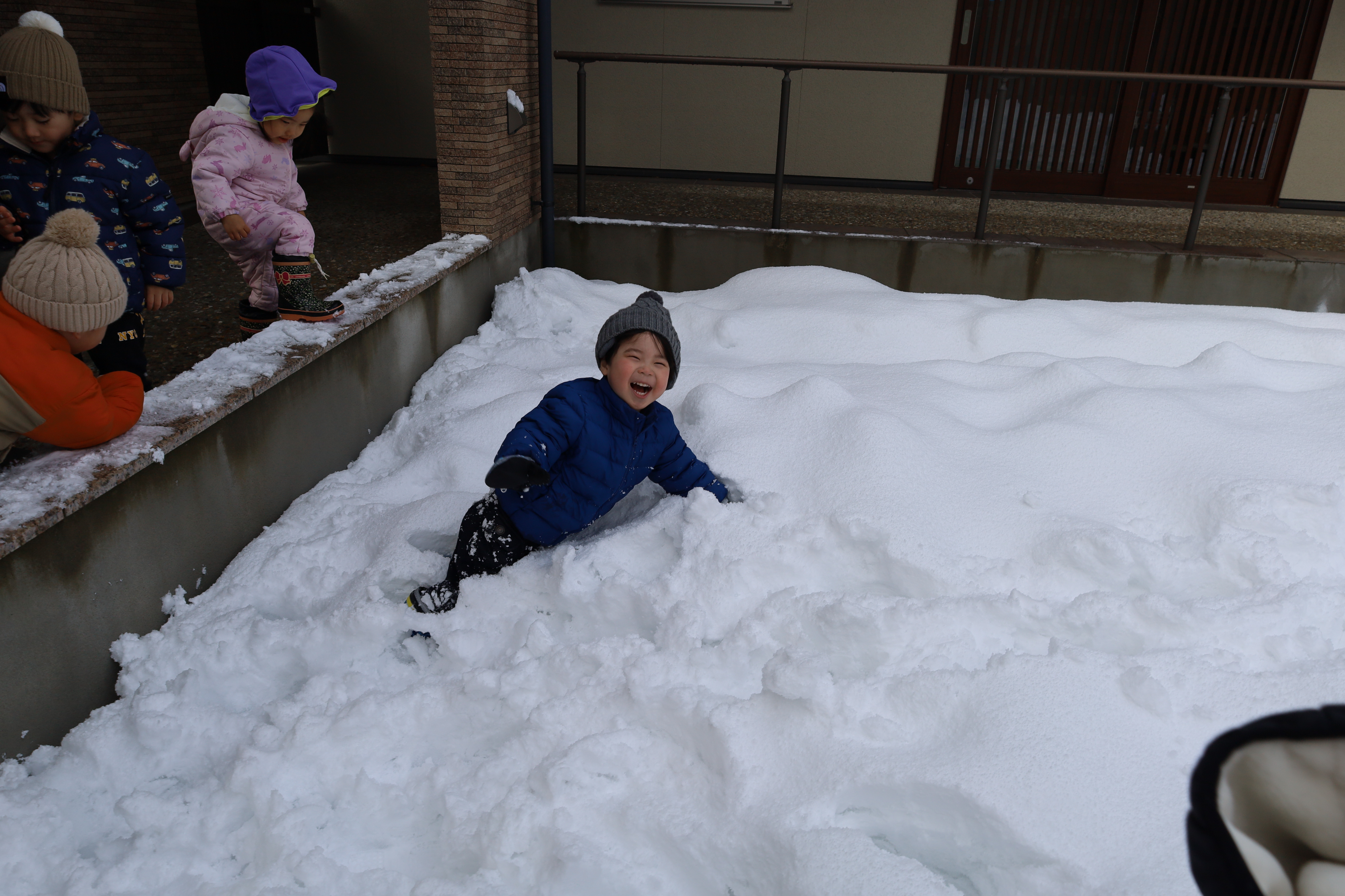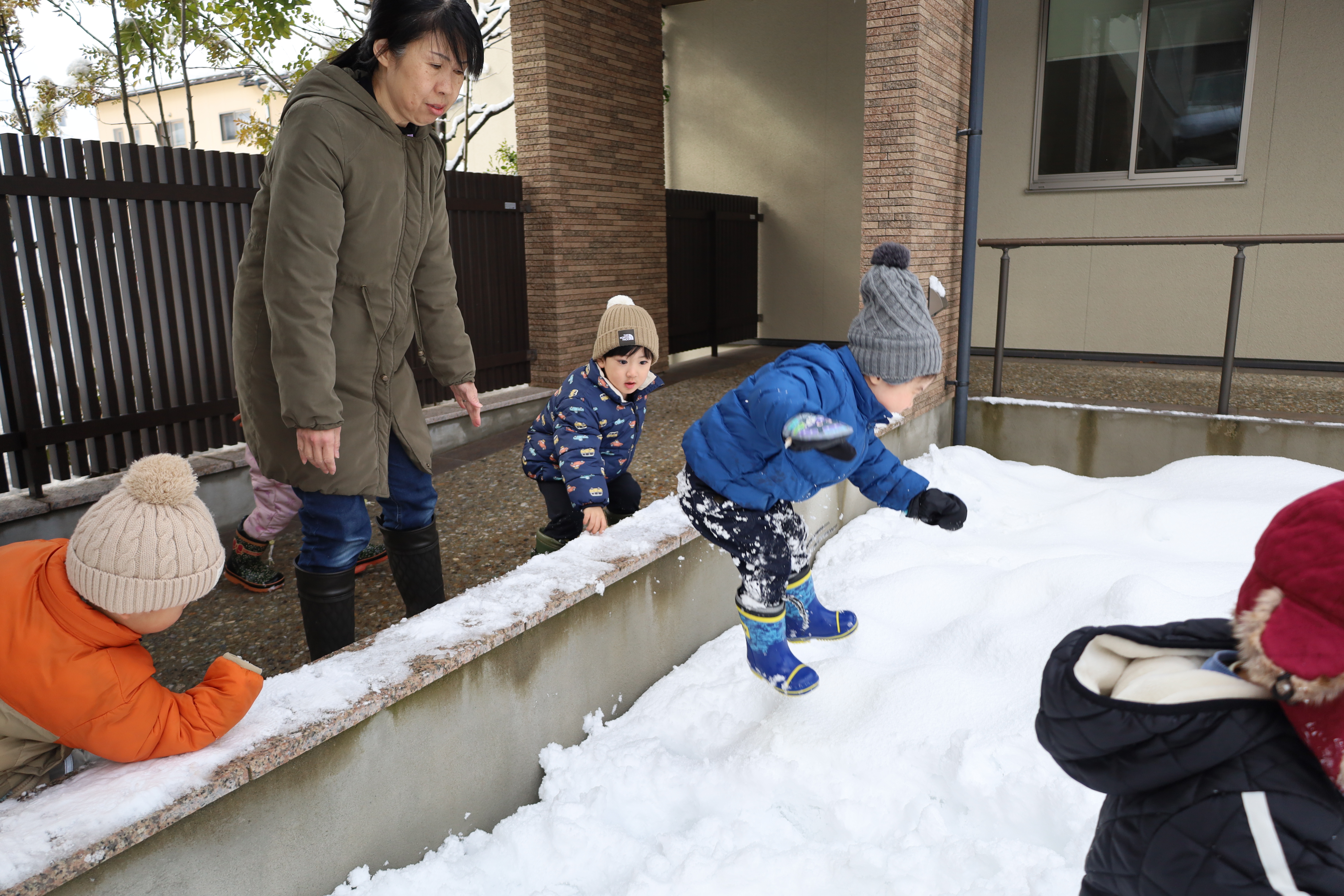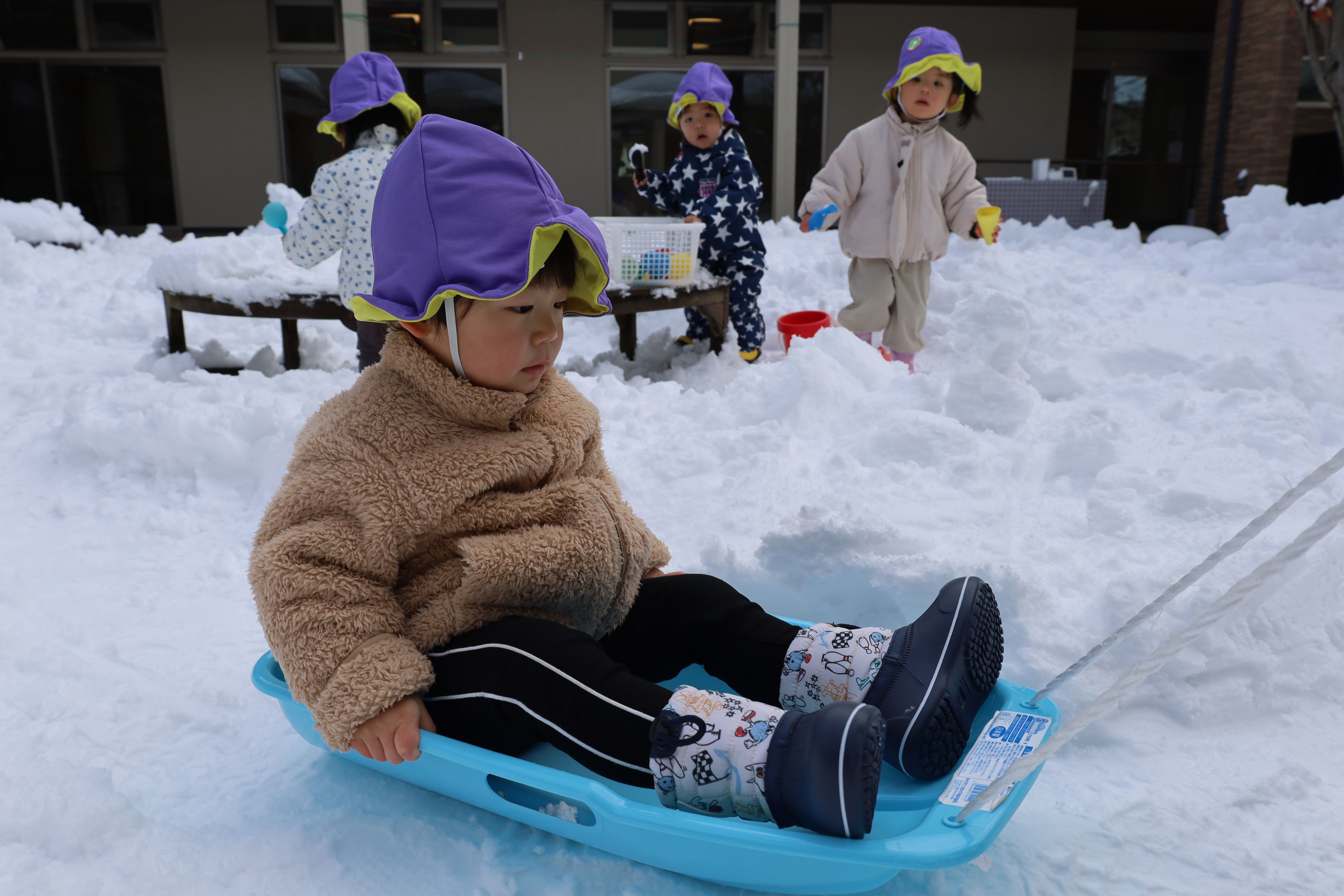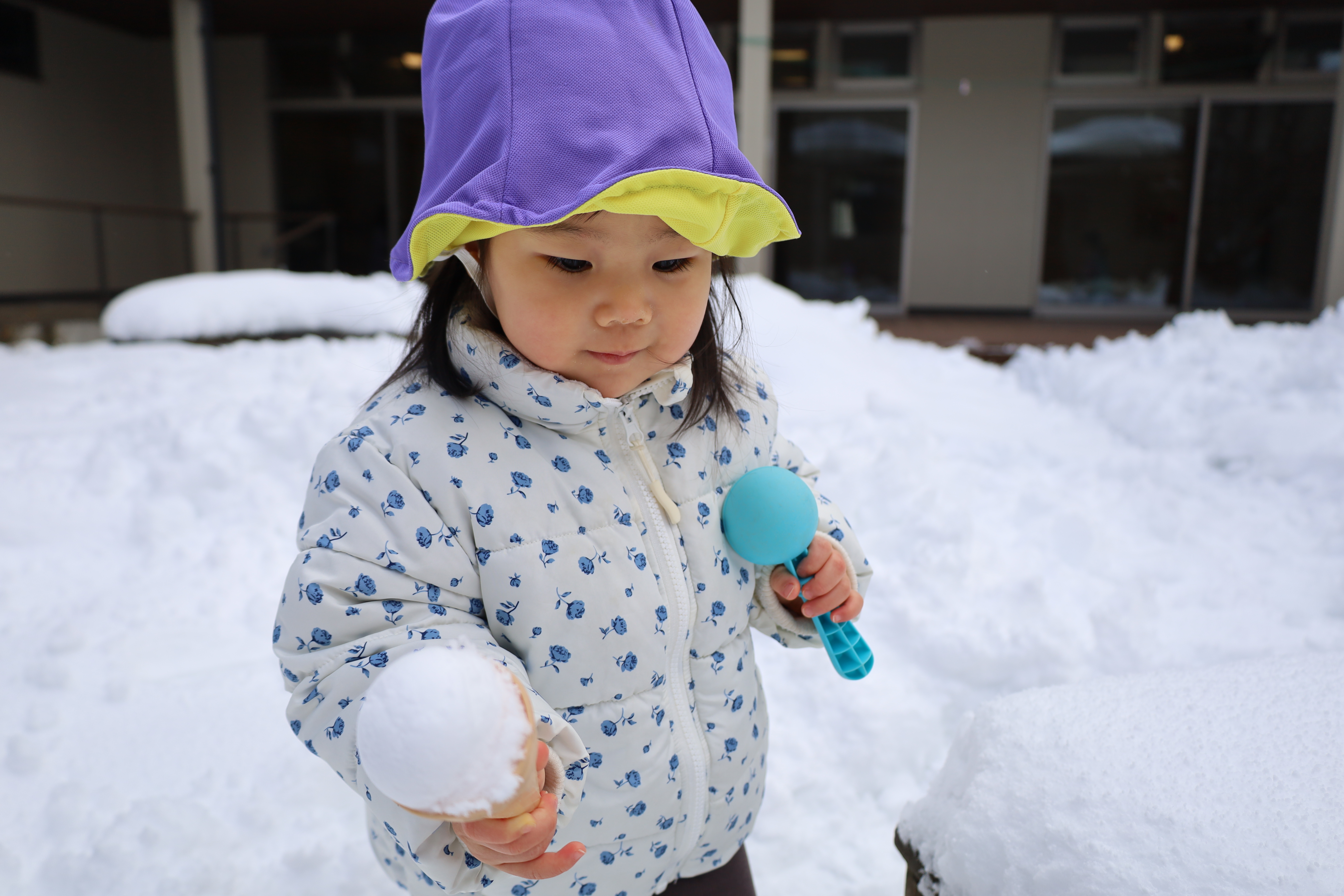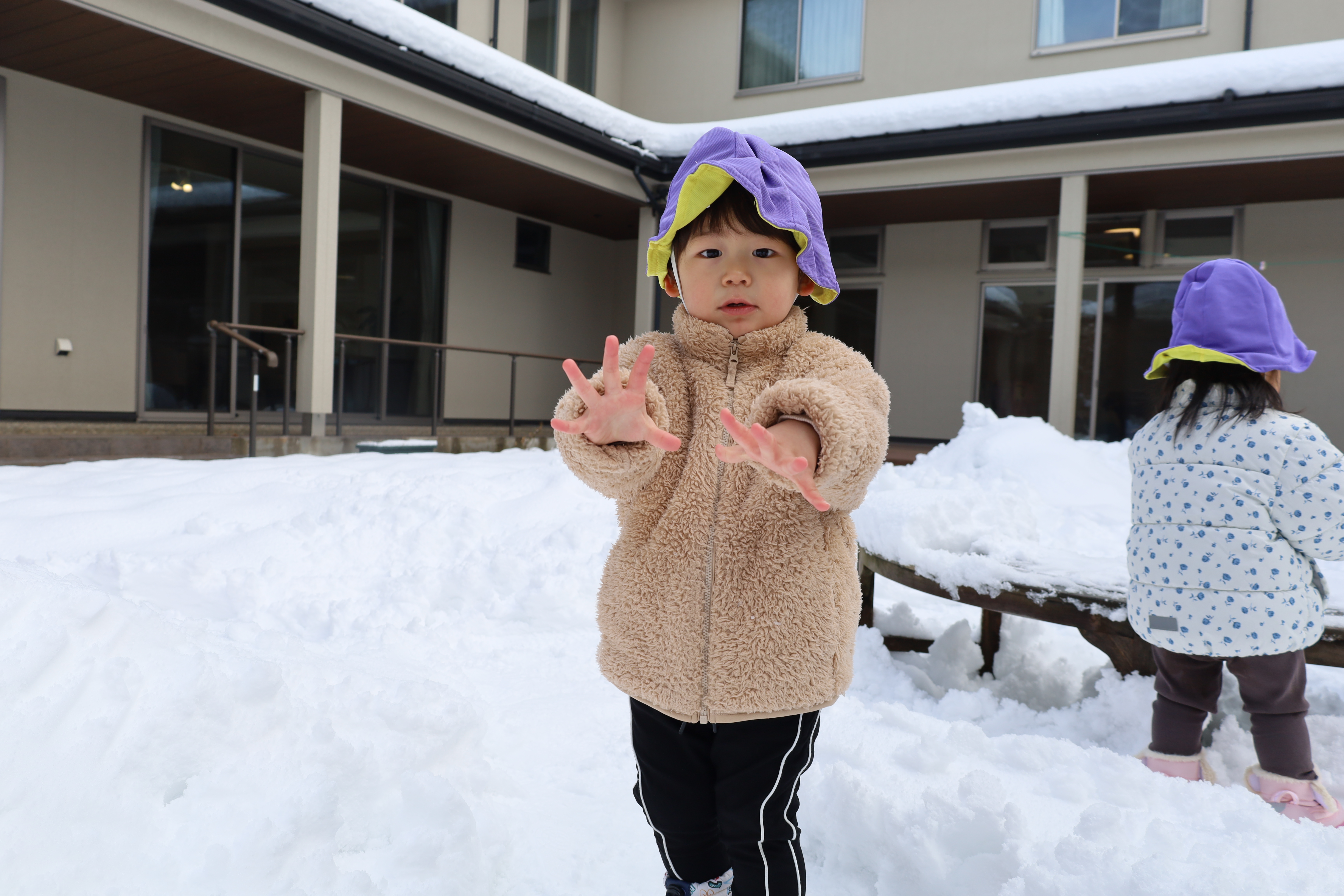 2026.01.30 はなえみhoujikai 2026/1/30 ゆきあそびあれこれ ツイート シェア はてブ 送る Pocket 園庭いっぱいに雪がつもりました。 「きょう、ゆきあそびする?」といいながら登園してくる子も増えてきました。 はなたね 尻もちついたって、 雪のおままごとはたのしいよ。 どうやって、行こうか思案中。 雪にすっぽりはまっちゃった・・・・。 よいしょっと!! 雪ってしろいね! つめたいね。 ソリで雪のドライブ! スピード上げてね! みのり 雪あそびが大好きなみのりぐみさんたち。 雪の探検隊。 雪に向かって、 思いっきり ジャ~ンプ!! 痛くないよ!面白い!! ハマっても自分で抜け出して・・・ 寝っ転がっちゃう!! 引っ張ってあげる。 よろしくね。 そりあそび。 山をソリで下って・・・・ おもいきり雪遊びを楽しんでいます。 1月30日 今日の給食 離乳食・後期 かゆ・鶏肉のとろとろトマト煮・小松菜サラダ・味噌汁 幼児食 鉄分強化!ふりかけご飯・鶏肉の照りボール・マカロニツナサラダ・味噌汁(かぶ・油揚げ) 幼児食・午後おやつ 牛乳・切干大根の和風米粉チヂミ