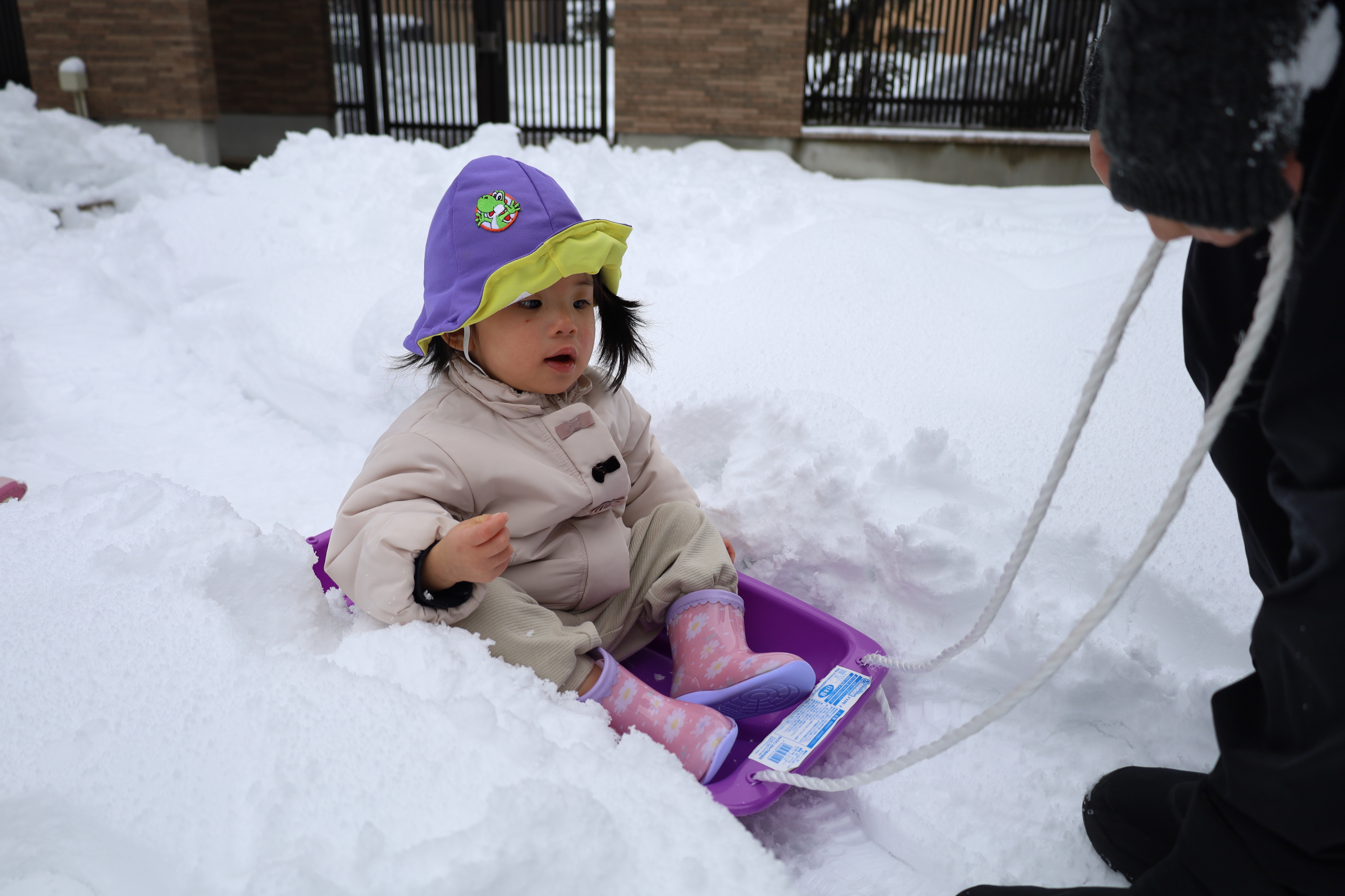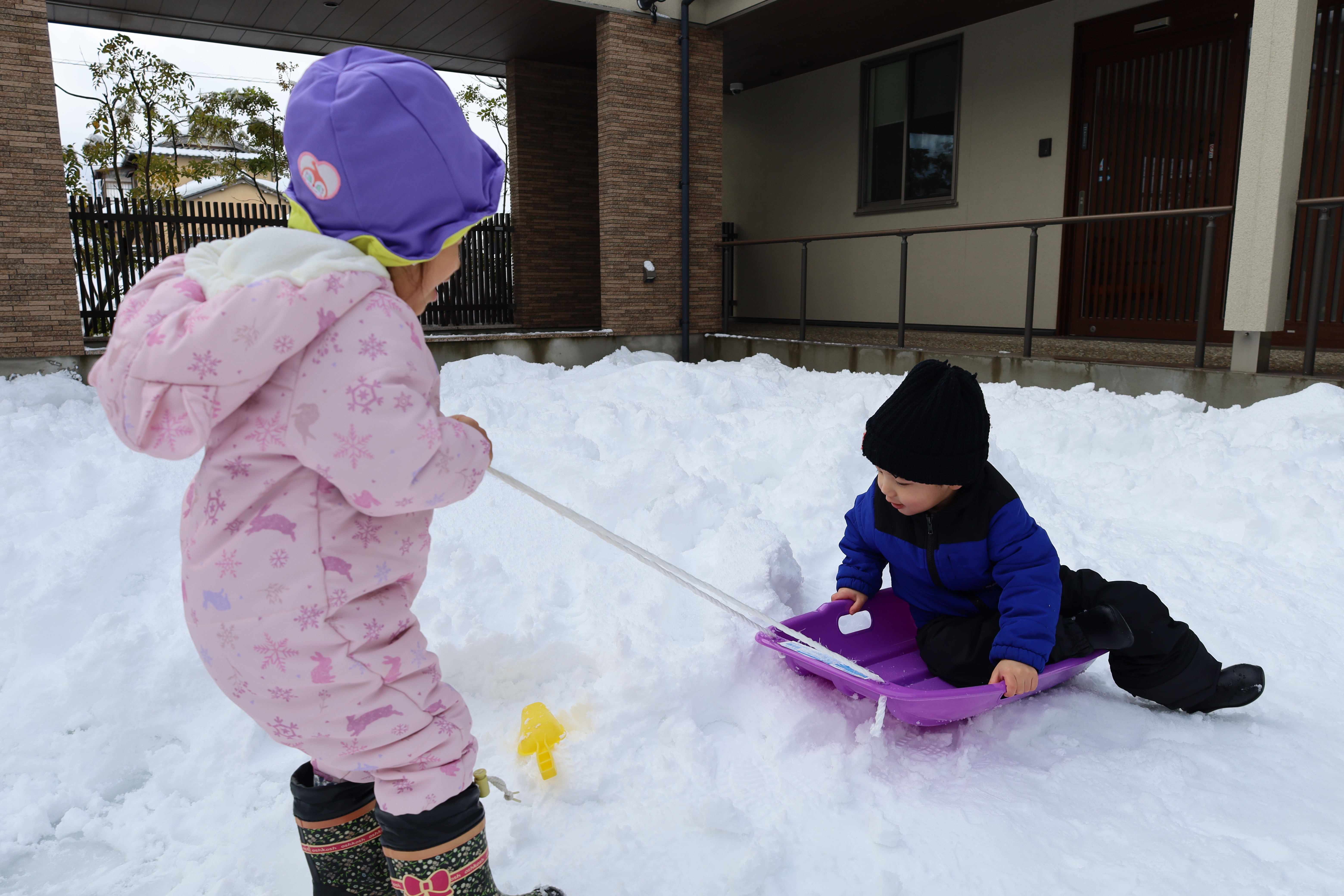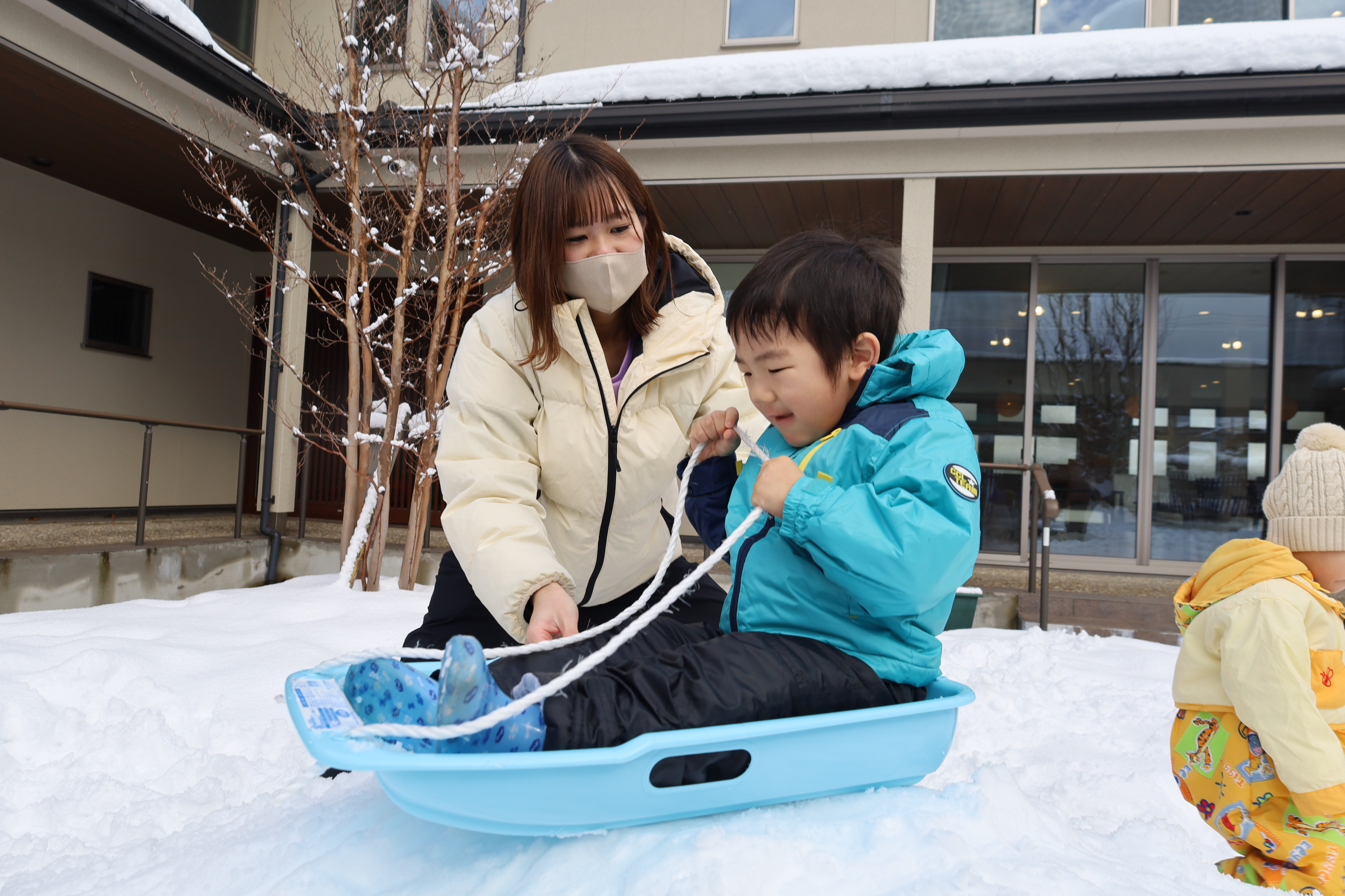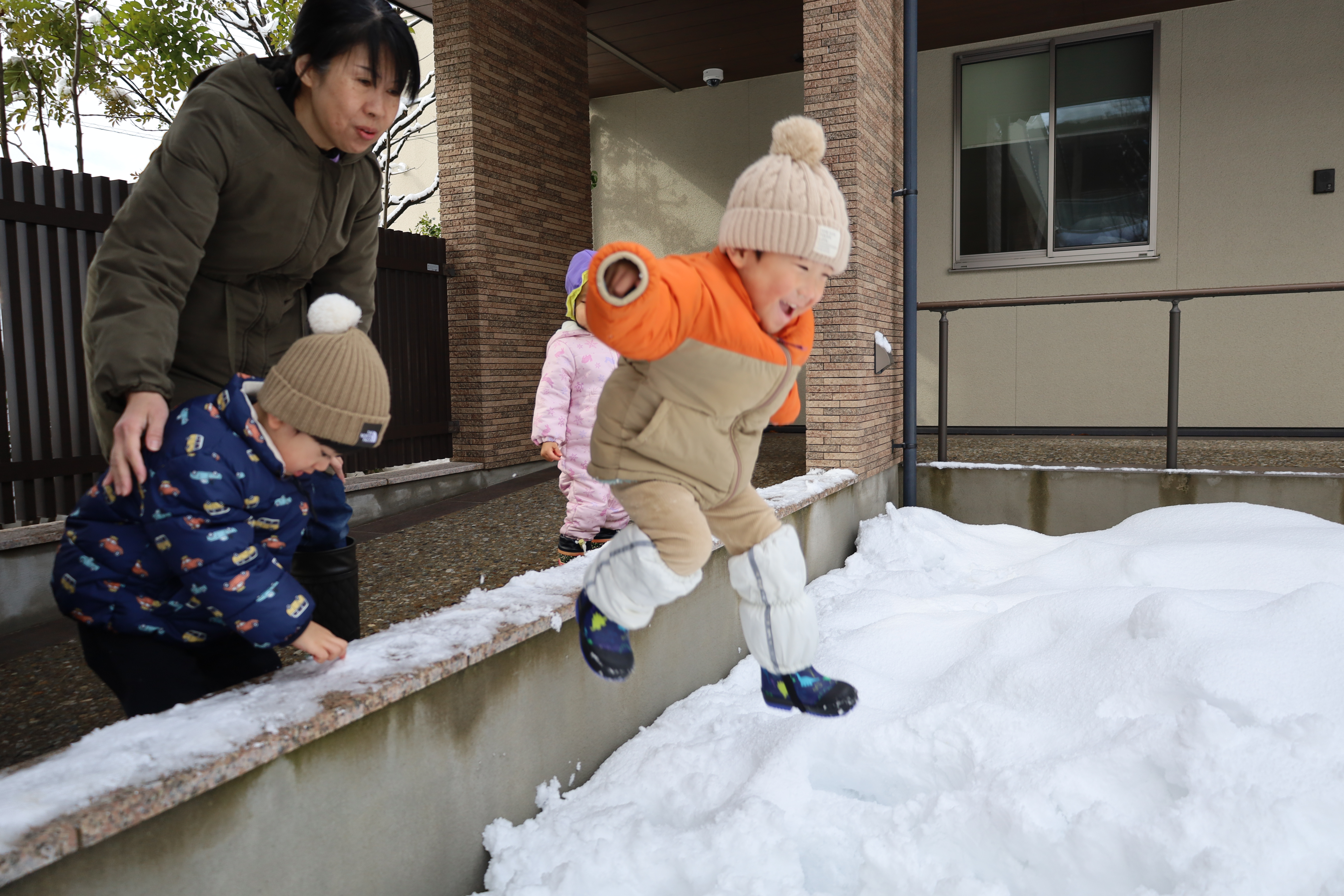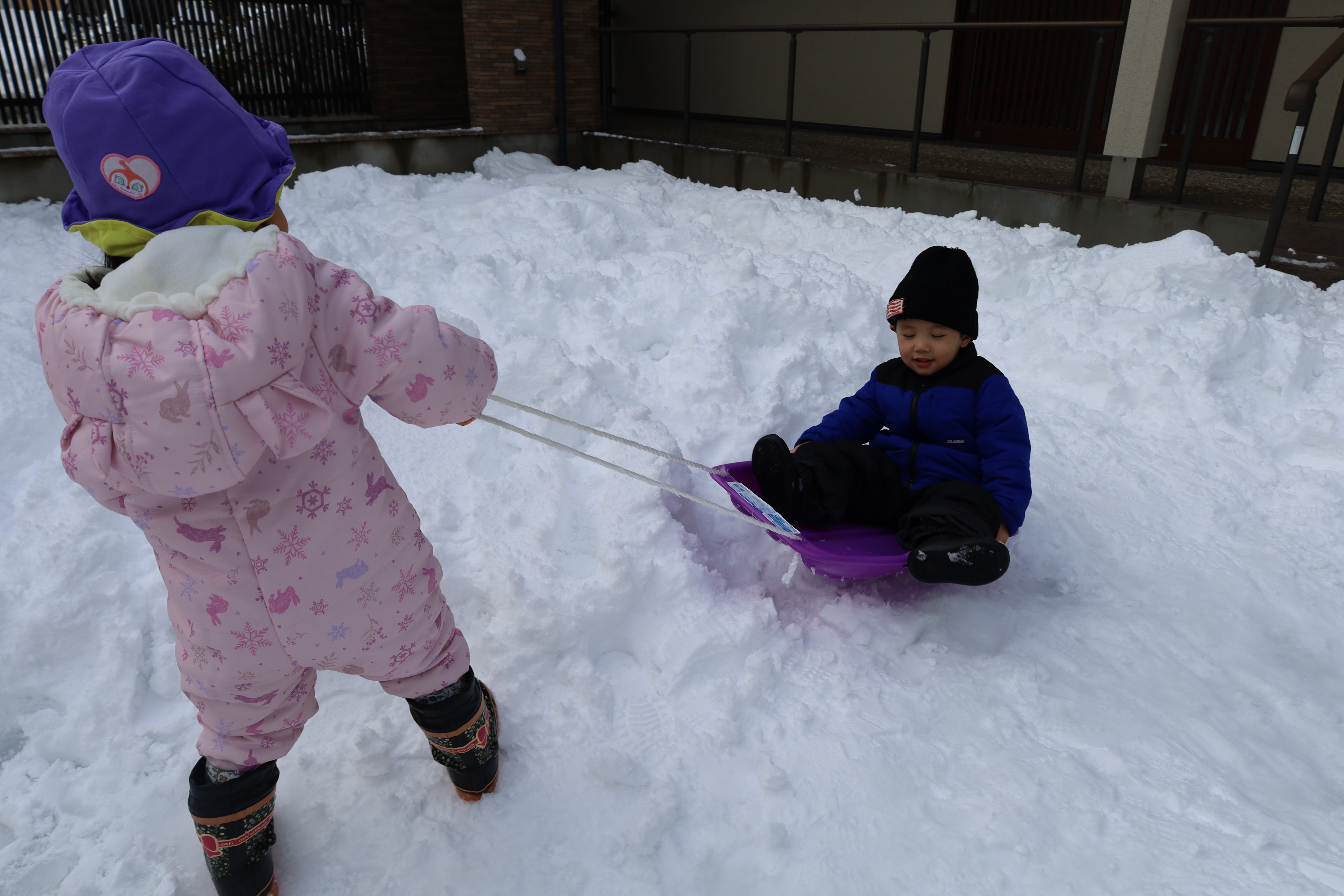 2026.01.30 はなえみhoujikai 2026/1/30 ゆきあそびあれこれ ツイート シェア はてブ 送る Pocket 園庭いっぱいに雪がつもりました。 「きょう、ゆきあそびする?」といいながら登園してくる子も増えてきました。 はなたね 尻もちついたって、 雪のおままごとはたのしいよ。 どうやって、行こうか思案中。 雪にすっぽりはまっちゃった・・・・。 よいしょっと!! 雪ってしろいね! つめたいね。 ソリで雪のドライブ! スピード上げてね! みのり 雪あそびが大好きなみのりぐみさんたち。 雪の探検隊。 雪に向かって、 思いっきり ジャ~ンプ!! 痛くないよ!面白い!! ハマっても自分で抜け出して・・・ 寝っ転がっちゃう!! 引っ張ってあげる。 よろしくね。 そりあそび。 山をソリで下って・・・・ おもいきり雪遊びを楽しんでいます。 1月30日 今日の給食 離乳食・後期 かゆ・鶏肉のとろとろトマト煮・小松菜サラダ・味噌汁 幼児食 鉄分強化!ふりかけご飯・鶏肉の照りボール・マカロニツナサラダ・味噌汁(かぶ・油揚げ) 幼児食・午後おやつ 牛乳・切干大根の和風米粉チヂミ