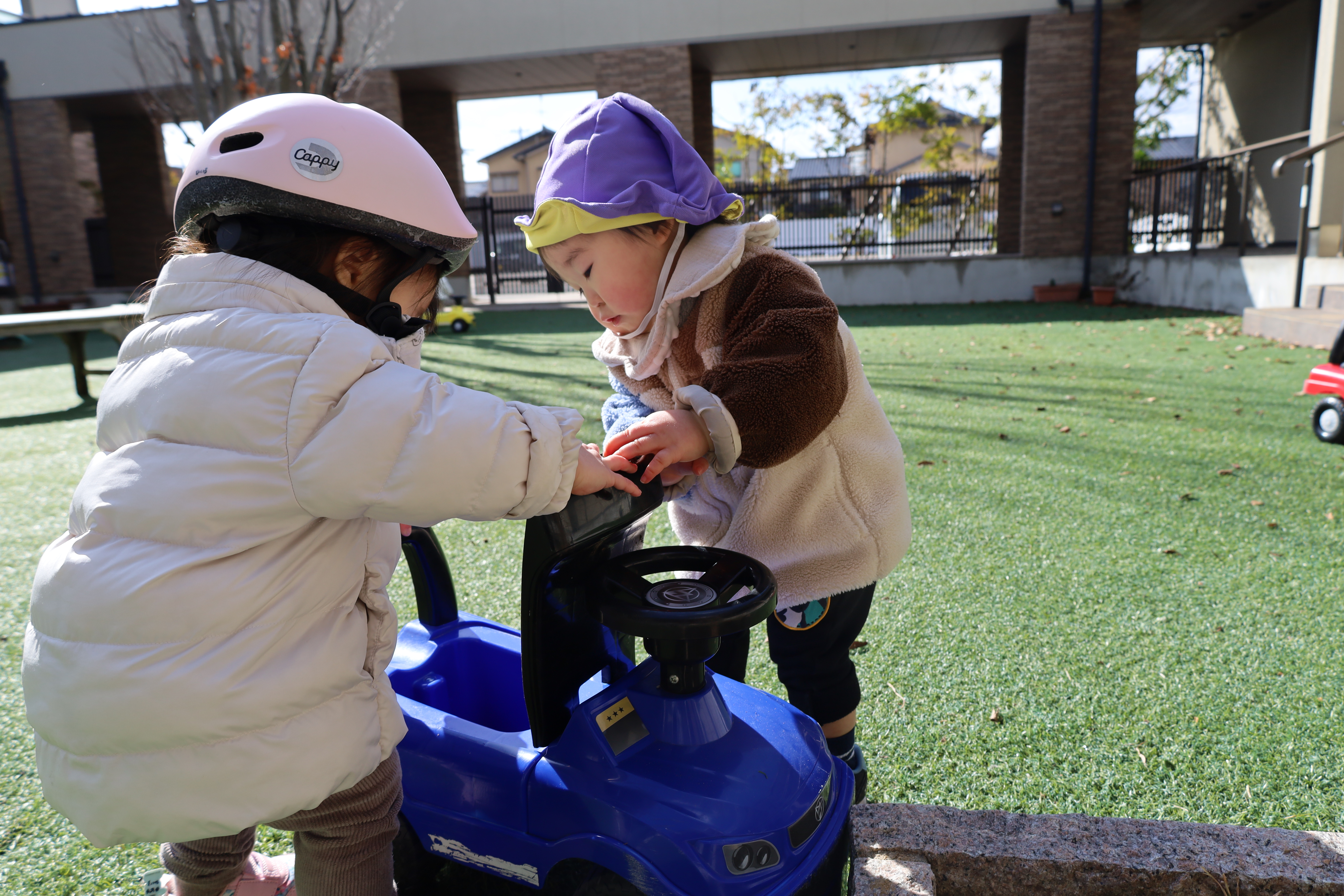 今朝は冷え込んで寒かったですが、お日さまが顔を出してきた園庭はポカポカいい気持ち。