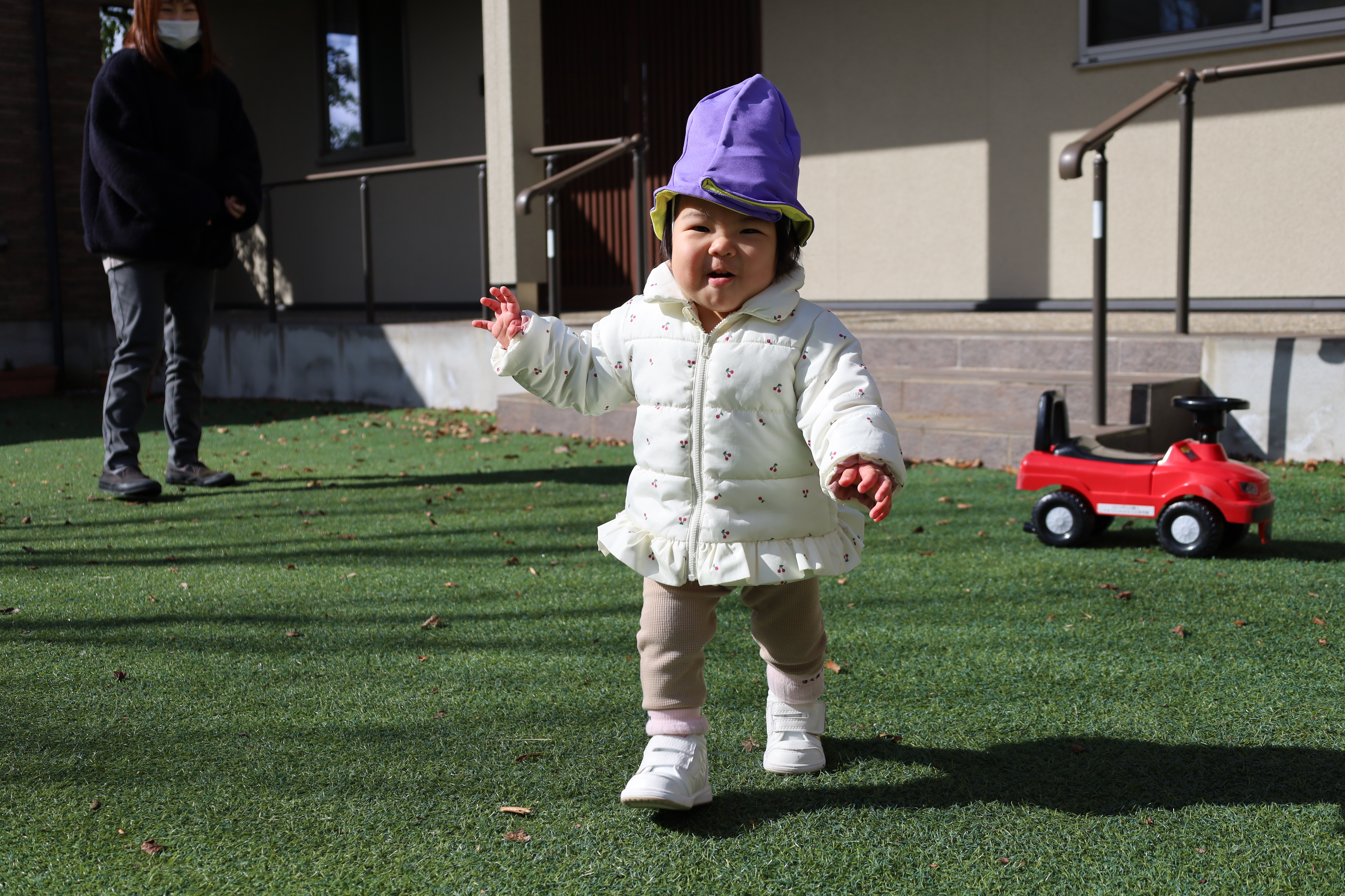 歩行もしっかりし、園庭の隅々まで歩いて、身体をぽっかぽかになったたねぐみさんでした。