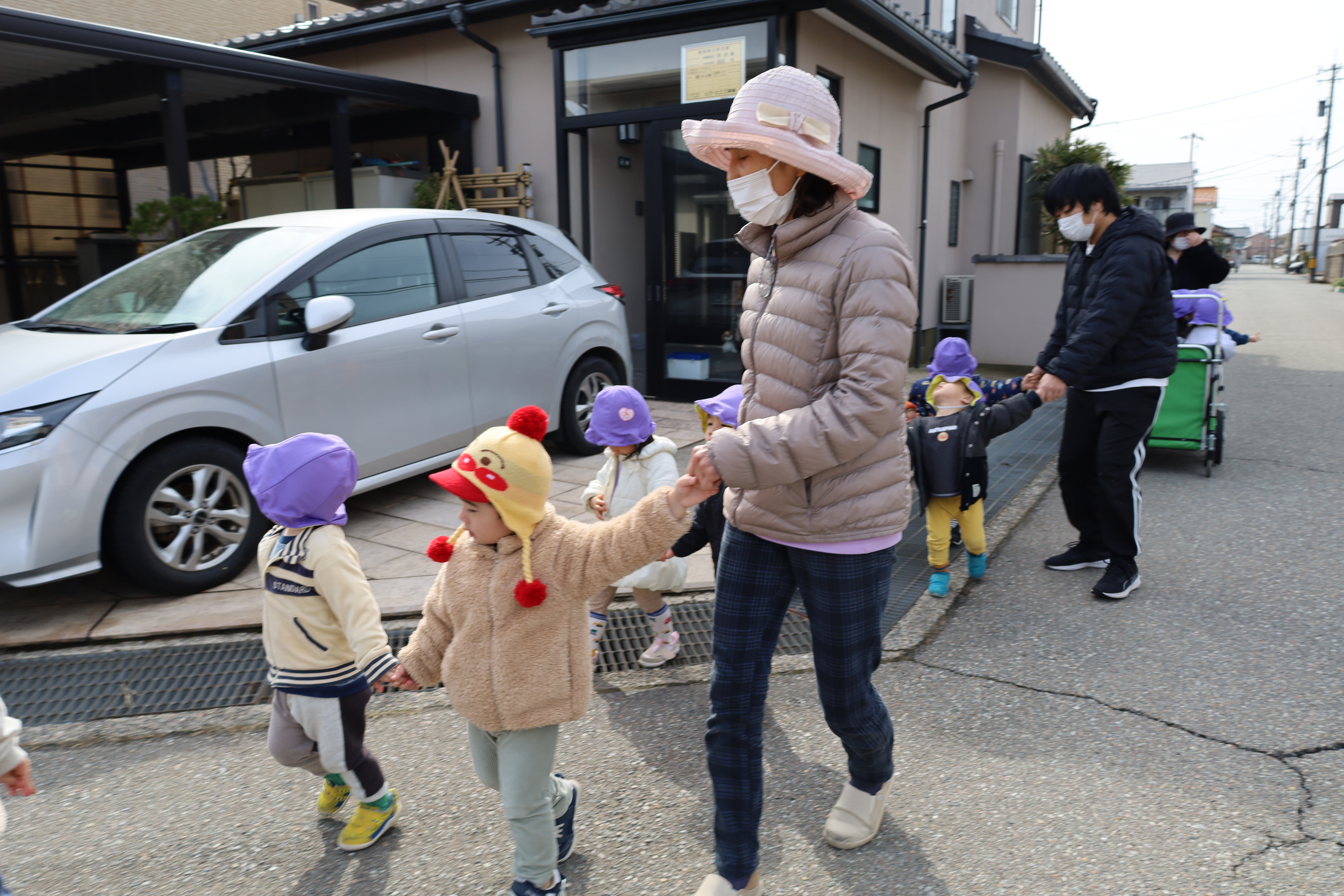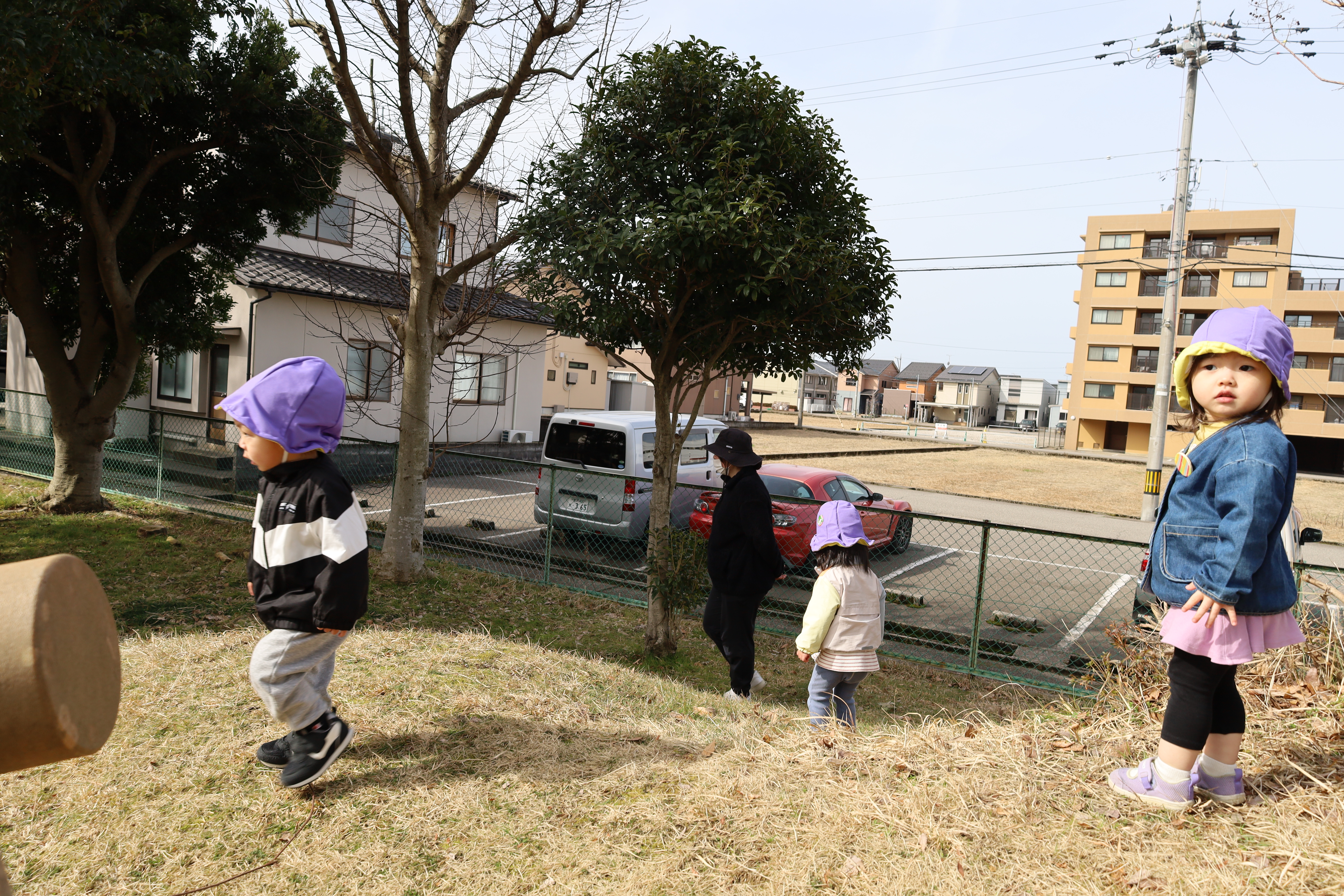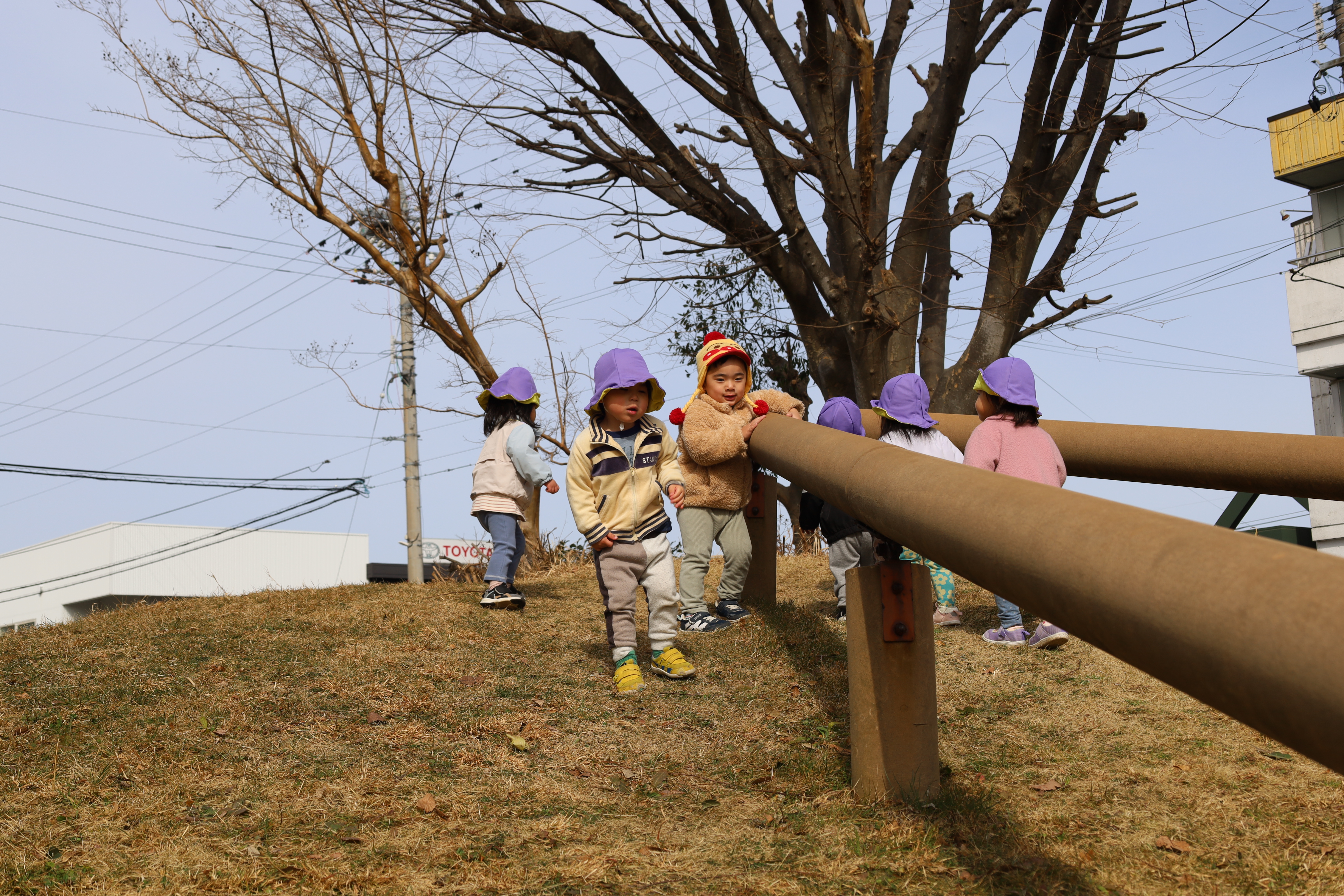 2026.02.24 はなえみhoujikai 2026/2/24 大好きな公園へ ツイート シェア はてブ 送る Pocket はなたねさんとみのりさんで大好きなボーボー公園へいってきました。 久しぶりの公園への散歩! 何して遊ぼうかな? 車に気をつけて歩こうね。 みのりぐみさんは全員歩いていきます。 はなたねさんはカートで。 早速、公園のあちらこちらを散策。 何か面白いものないかな・・・・? 広い公園、嬉しいね! あっち、いこ! 鼻歌もでちゃうよね! アスレチック。 自分で登るよ! 3人寄れば・・・・。 気持ちいいね。 築山の上から駆け降りると・・・・・ 勢いづいて、止まれない・・・・。 いろんな所を探索して、 何、見つけたのかな? ブランコも楽しいよね。 疲れたら、一休み。 寝ちゃった・・・・? 久しぶりの公園で沢山身体を動かして楽しんできました。 また、行こうね。 2月24日 今日の給食 離乳食・後期 かゆ・白糸タラと人参のだし煮・玉ねぎとレンコンのやわらか煮・味噌汁 幼児食 ご飯・白糸タラの磯風味焼き・冬野菜とささみの煮物・味噌汁(白菜・油揚げ)・アップルゼリー 幼児食・午後おやつ 牛乳・チーズスコーン