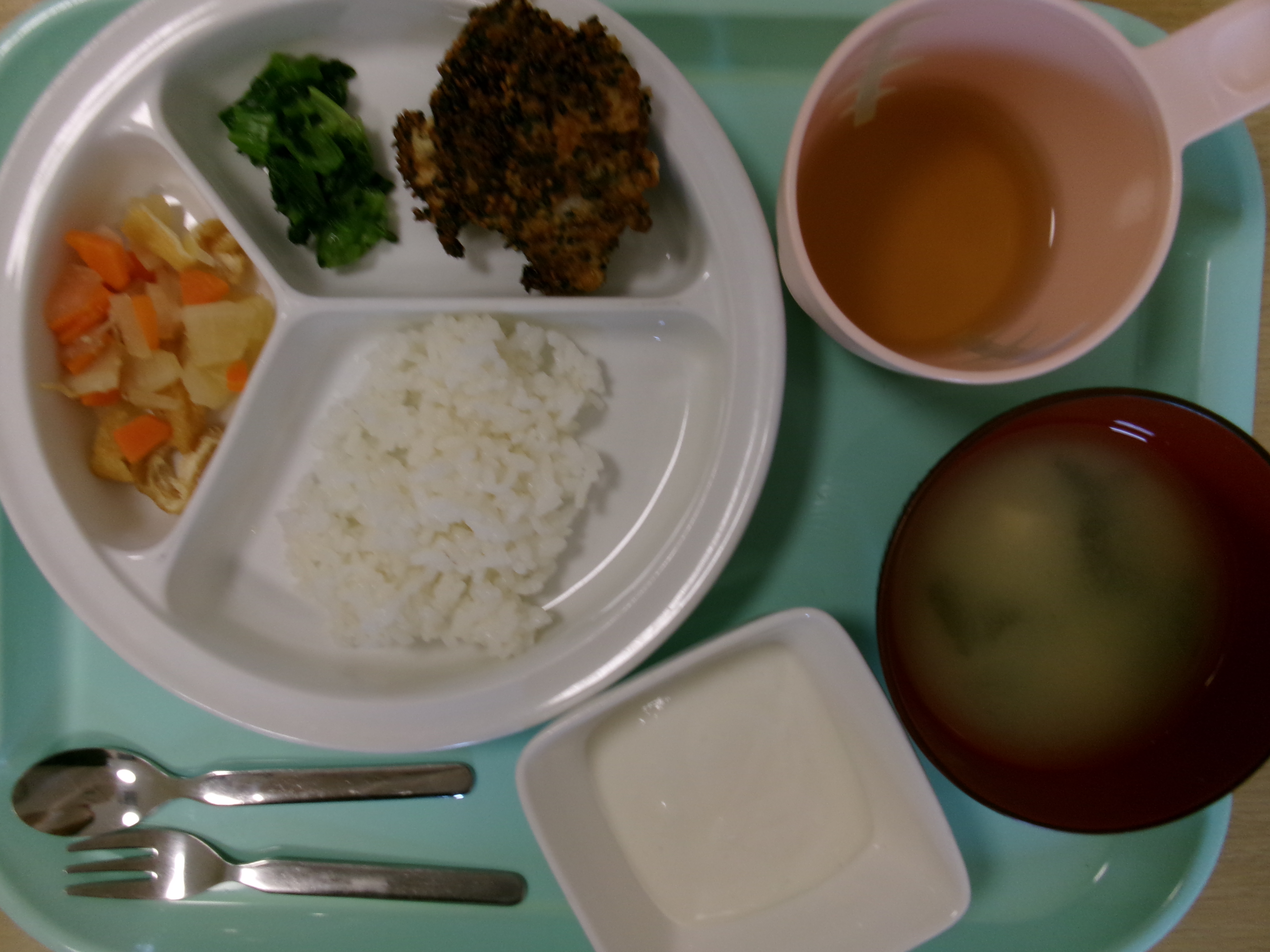 2026.03.05 はなえみhoujikai 2026/3/5 今日の給食 ツイート シェア はてブ 送る Pocket ※本日の活動のようすのブログはお休みします。 離乳食・後期 かゆ・助宗タラの小松菜のやわらか煮・大根と人参のだし煮・味噌汁・ヨーグルト 幼児食 ご飯・鮭のごま衣焼き・大根の信田煮・味噌汁(花麩・ワカメ)・ヨーグルト 幼児食・午後おやつ 牛乳・肉まん風