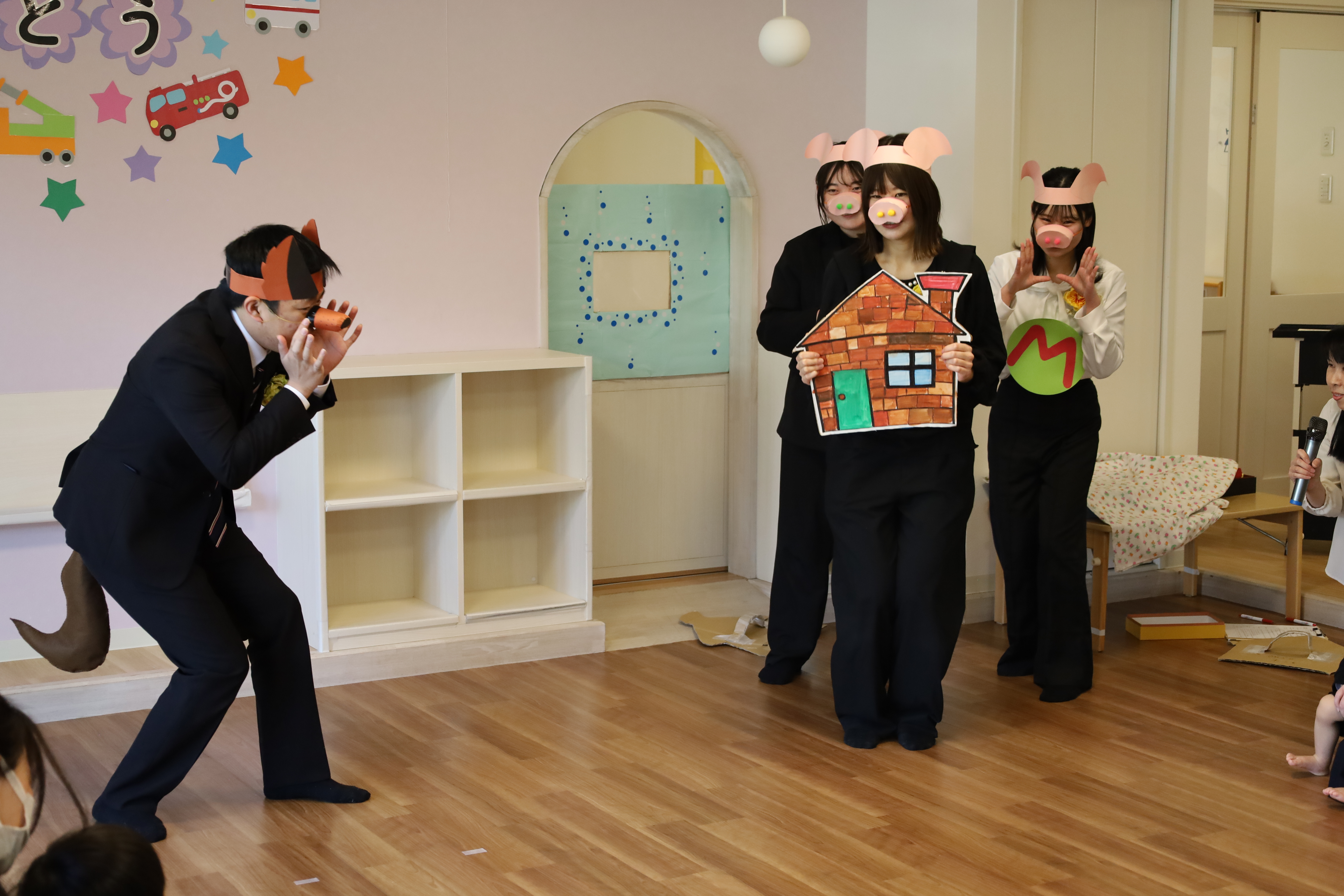 次は保育士の寸劇「3匹のこぶた」