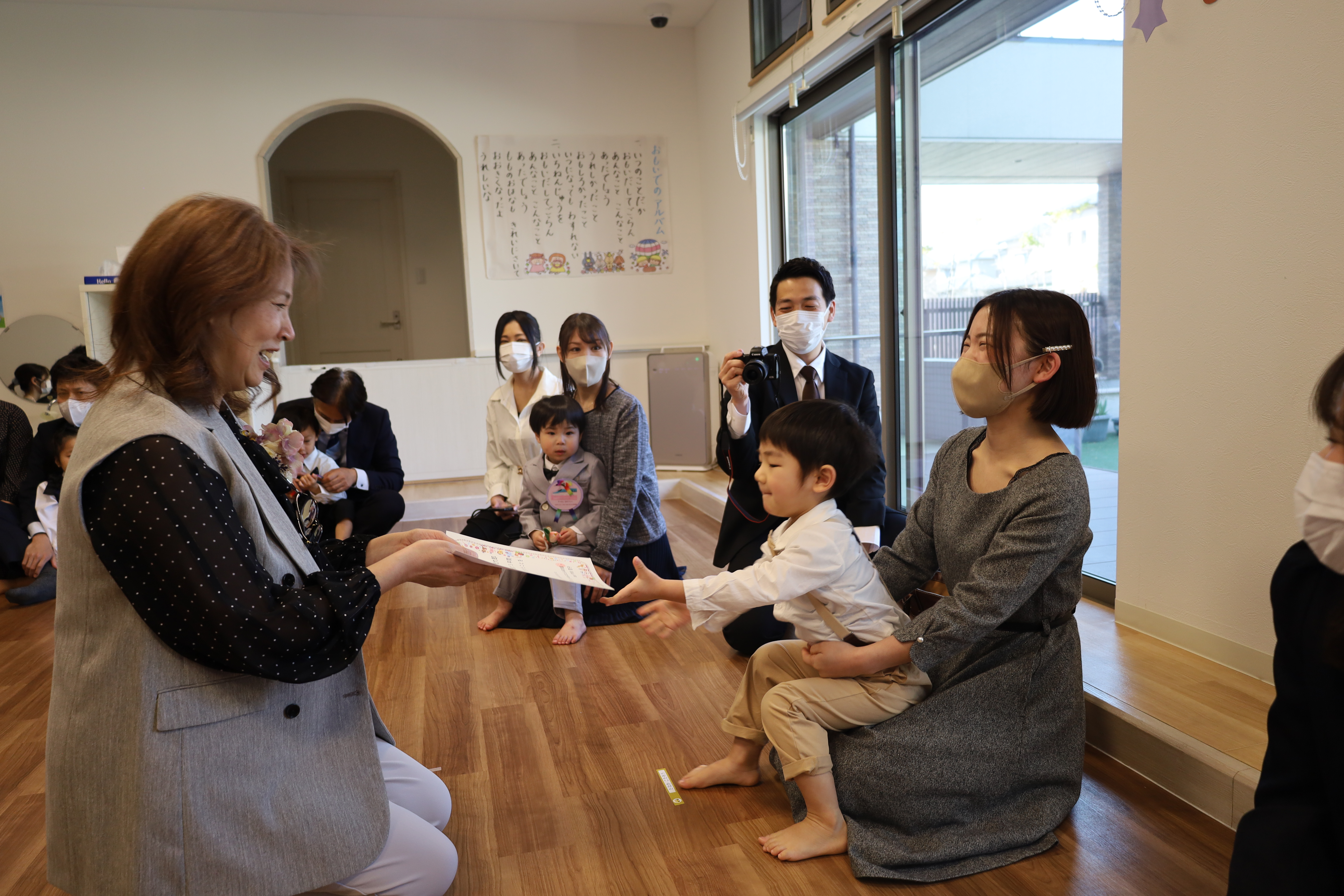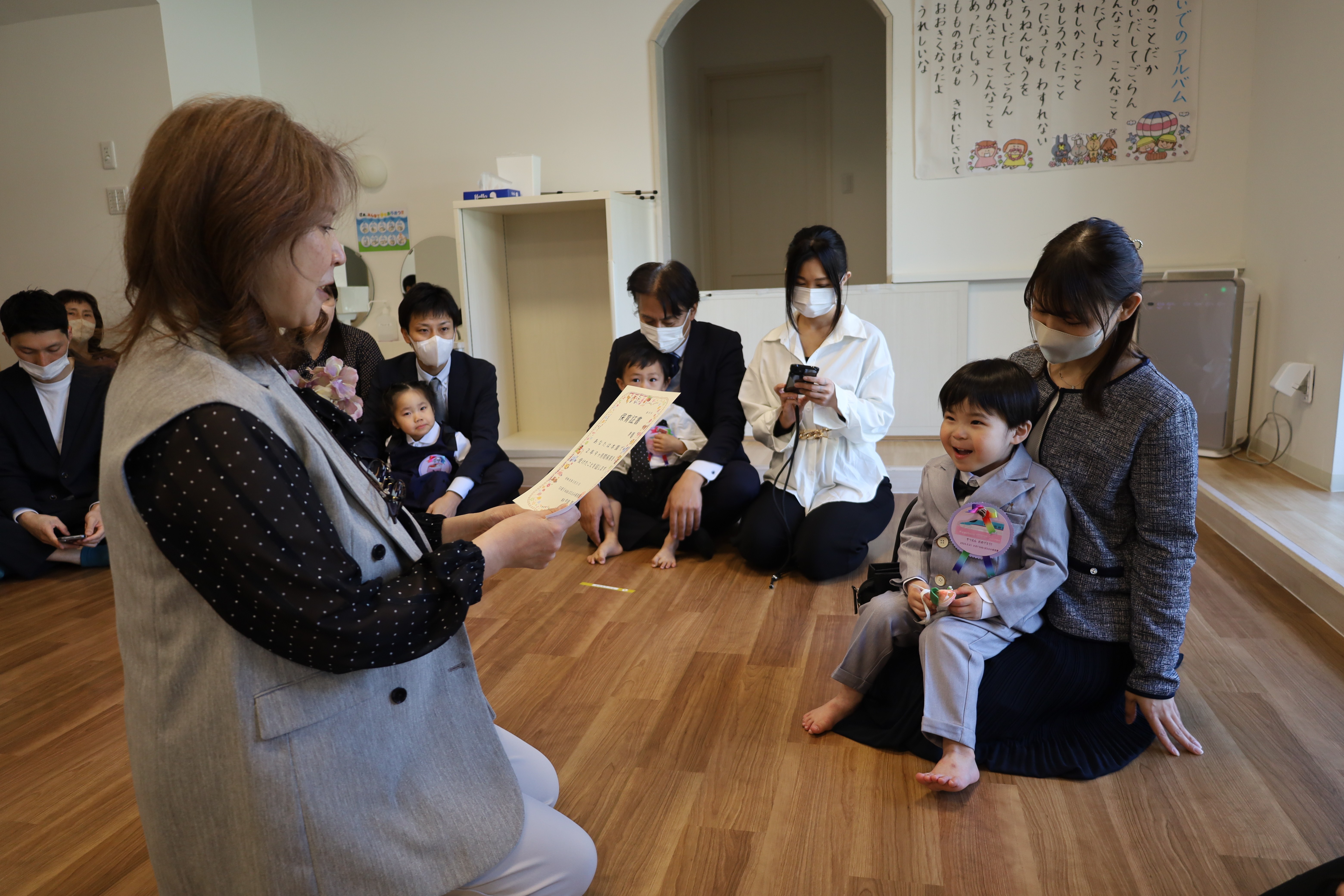 はなえみ保育園で頑張った標の証書を渡します。