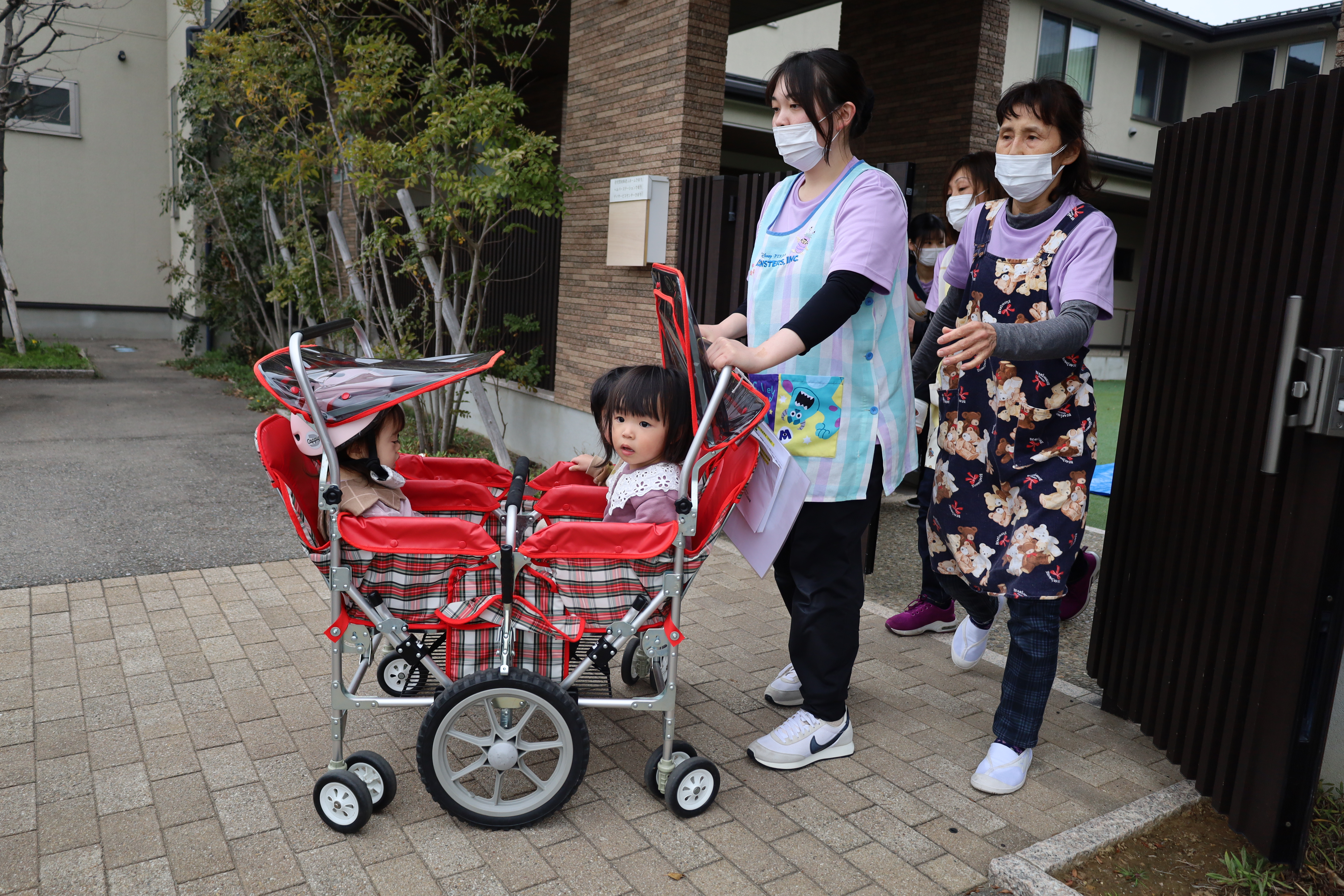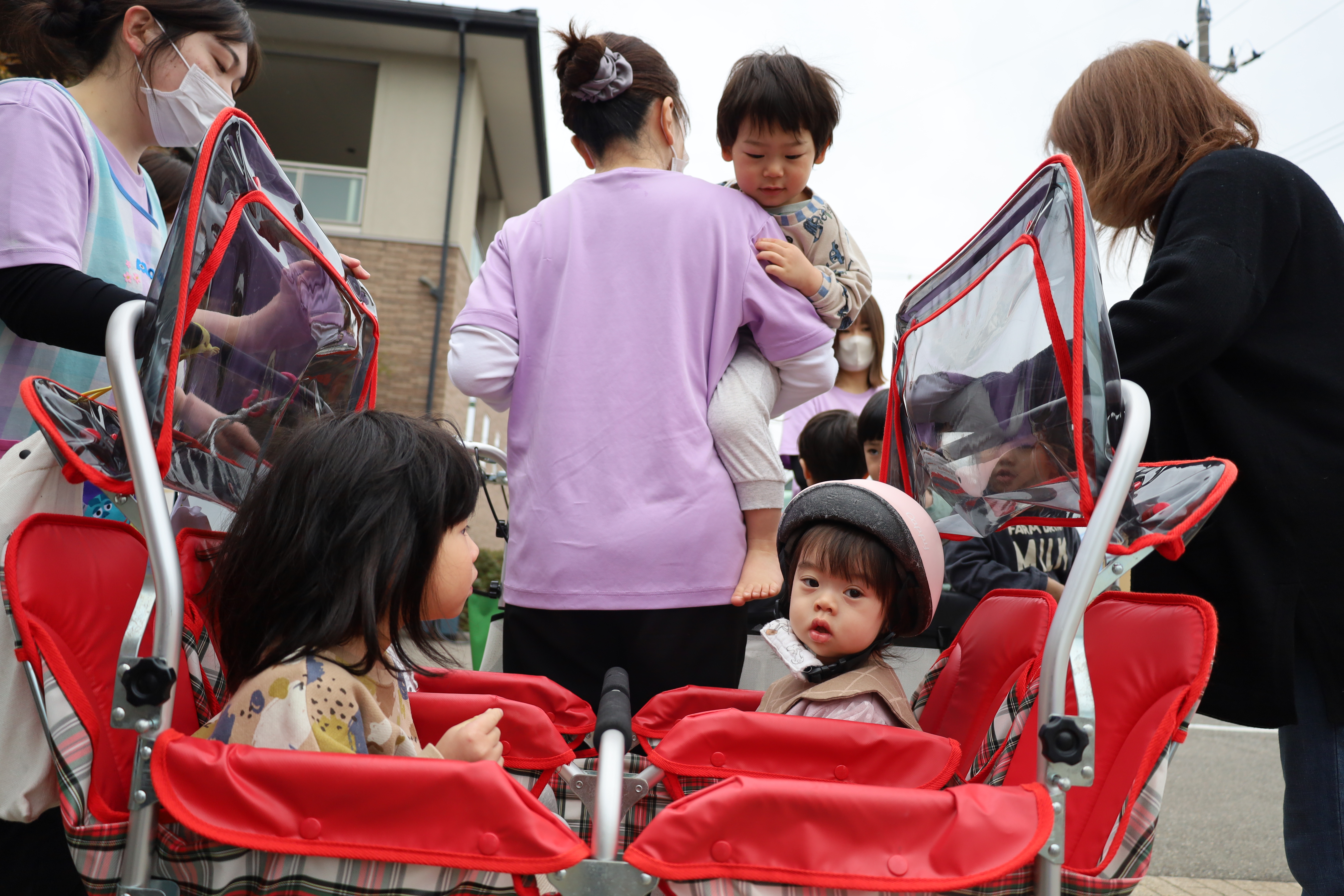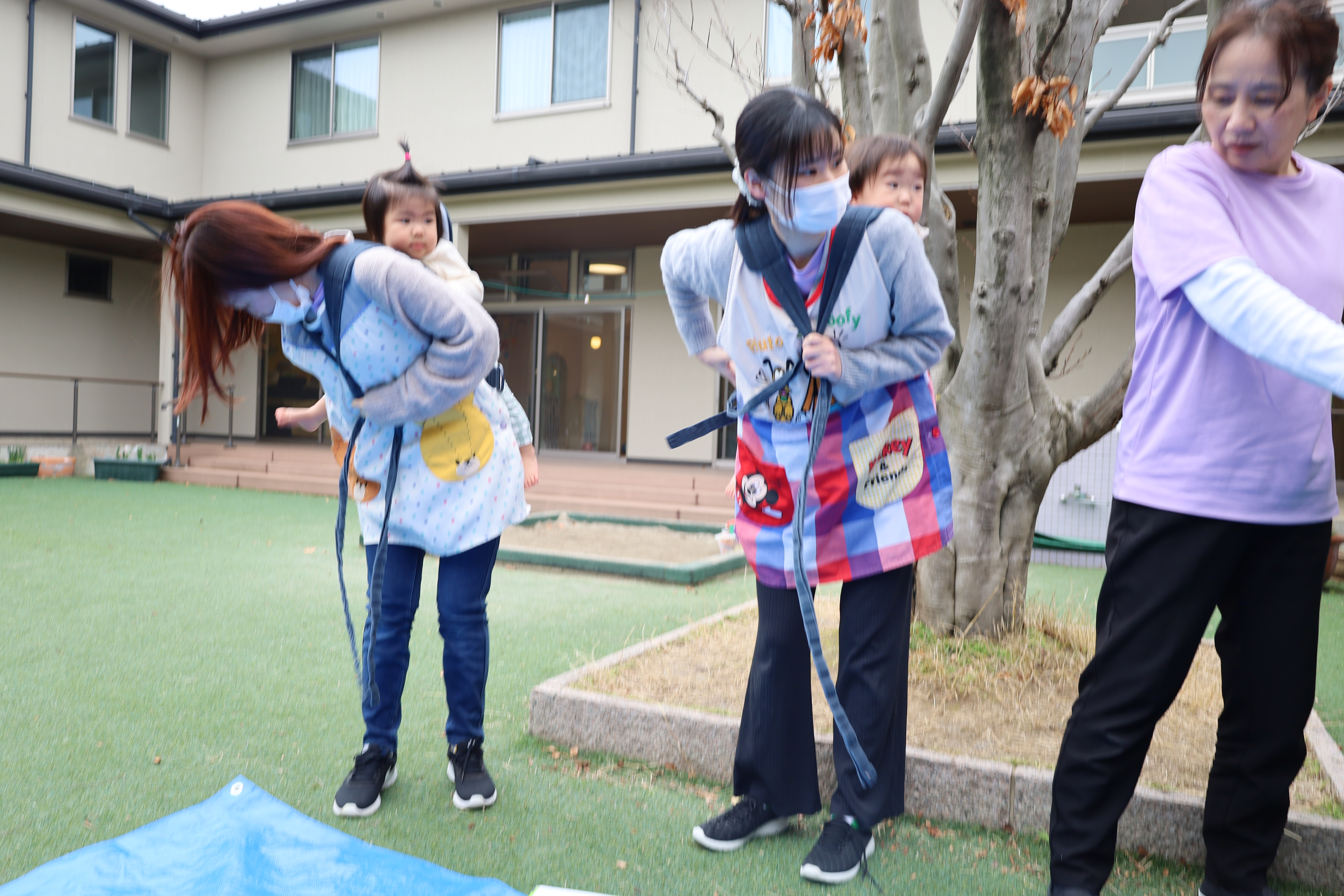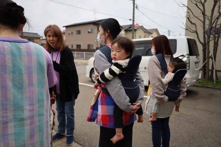 0歳児さんたちはおんぶされて、