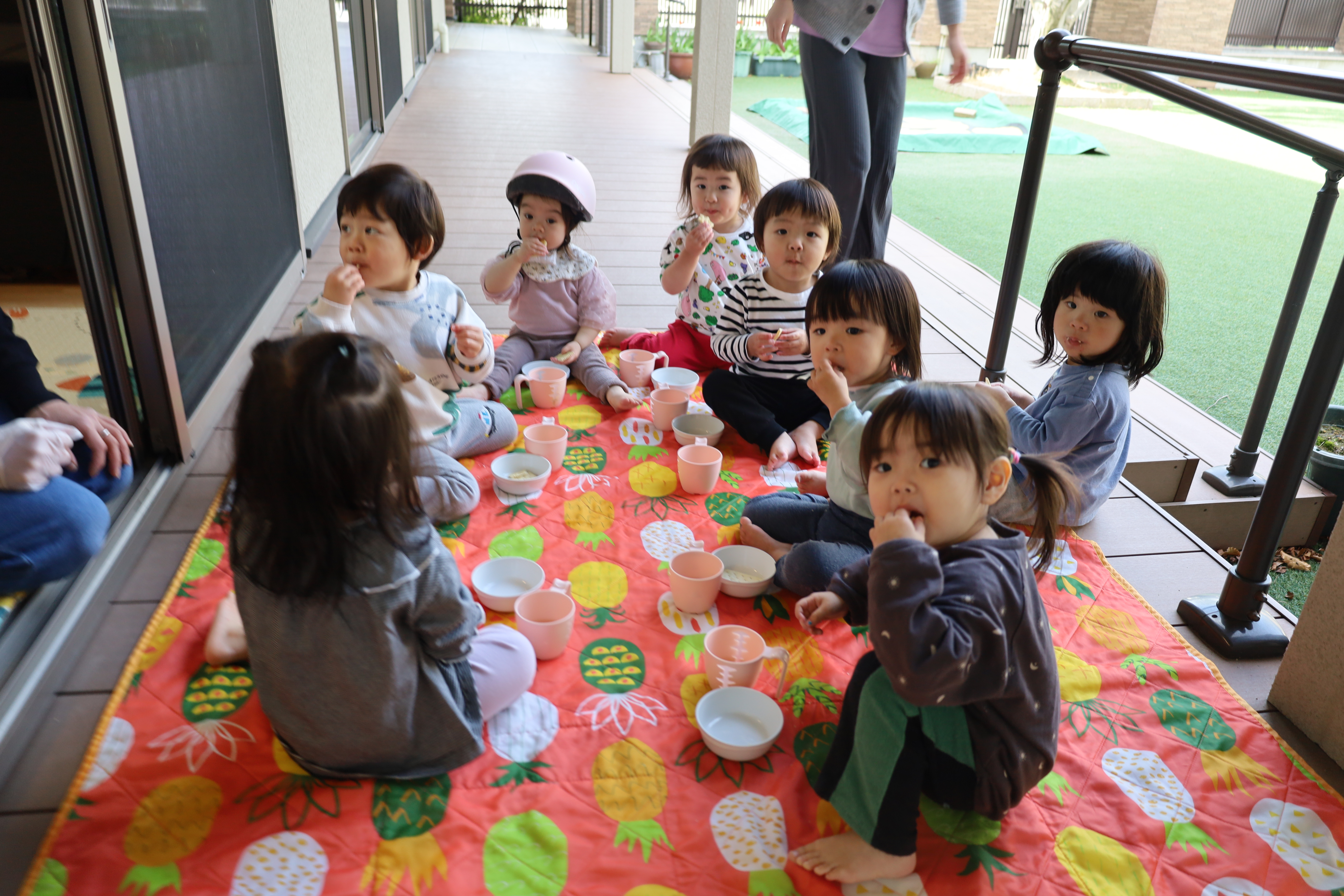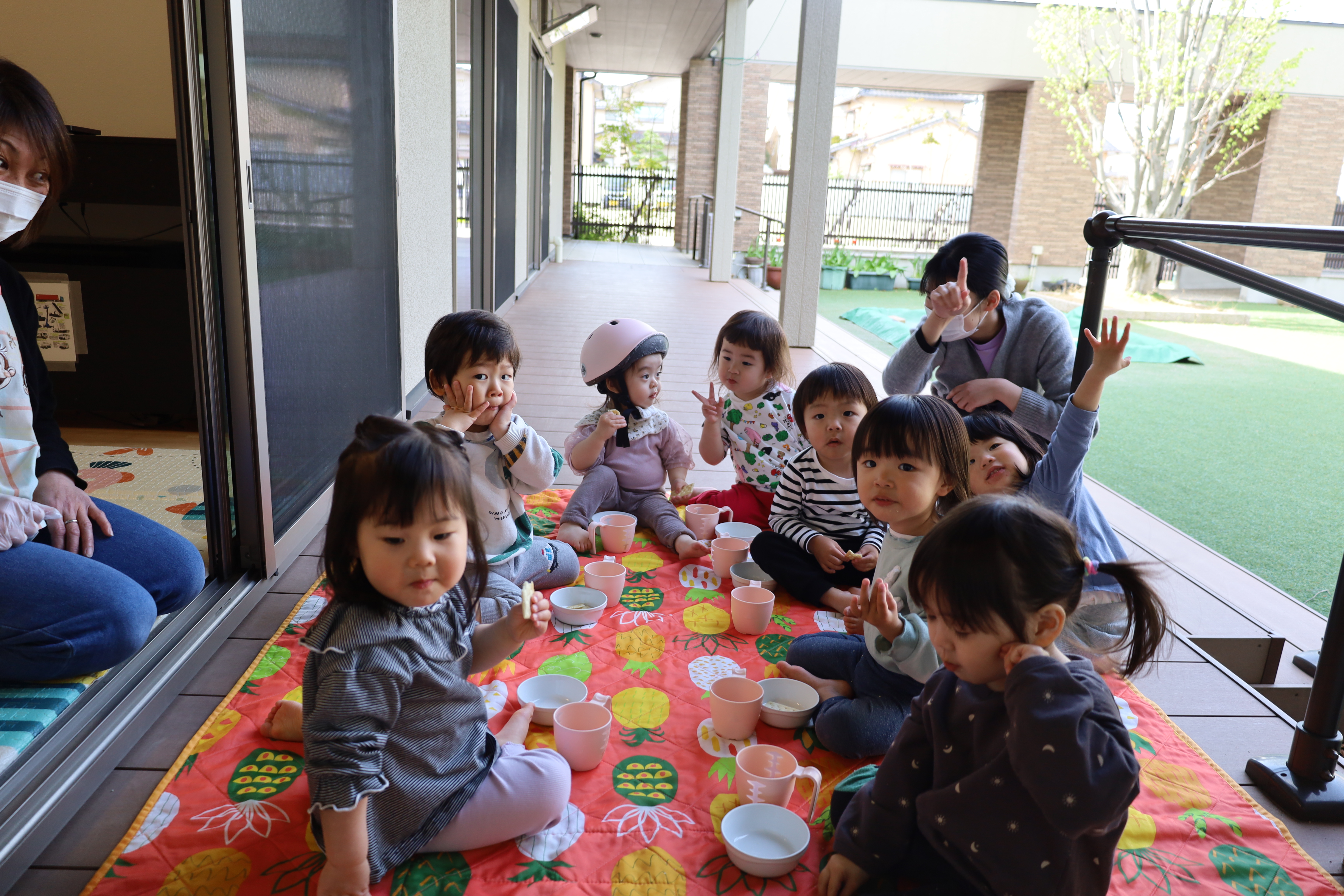 テラスでおやつを食べました。
