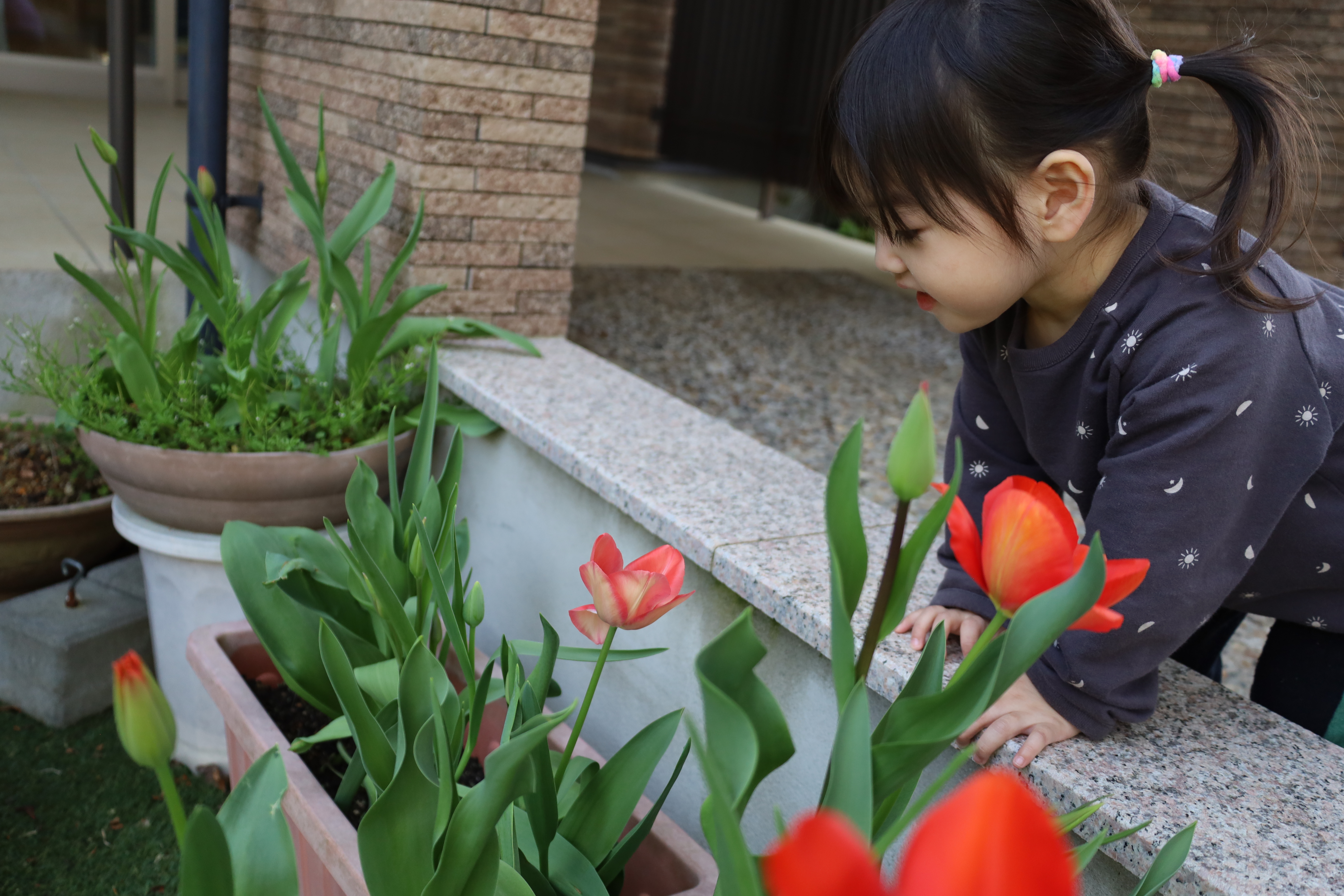 プランターのチューリップも咲き始めています。