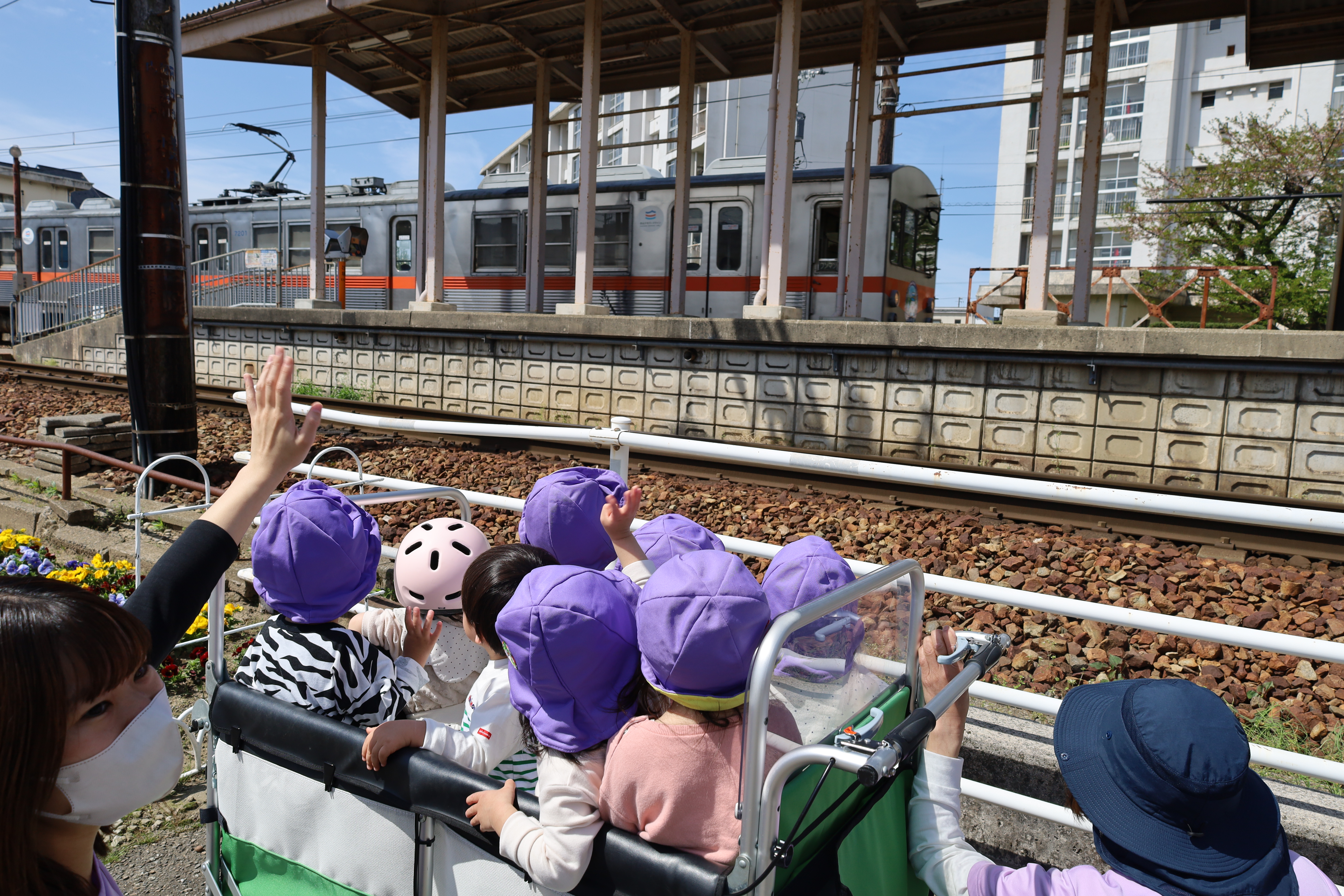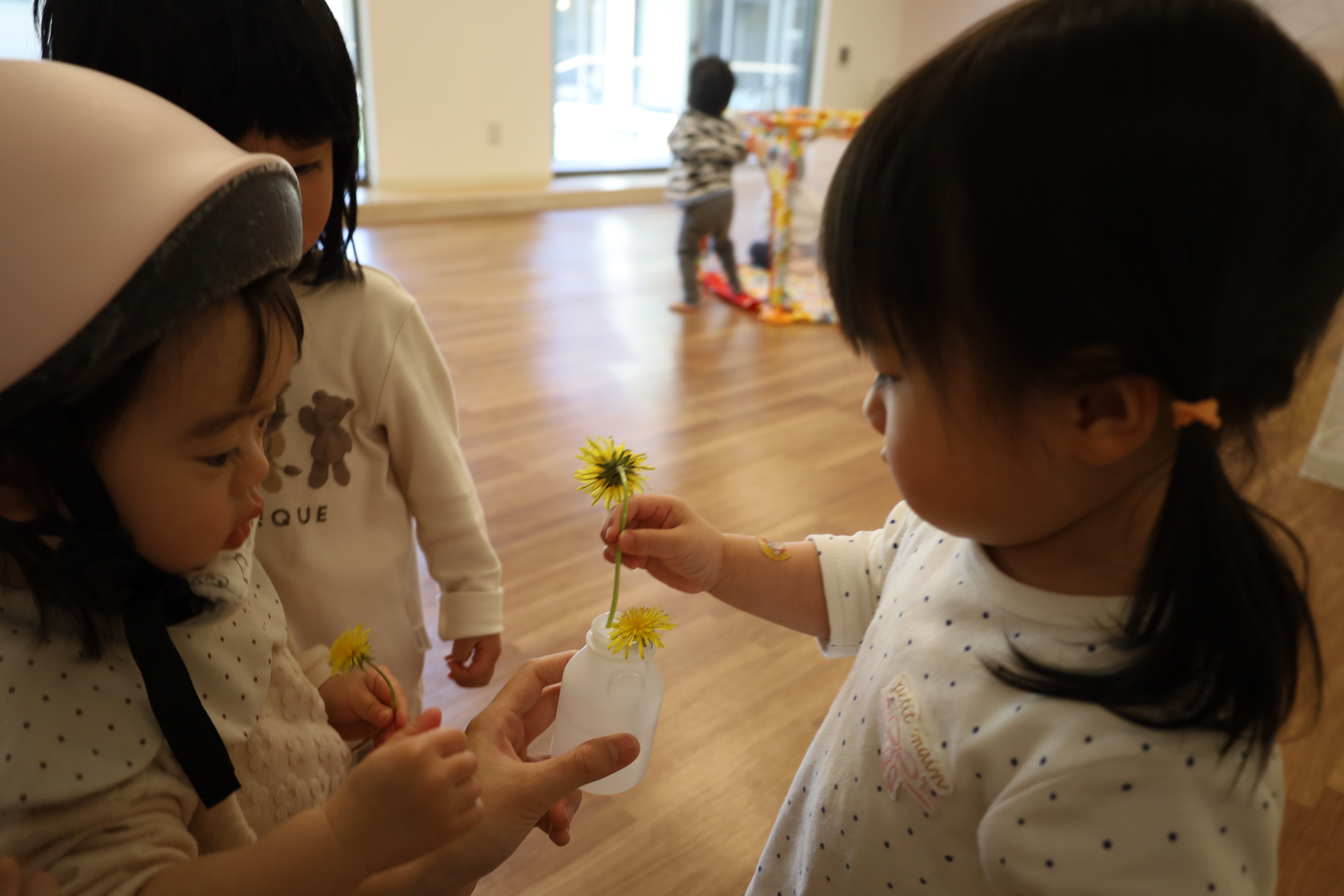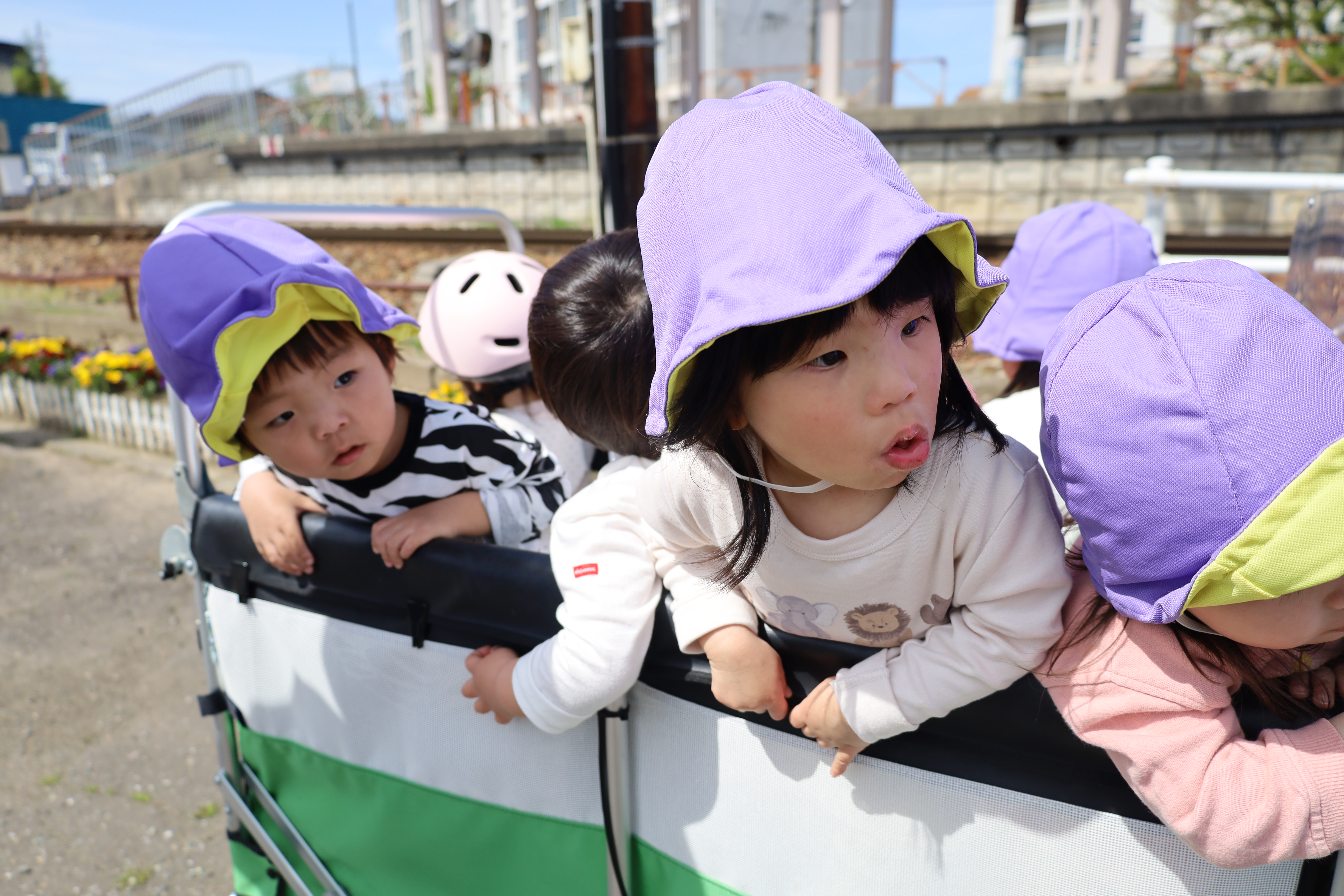 2026.04.14 はなえみhoujikai 2026/4/14 電車を見に ツイート シェア はてブ 送る Pocket みのり・はな 大好きな電車を見にいってきました。 くるかなくるかな・・・・・。 くるかな? まだかな? まだかな? 線路脇にキレイな花が咲いてました。 きた~!! おおきいな・・・・。 今度はあっちから・・・。 電車、のりたいな・・・。 行っちゃったかな・・・・? また、来てね。 ゆっくりと電車を見て、 あ、働くクルマ! ゴミ収集車、おおきいね。 お散歩で見つけたかわいいお花。 タンポポっていうんだよ。 お部屋に飾ろうね。 ゆっくりと散歩を楽しんできました。 4月14日 今日の給食 離乳食・中期 かゆ・白糸タラとキャベツのくたくた煮・人参のだし煮・味噌汁・フルーツ(オレンジ) 離乳食・後期 かゆ・白糸タラとキャベツのくたくた煮・人参のだし煮・味噌汁・フルーツ(オレンジ) 幼児食 ご飯・白糸タラと春キャベツのバター炒め・豚肉の切干大根煮・味噌汁(さつま芋・ワカメ)・フルーツ(オレンジ) 幼児食・午後おやつ 牛乳・豆乳桃と小豆の二色寒天