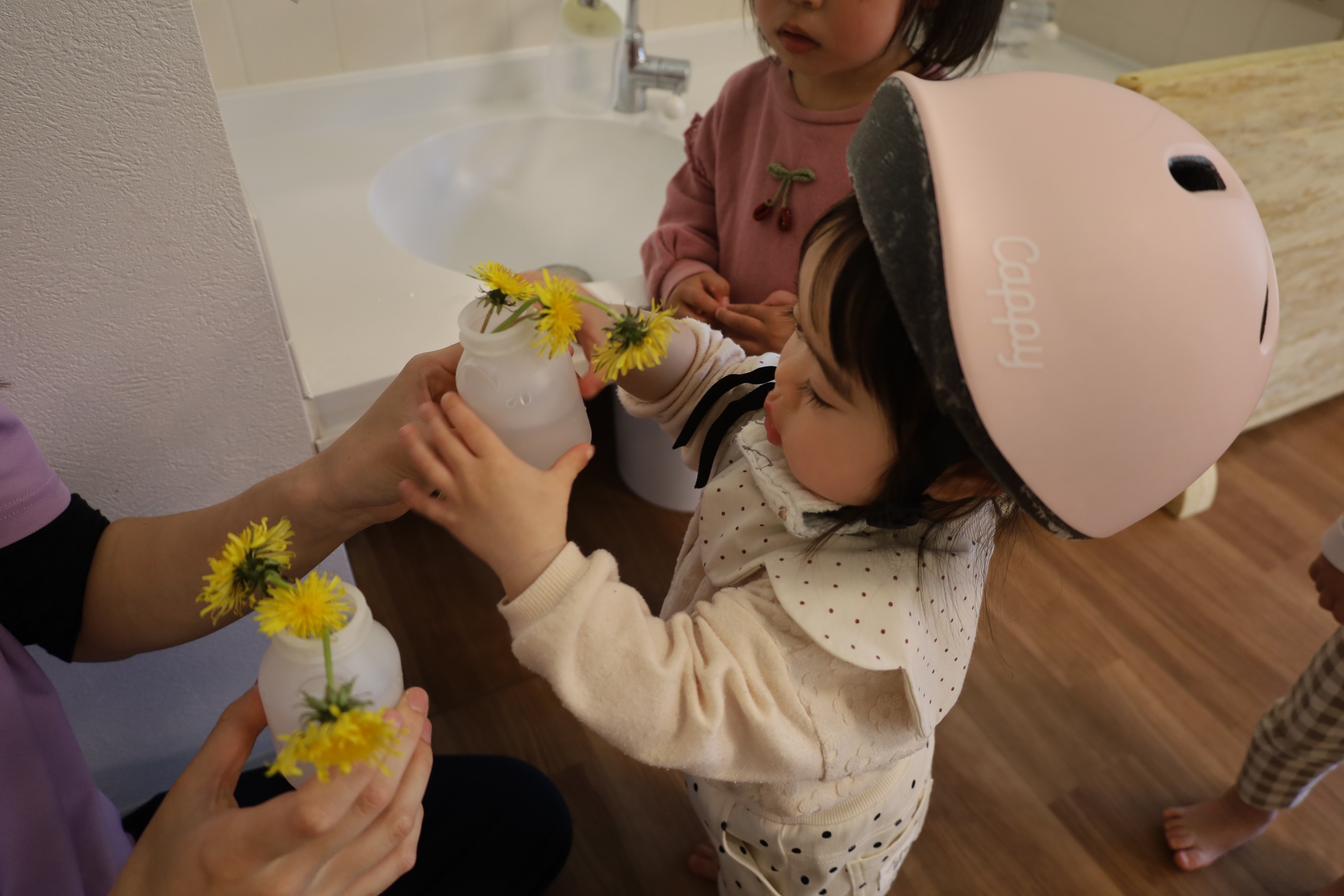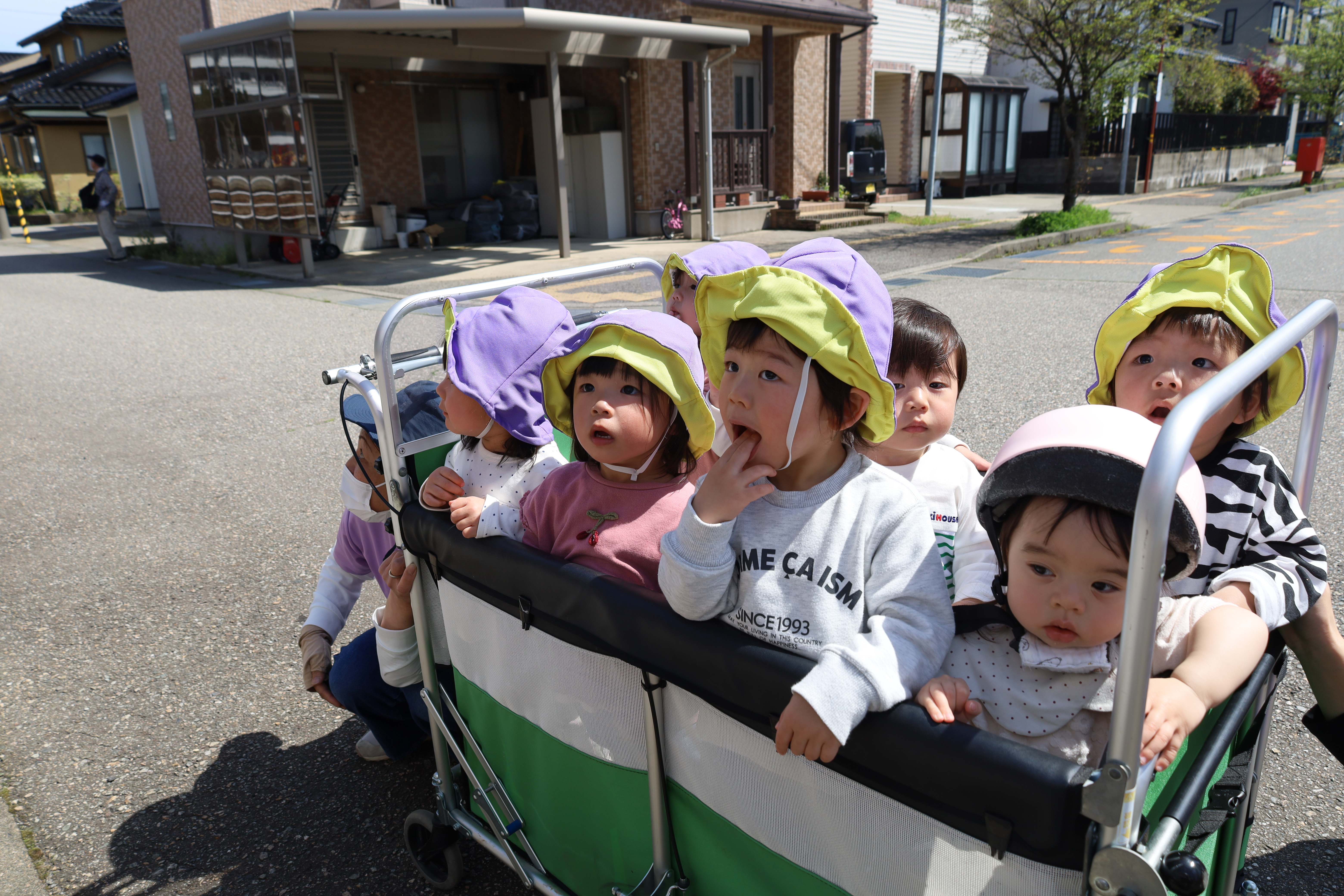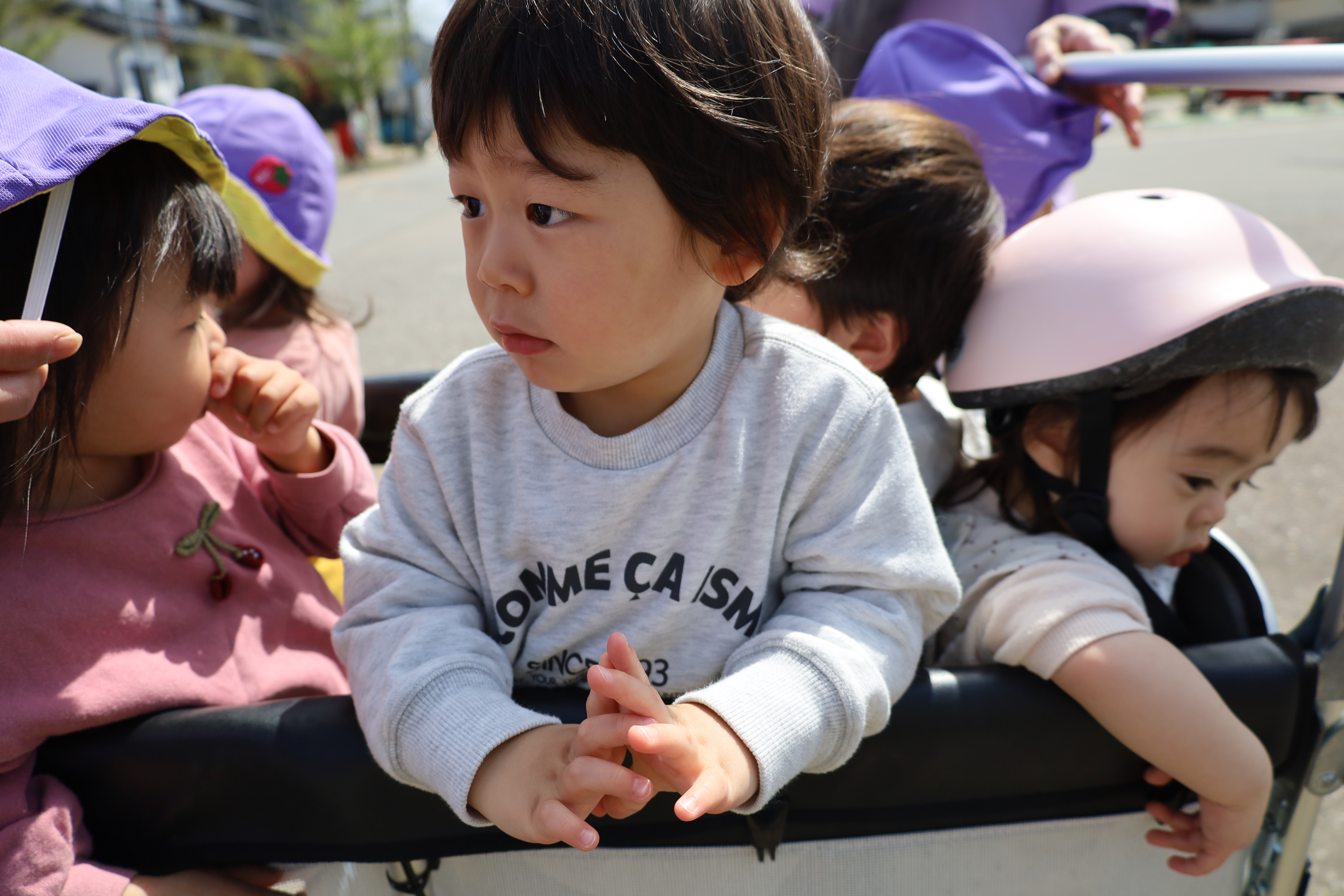 2026.04.14 はなえみhoujikai 2026/4/14 電車を見に ツイート シェア はてブ 送る Pocket みのり・はな 大好きな電車を見にいってきました。 くるかなくるかな・・・・・。 くるかな? まだかな? まだかな? 線路脇にキレイな花が咲いてました。 きた~!! おおきいな・・・・。 今度はあっちから・・・。 電車、のりたいな・・・。 行っちゃったかな・・・・? また、来てね。 ゆっくりと電車を見て、 あ、働くクルマ! ゴミ収集車、おおきいね。 お散歩で見つけたかわいいお花。 タンポポっていうんだよ。 お部屋に飾ろうね。 ゆっくりと散歩を楽しんできました。 4月14日 今日の給食 離乳食・中期 かゆ・白糸タラとキャベツのくたくた煮・人参のだし煮・味噌汁・フルーツ(オレンジ) 離乳食・後期 かゆ・白糸タラとキャベツのくたくた煮・人参のだし煮・味噌汁・フルーツ(オレンジ) 幼児食 ご飯・白糸タラと春キャベツのバター炒め・豚肉の切干大根煮・味噌汁(さつま芋・ワカメ)・フルーツ(オレンジ) 幼児食・午後おやつ 牛乳・豆乳桃と小豆の二色寒天