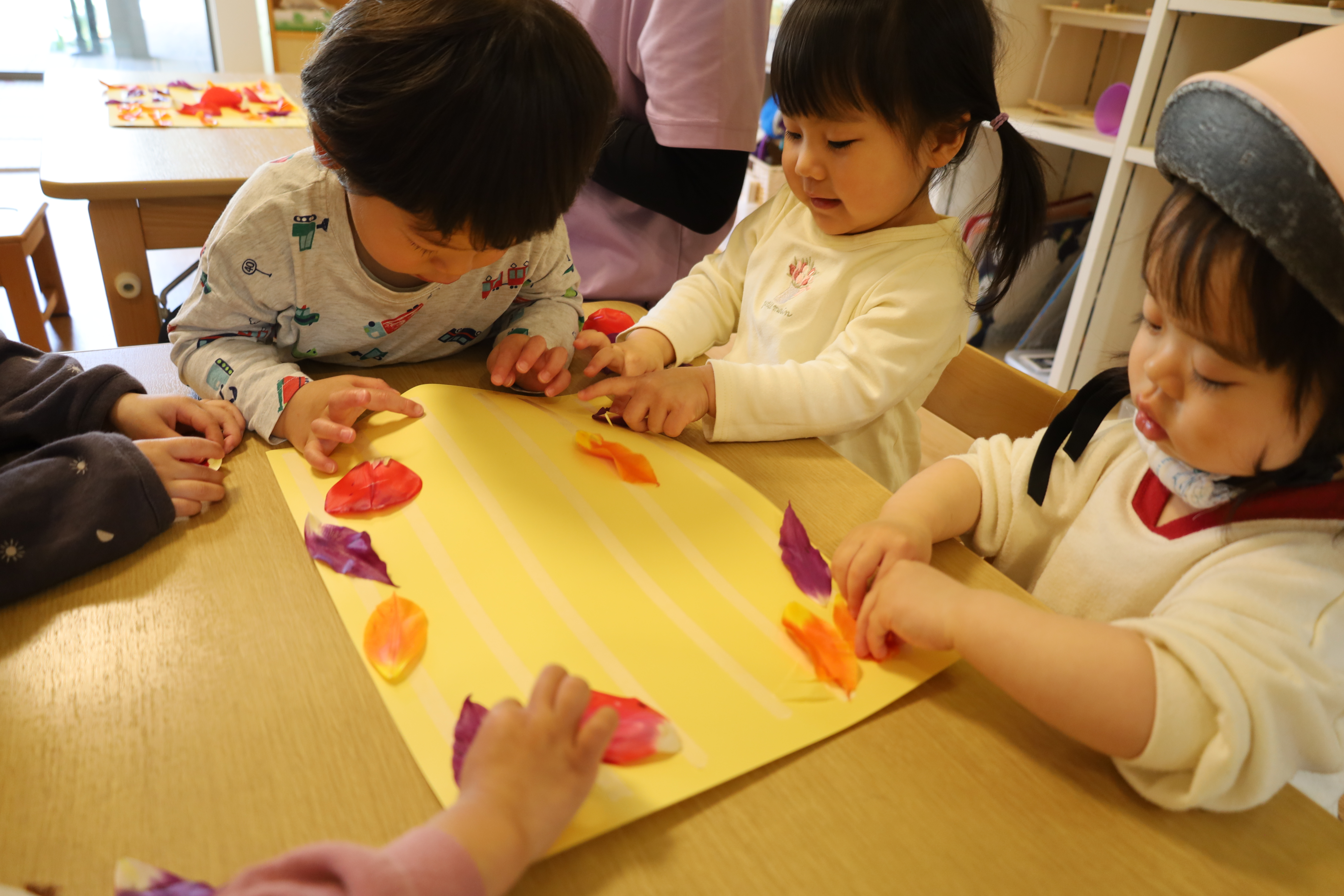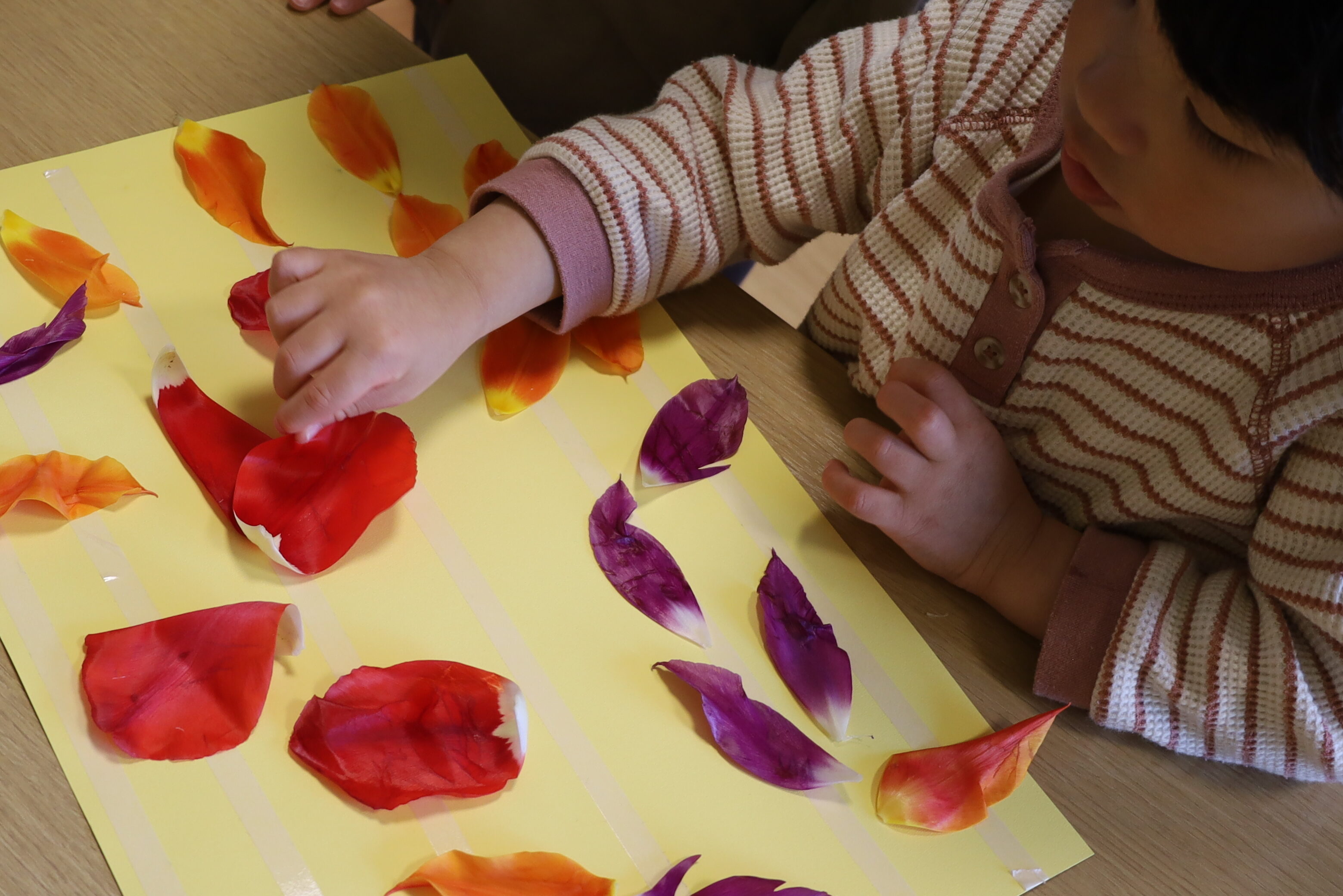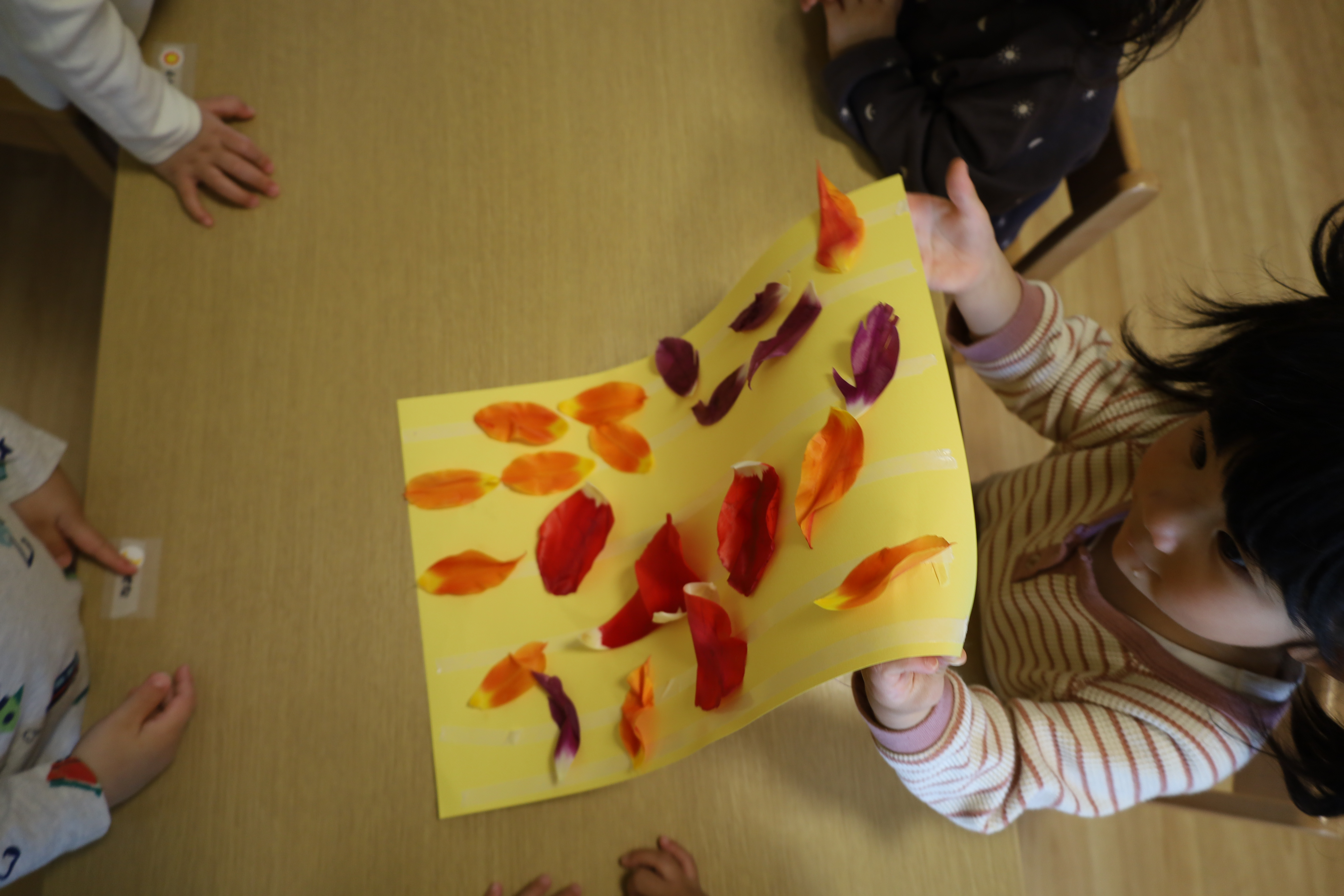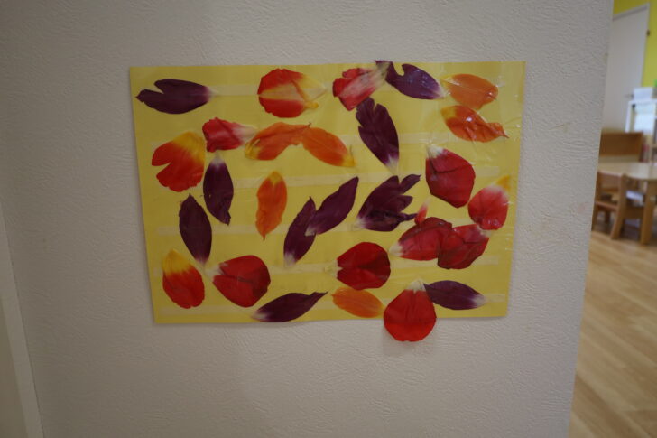 庭のチューリップの花びらを紙に貼ってみました。