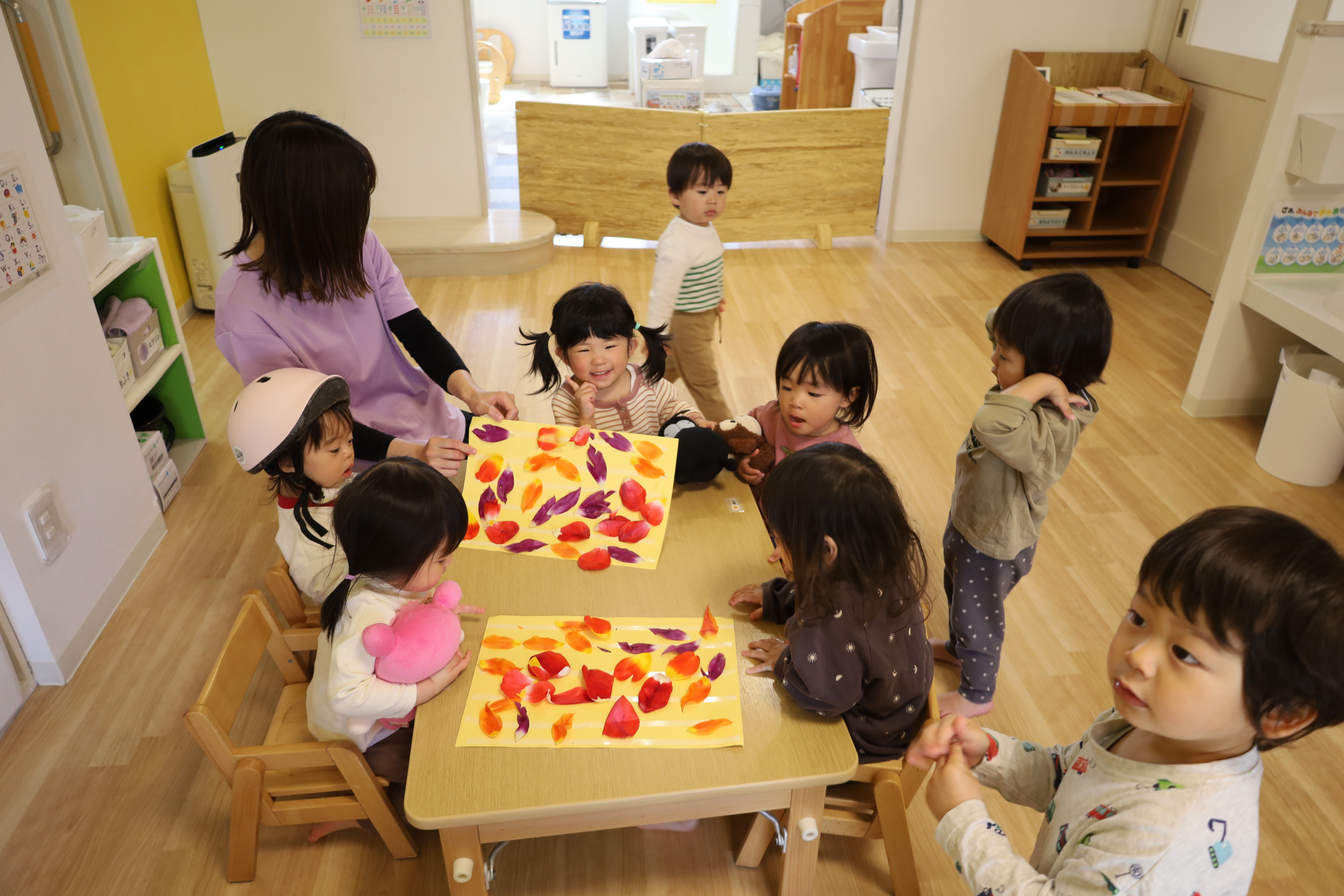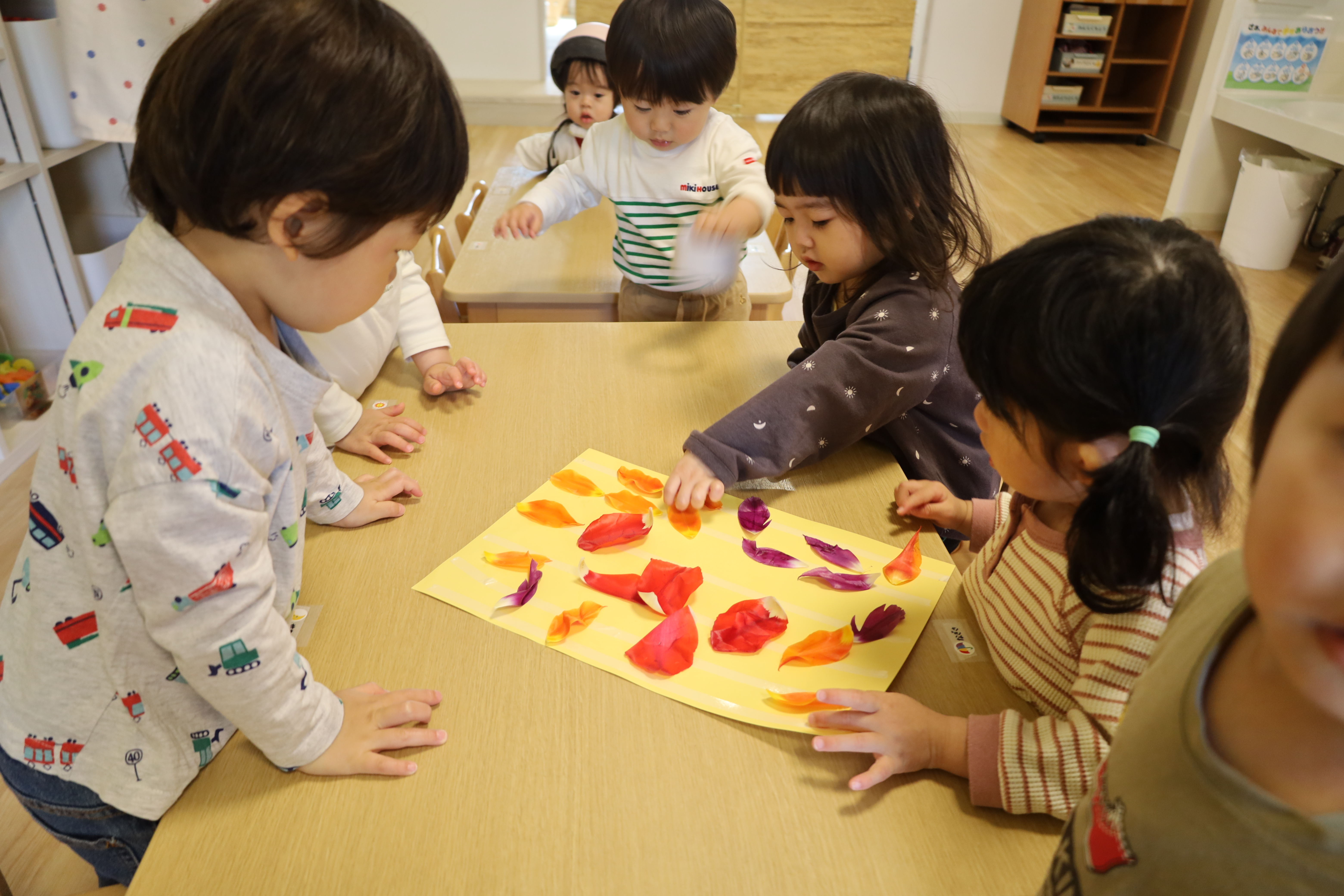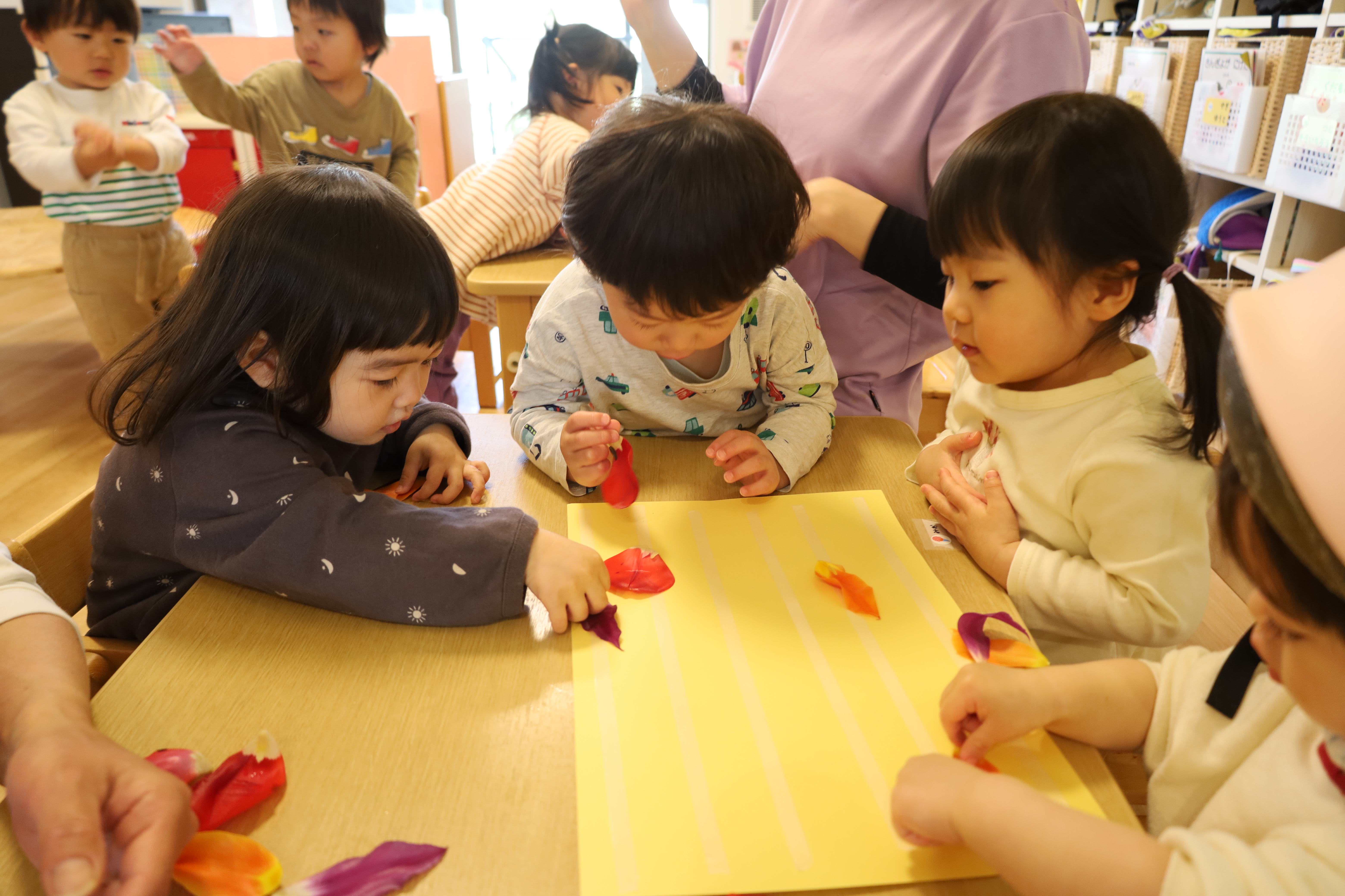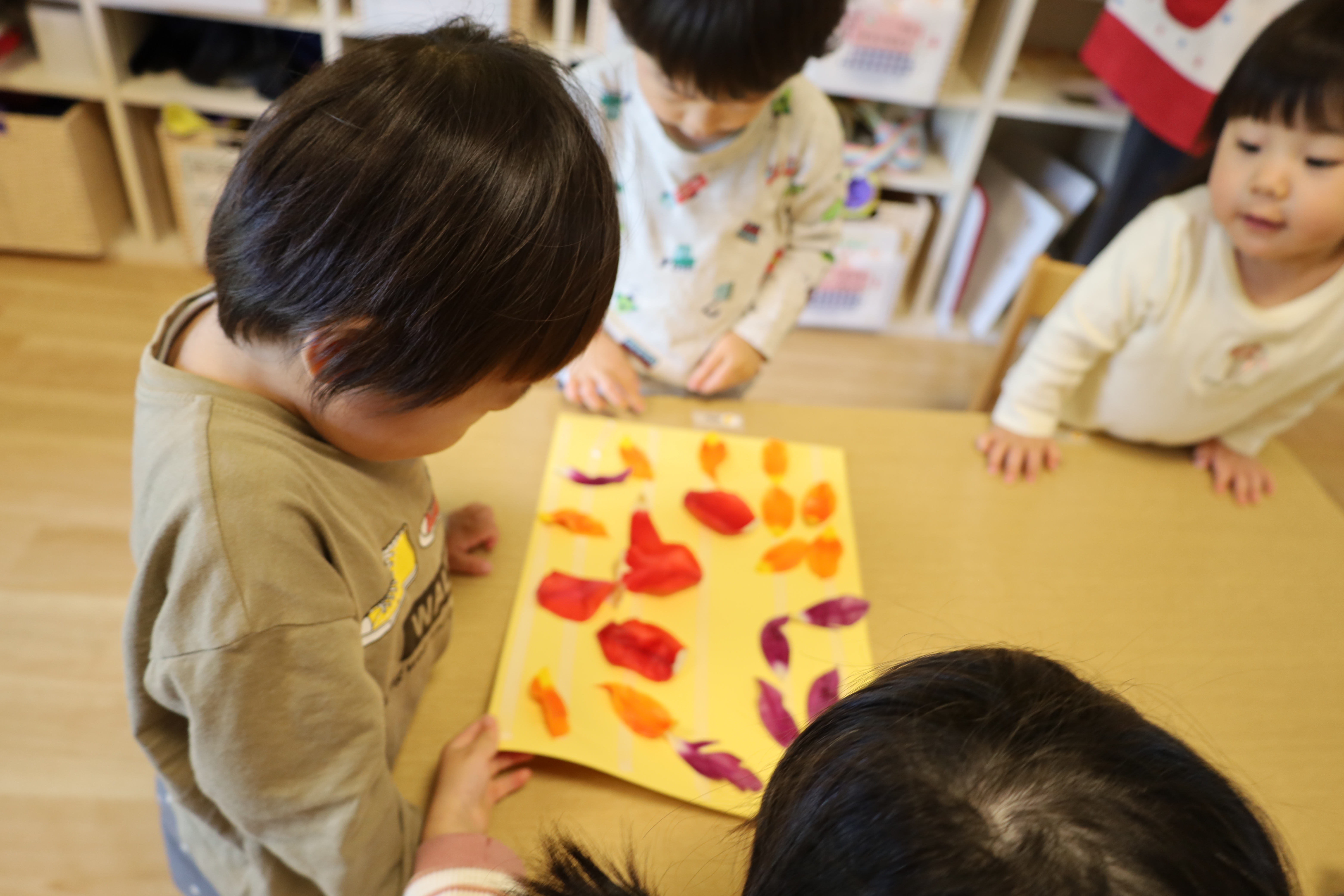 庭のチューリップの花びらを紙に貼ってみました。