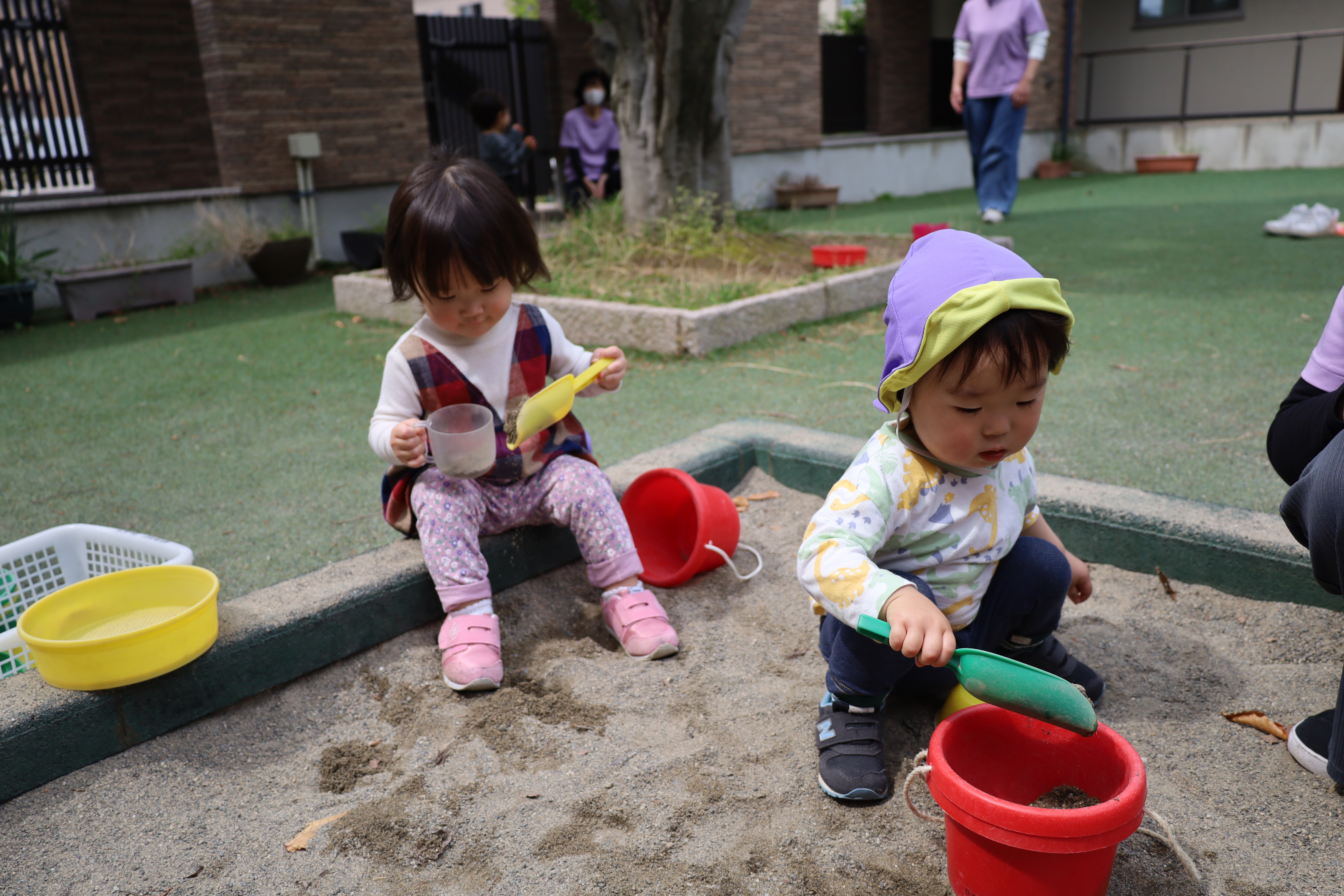 2026.04.28 未分類houjikai 2026/4/28 ぽかぽかおにわ ツイート シェア はてブ 送る Pocket ポカポカ暖かい園庭。 みのり・はなぐみさんたちはお庭でおやつ。 おいしいね。 いい気分。 ゆっくりと味わって。 う~ん、うまい!! たね・はなぐみさんたちも園庭へ。 お隣のおばあちゃんたちにご挨拶! 赤ちゃん、かわいいね。 砂場は大盛況。 のんびりゆっくりと過ごしました。 4月28日 今日の給食 離乳食・中期 かゆ・白糸タラとキャベツのくたくた煮・人参のだし煮・味噌汁 離乳食・後期 かゆ・白糸タラとキャベツのくたくた煮・人参のだし煮・味噌汁 幼児食 ご飯・白糸タラと春キャベツのバター炒め・豚肉の切干大根煮・味噌汁(さつまいも・ワカメ)フルーツ(みかん缶) 幼児食・午後おやつ 牛乳・豆乳桃と小豆の二色寒天