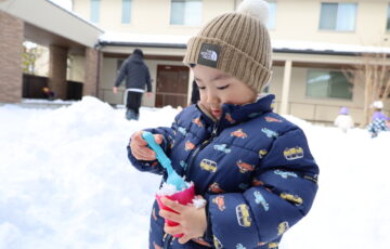 昨日は立春でしたね。今日はもう春がきたかと思うような暖かな日でした。 園庭の雪も少しずつ溶けてきましたが、まだまだ雪あそびは楽しめそうです。 みのり 園庭の隅っこの雪は溶けて、落ち葉が見えはじめています。 すっかり雪遊び…